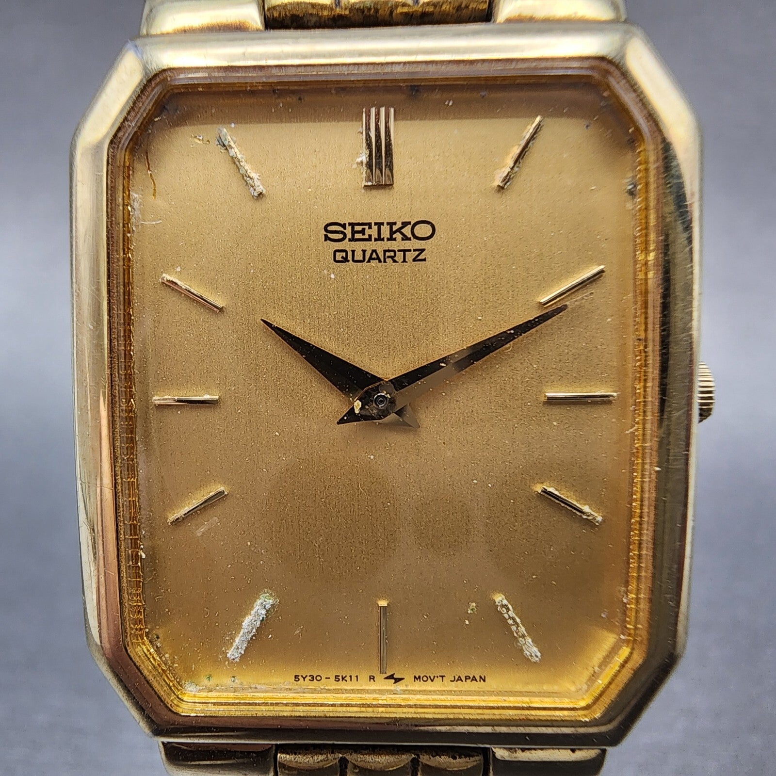 Seiko Tank Watch Men 26mm Gold Dial Gold Tone Octagon 5Y30-5K09 New Battery