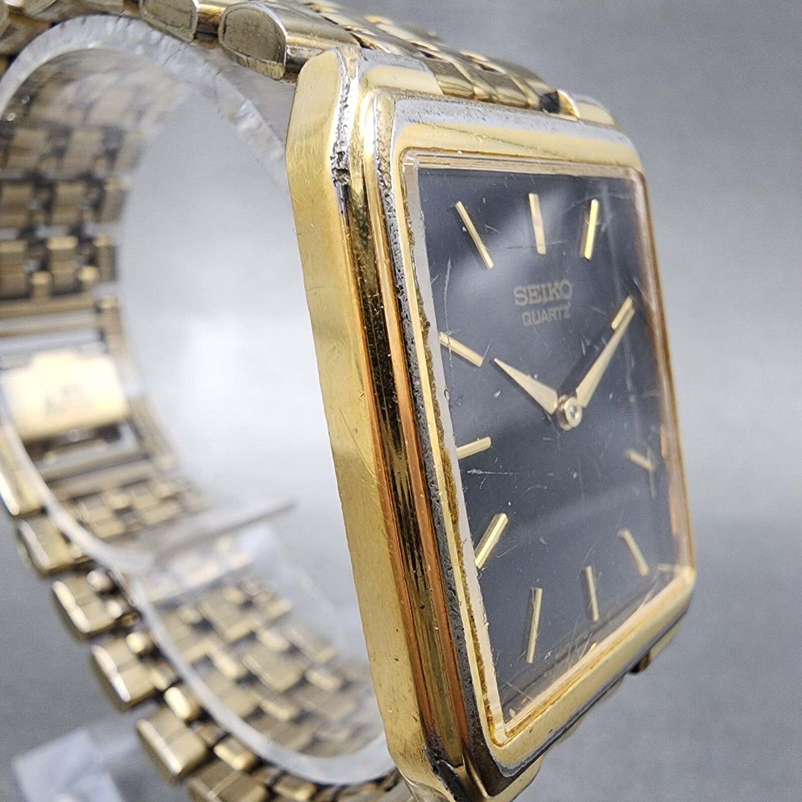 Seiko Tank Watch Men 27mm Black Dial Gold Tone Date 7n29-5b29 New Battery