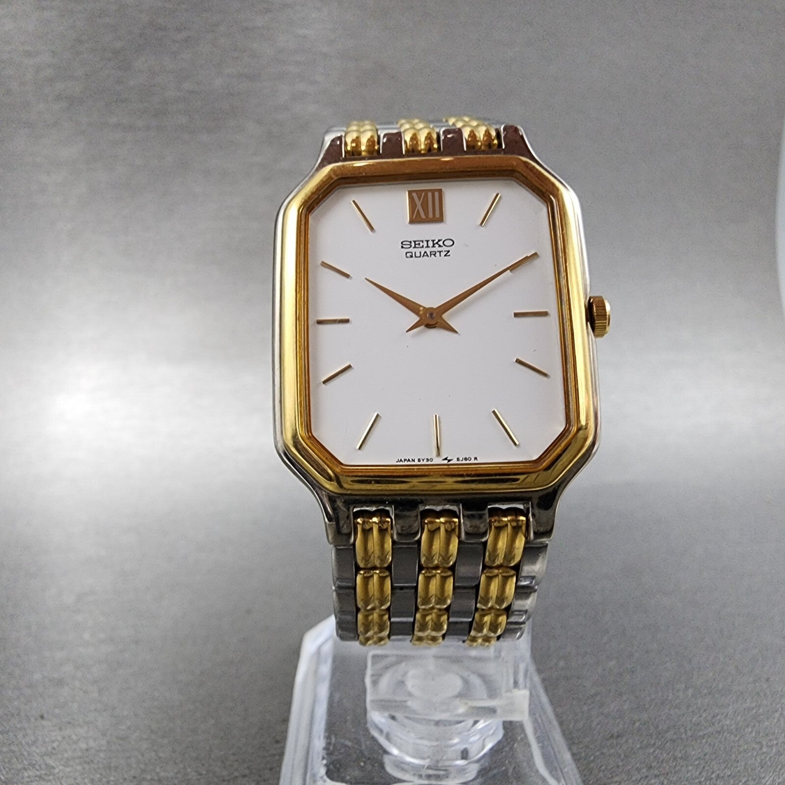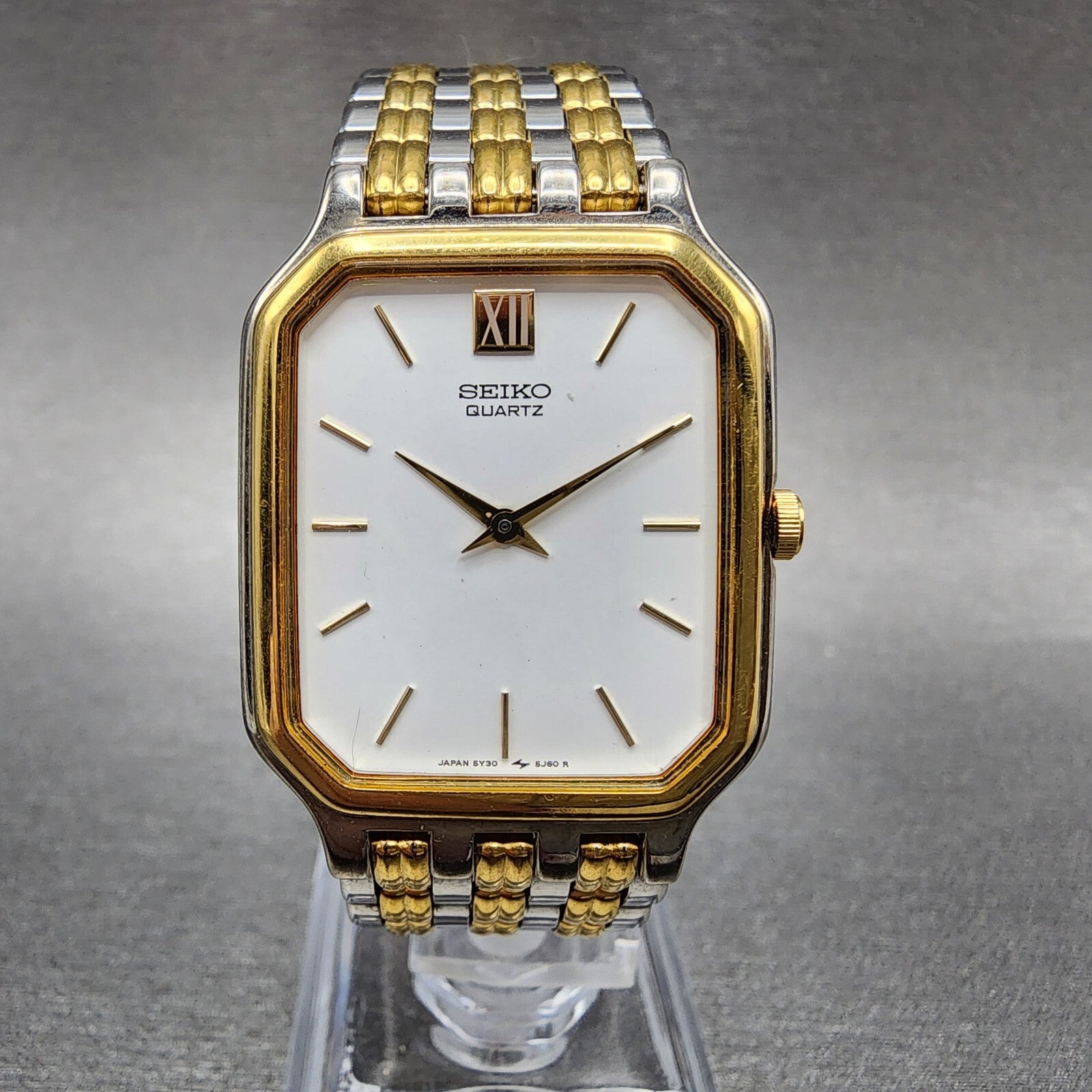 Seiko Tank Watch Men 27mm White Dial Two Tone 5y30-5d60 PARTS