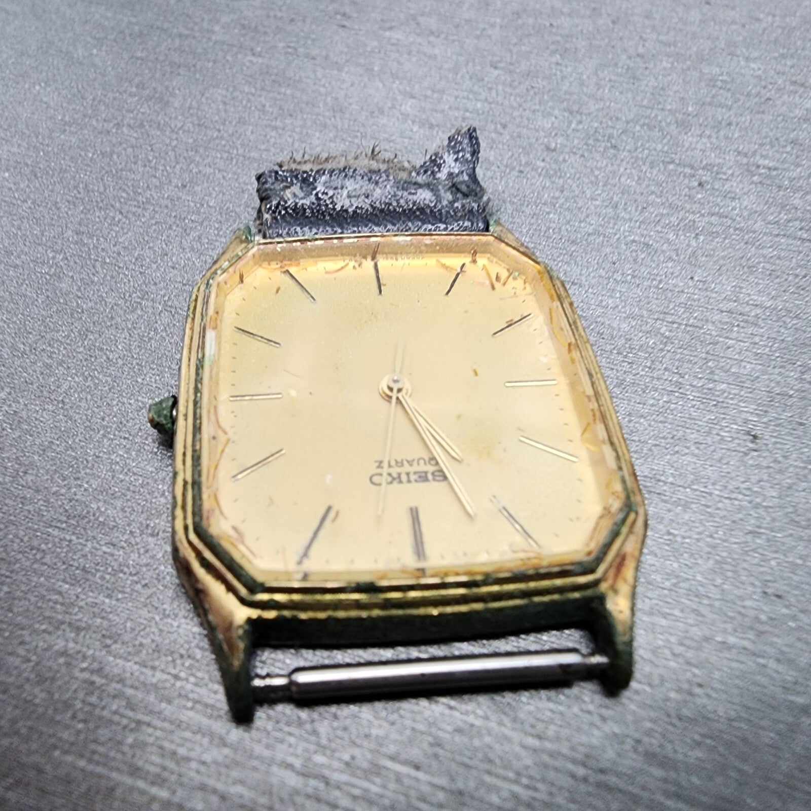 This item has been used and has scratchers on the case and crystal. The watch does not work and will need to be repaired. A NEW BATTERY WILL NOT FIX IT.