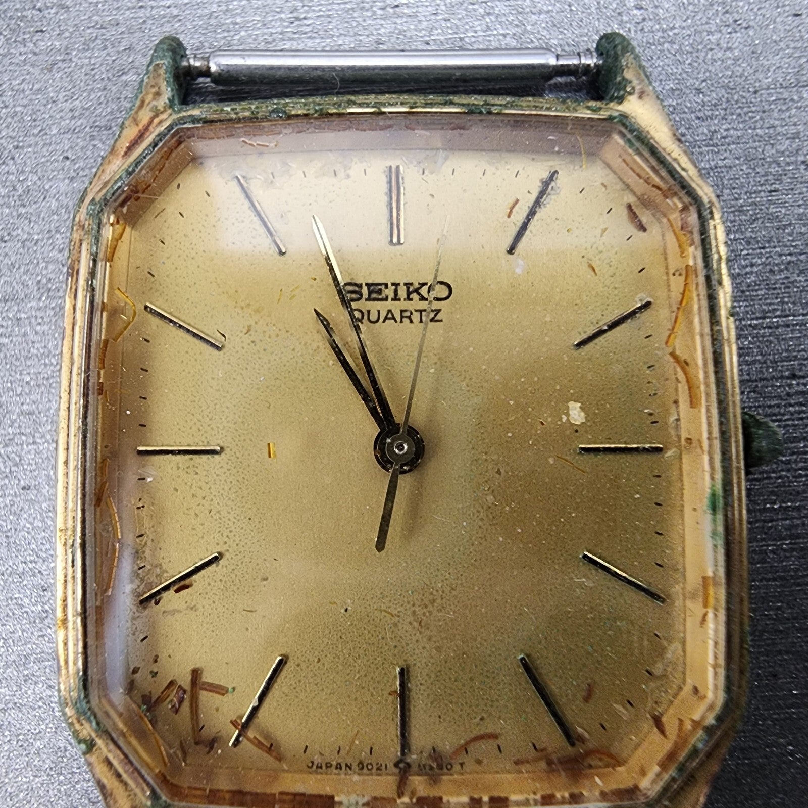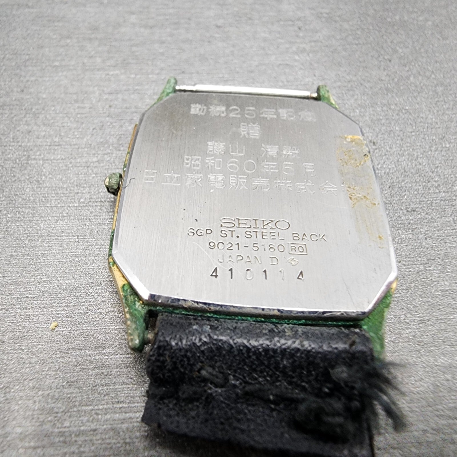 Seiko Tank Watch Men 28mm Gold Dial Gold Tone Rectangle 9021-5180 PARTS