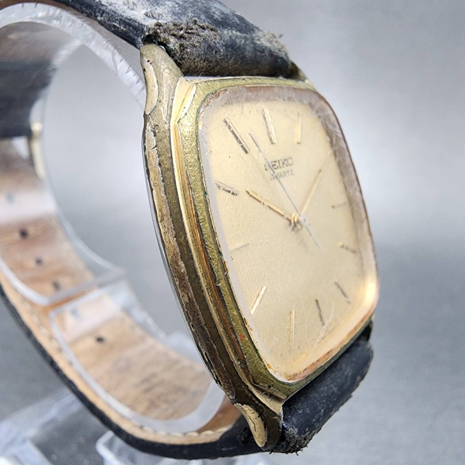 Seiko Tank Watch Men 30mm Gold Dial Gold Tone Rectangle 6431-5140 New battery