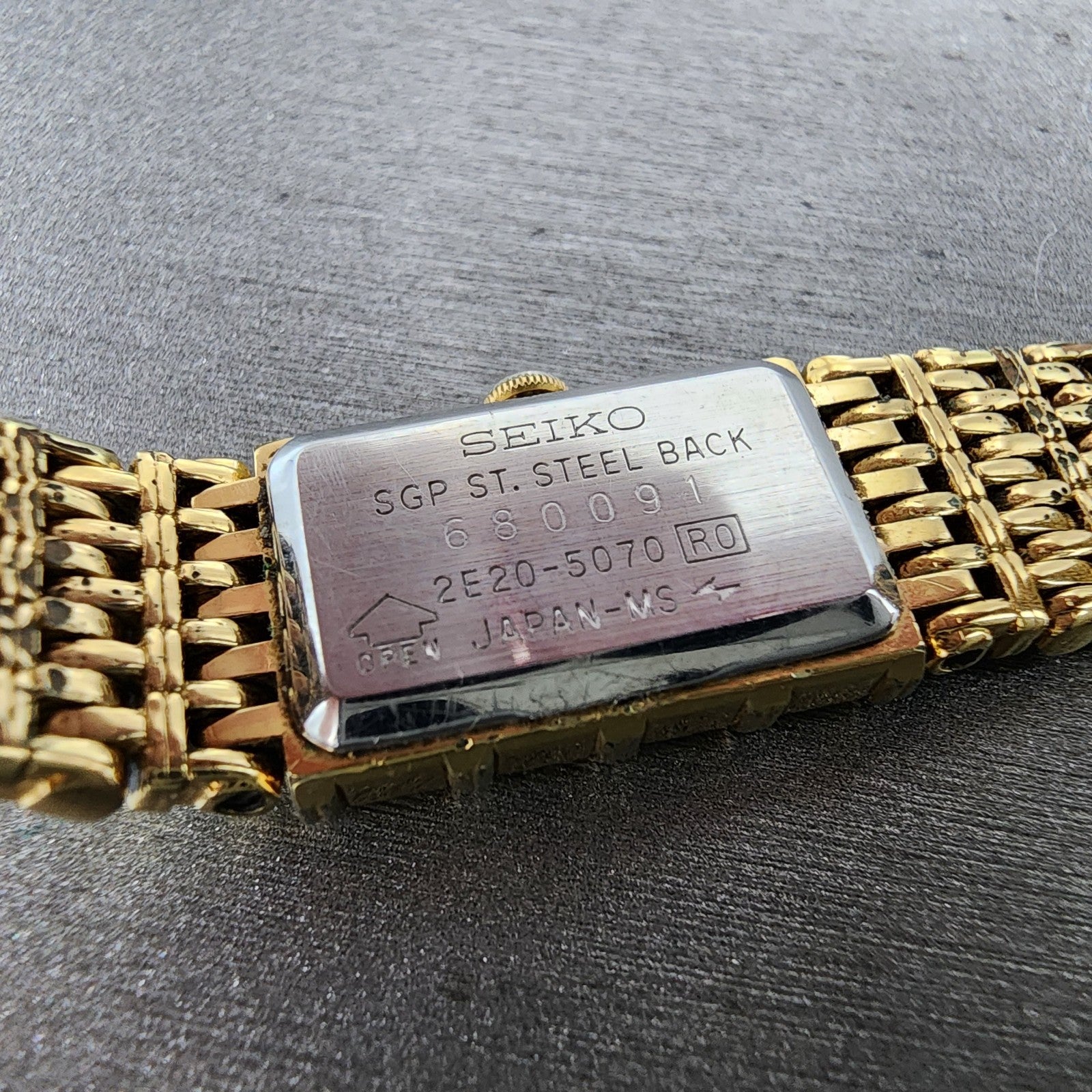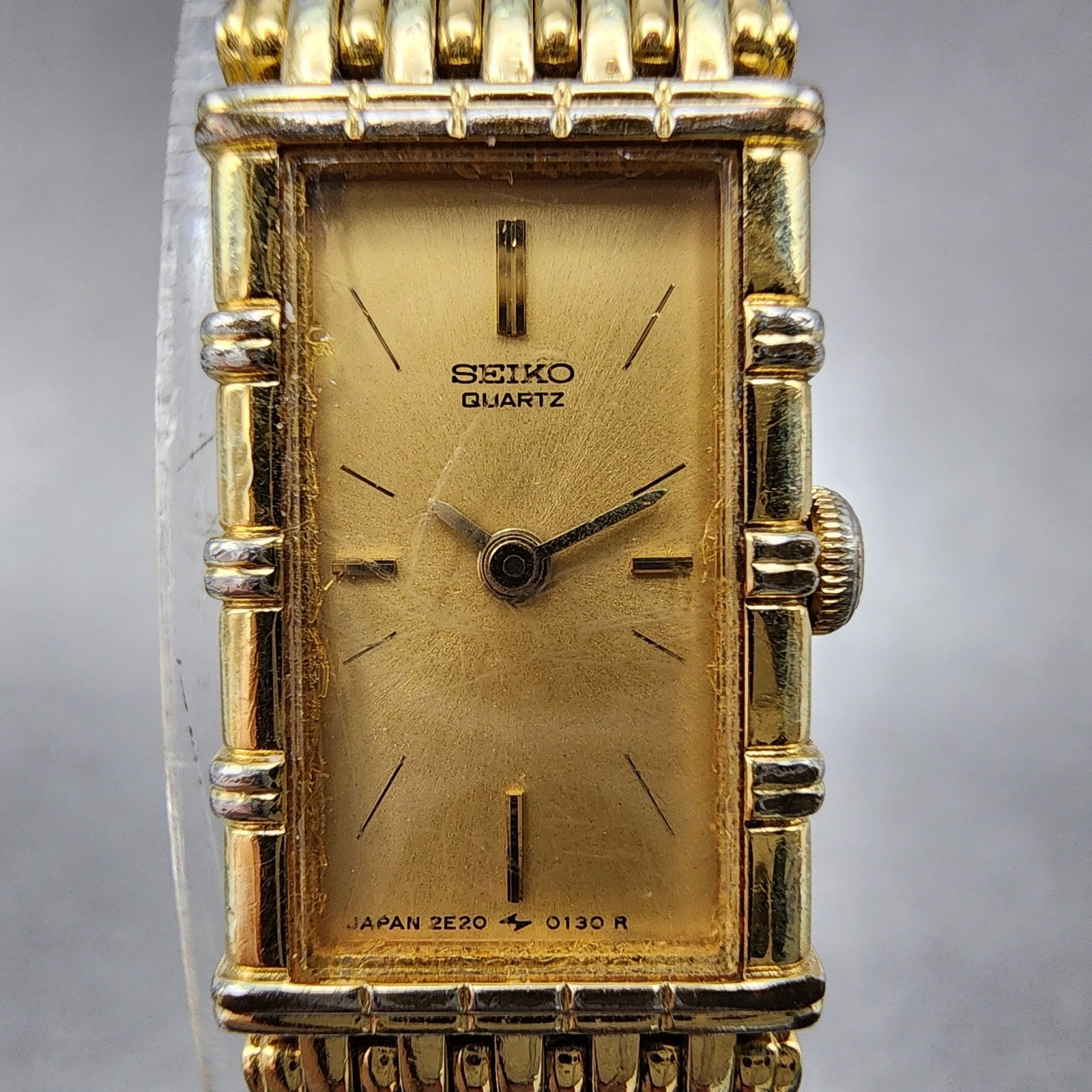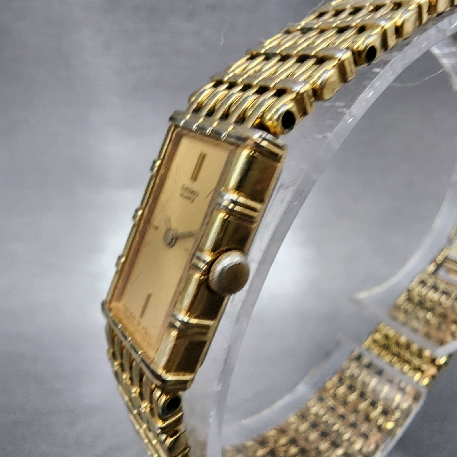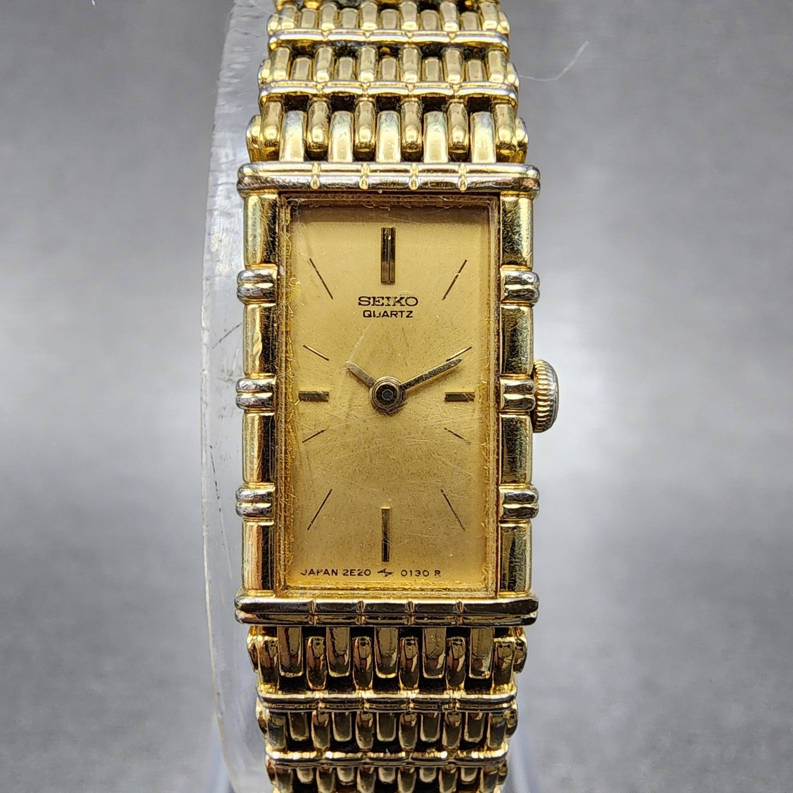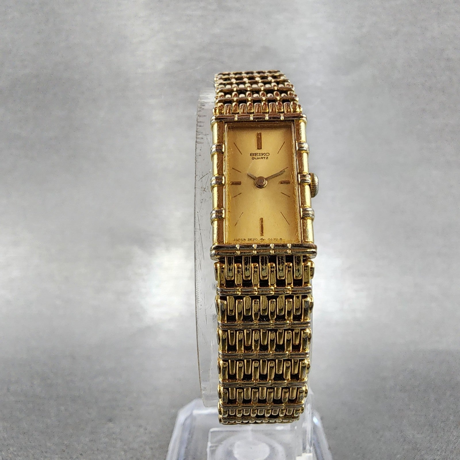 Seiko Tank Watch Women 12mm Champagne Dial Gold Tone 2e20-5070 New Battery