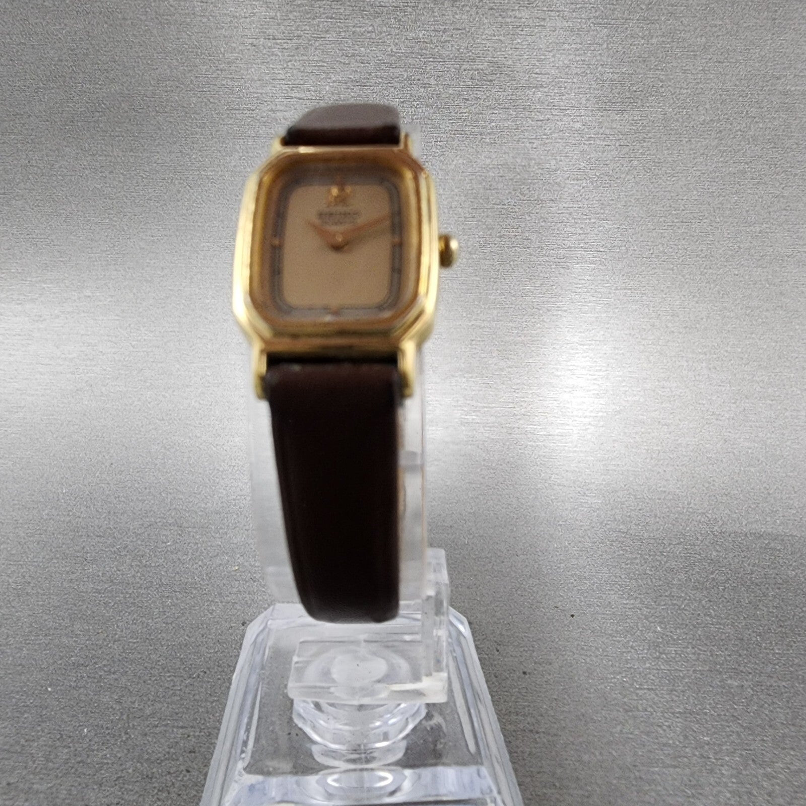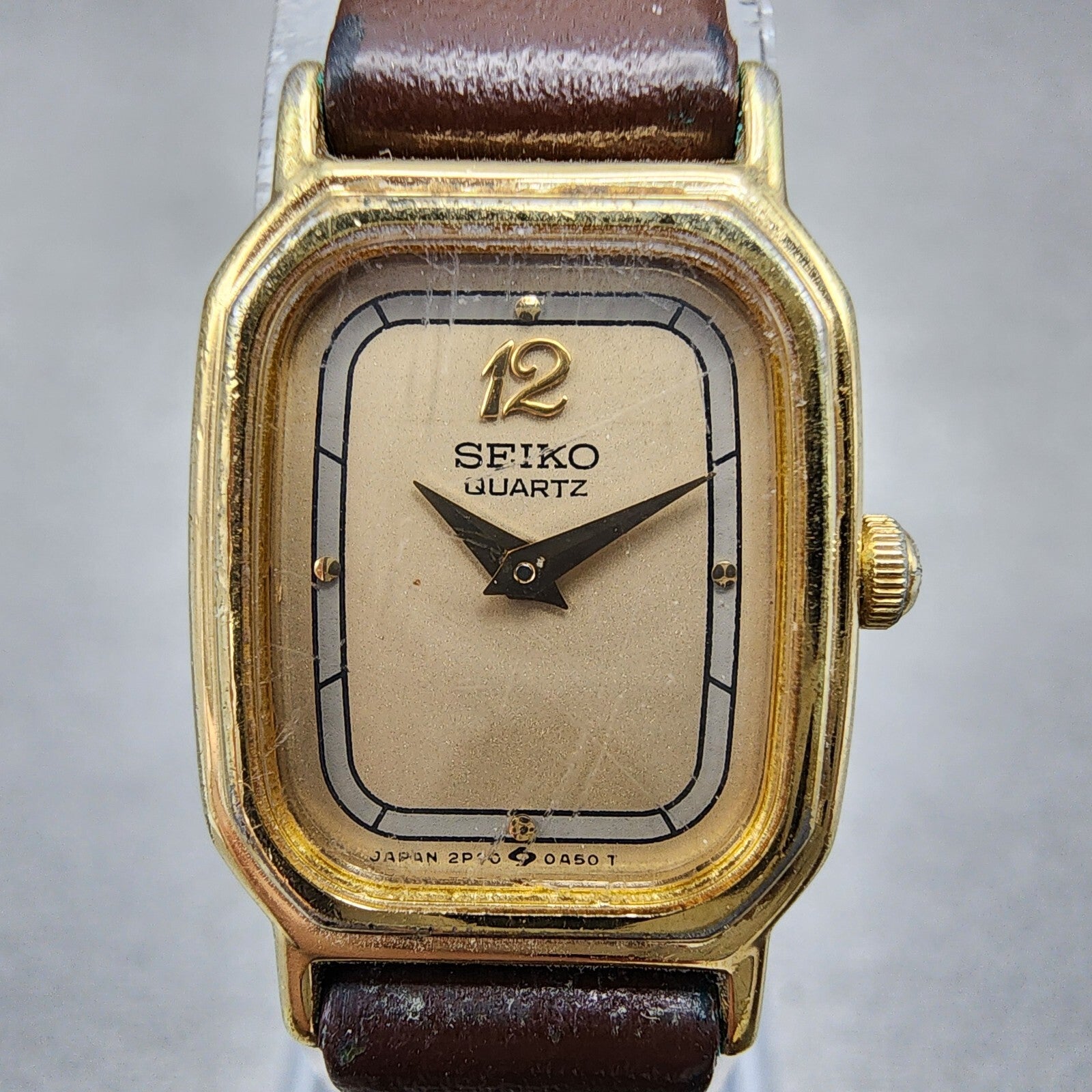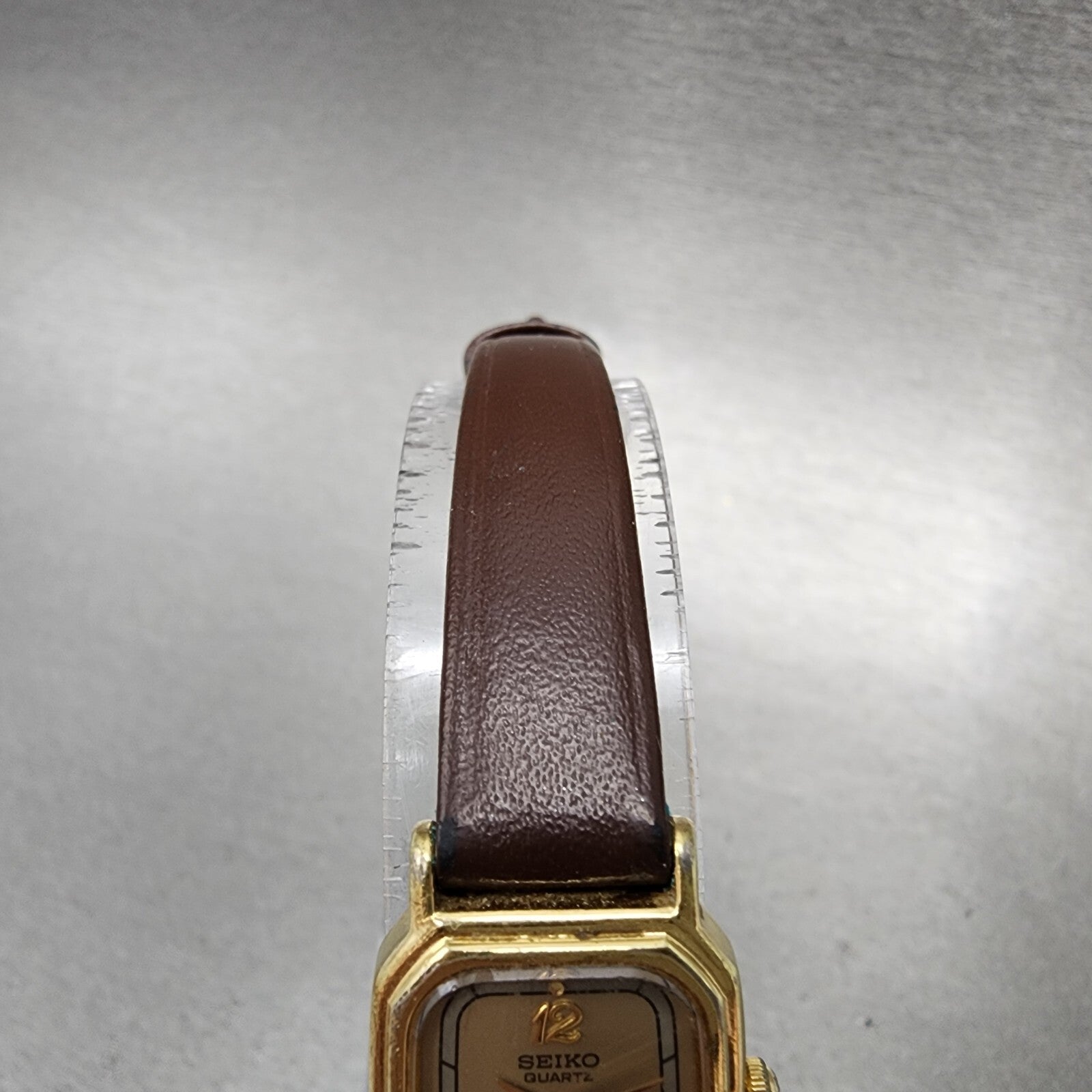 Seiko Tank Watch Women 17mm Brown Dial Gold Tone 2p20-5a09 New Battery
