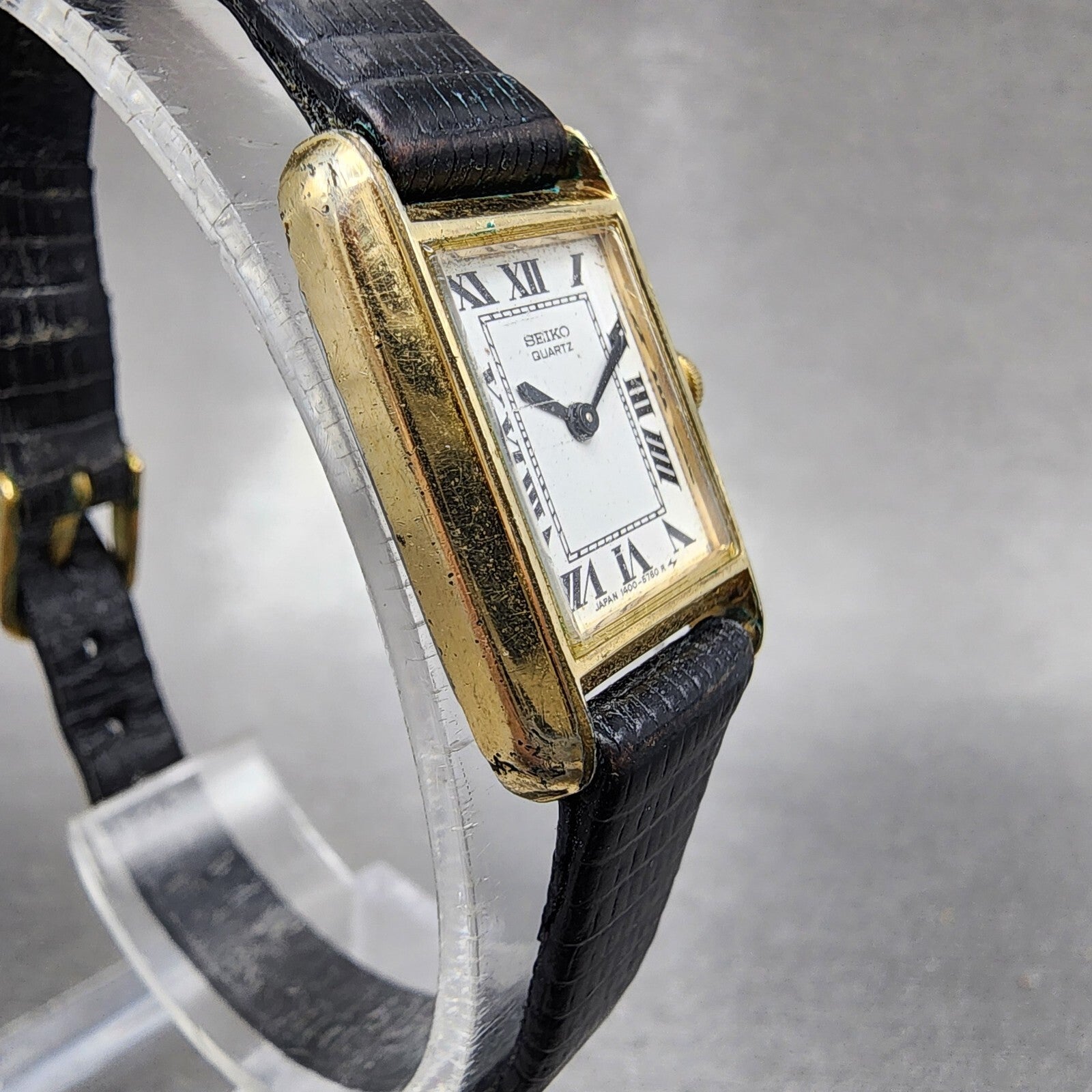 Seiko Tank Watch Women 17mm White Dial Gold Tone Rectangle 1400-8069 New Battery