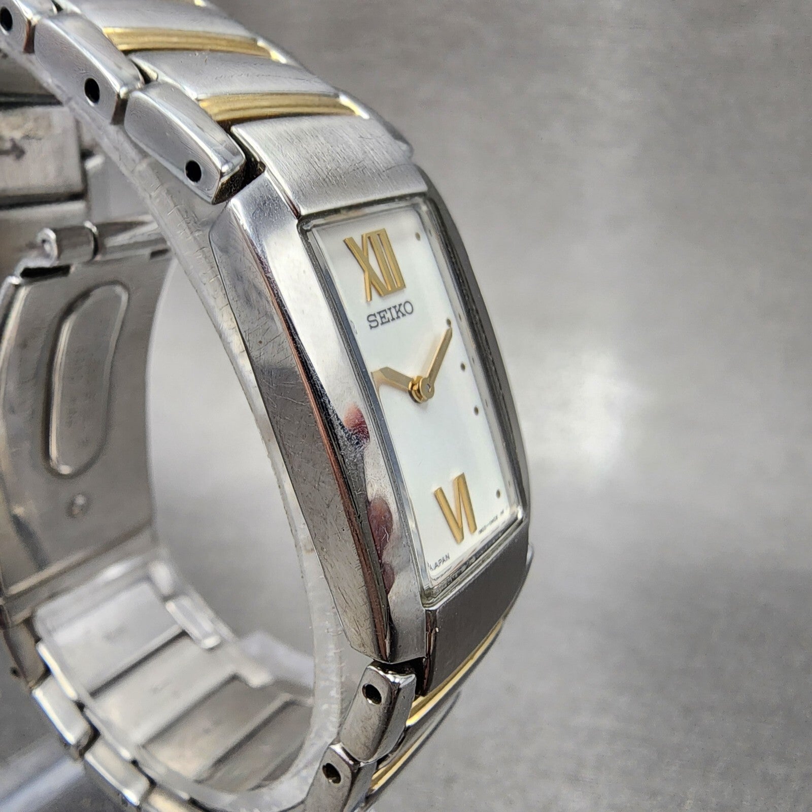 Seiko Tank Watch Women 18mm White Dial Toe Tone Rectangle 1n00-0ez0 New Battery