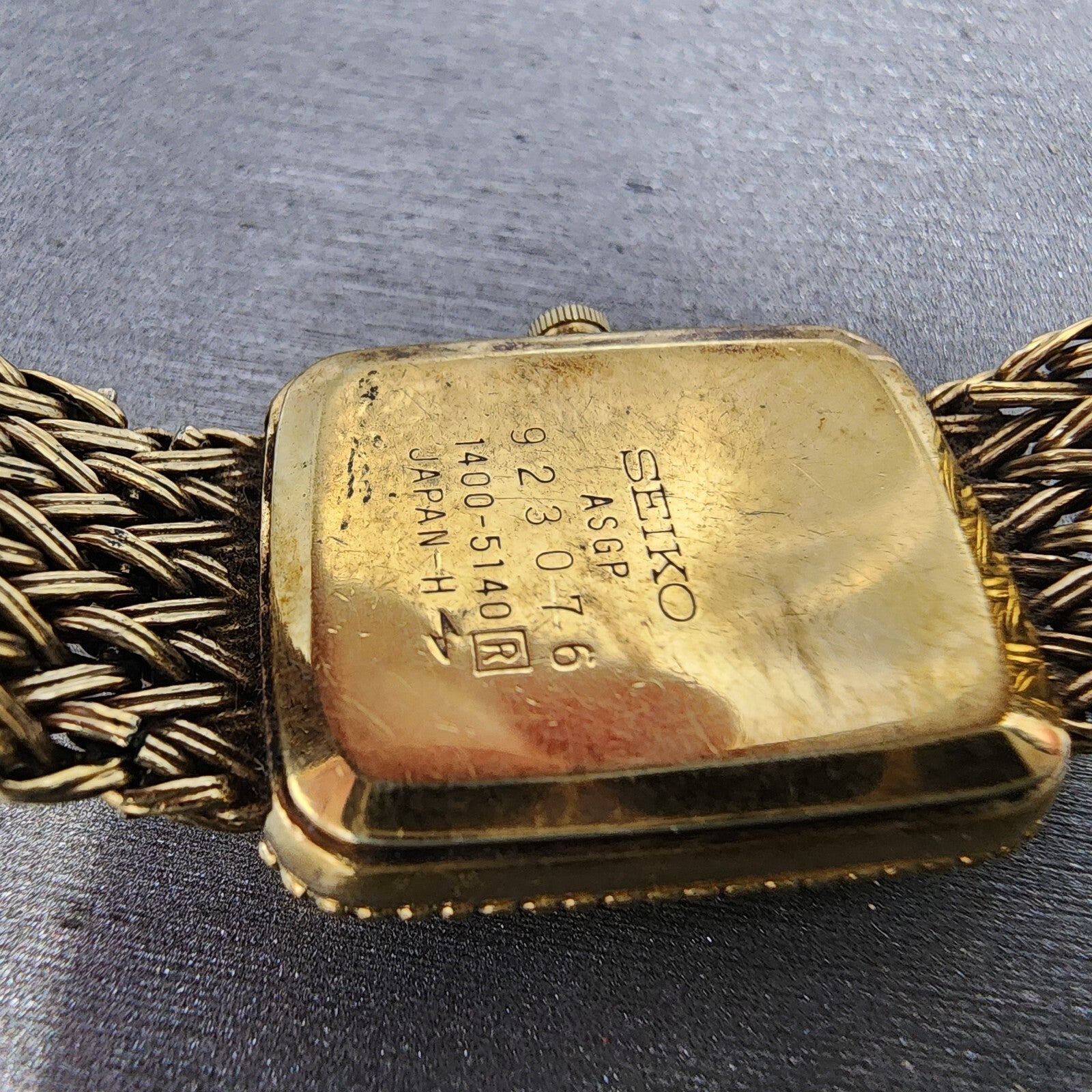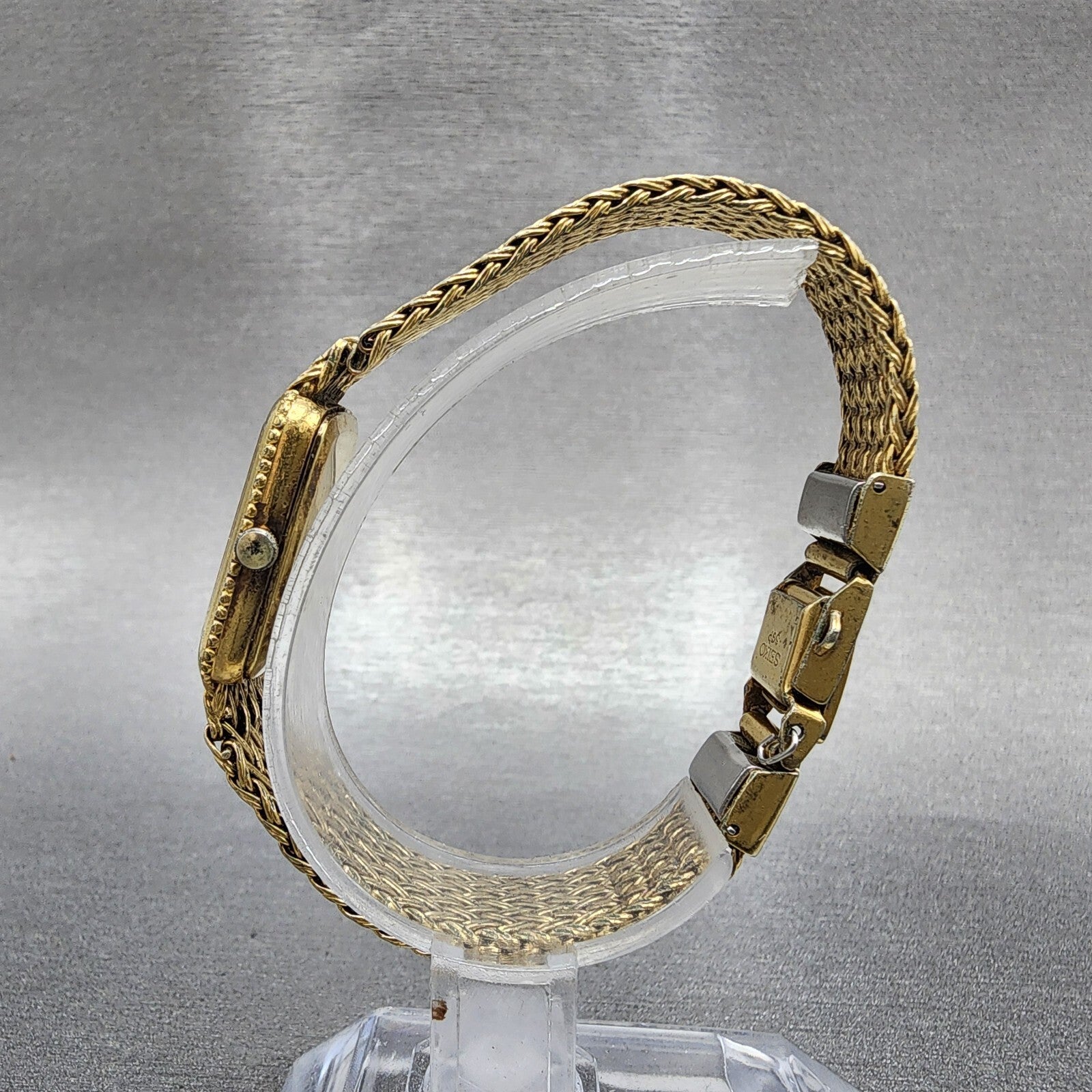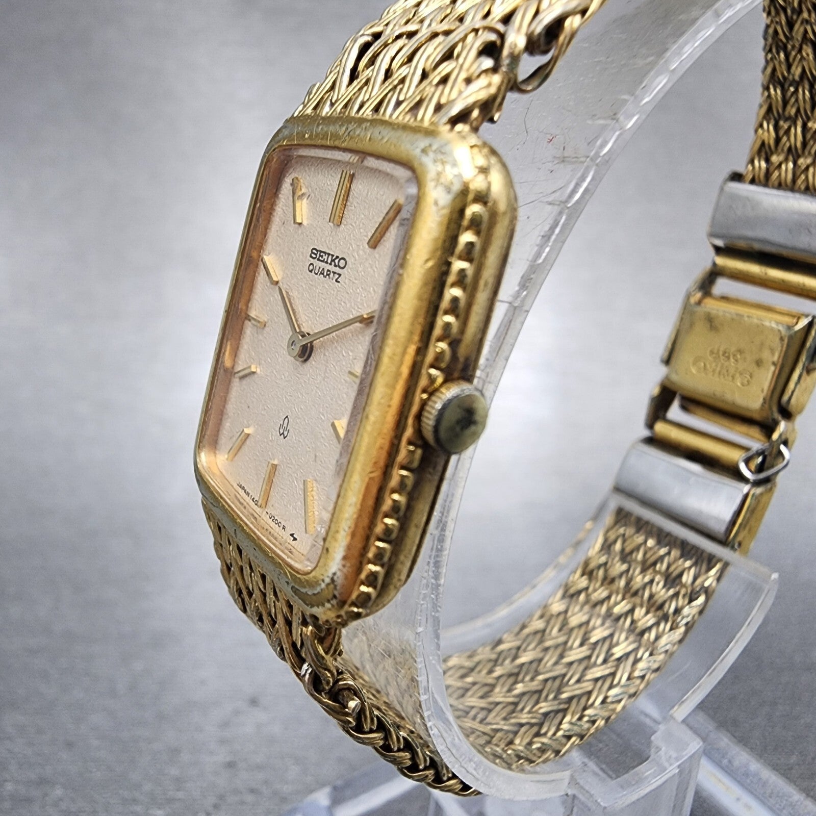 Seiko Tank Watch Women 19mm Champagne Dial Gold Tone 1400-5140 New Battery