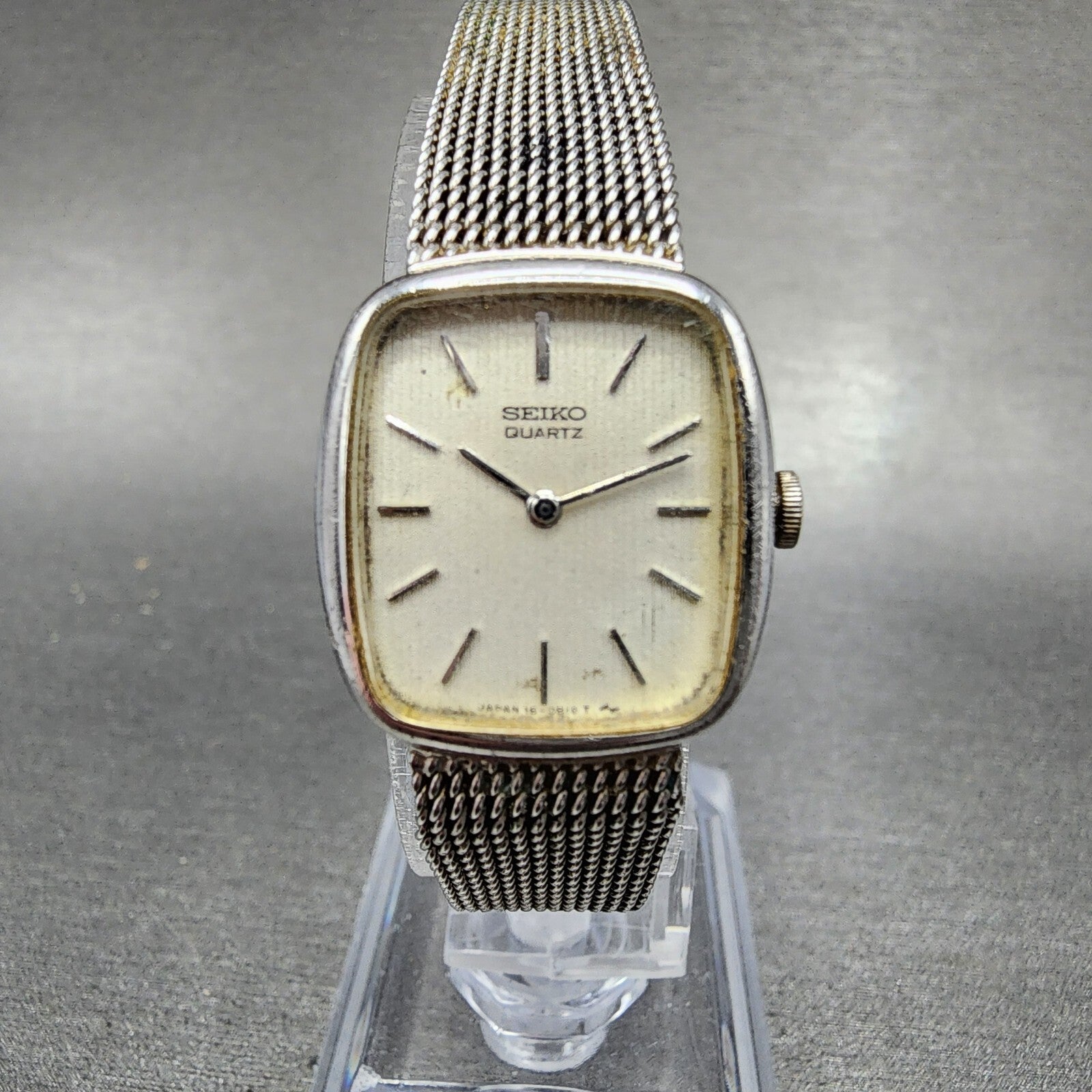 Seiko Tank Watch Women 19mm White Dial Silver Tone Rectangle 16-5259 New Batt