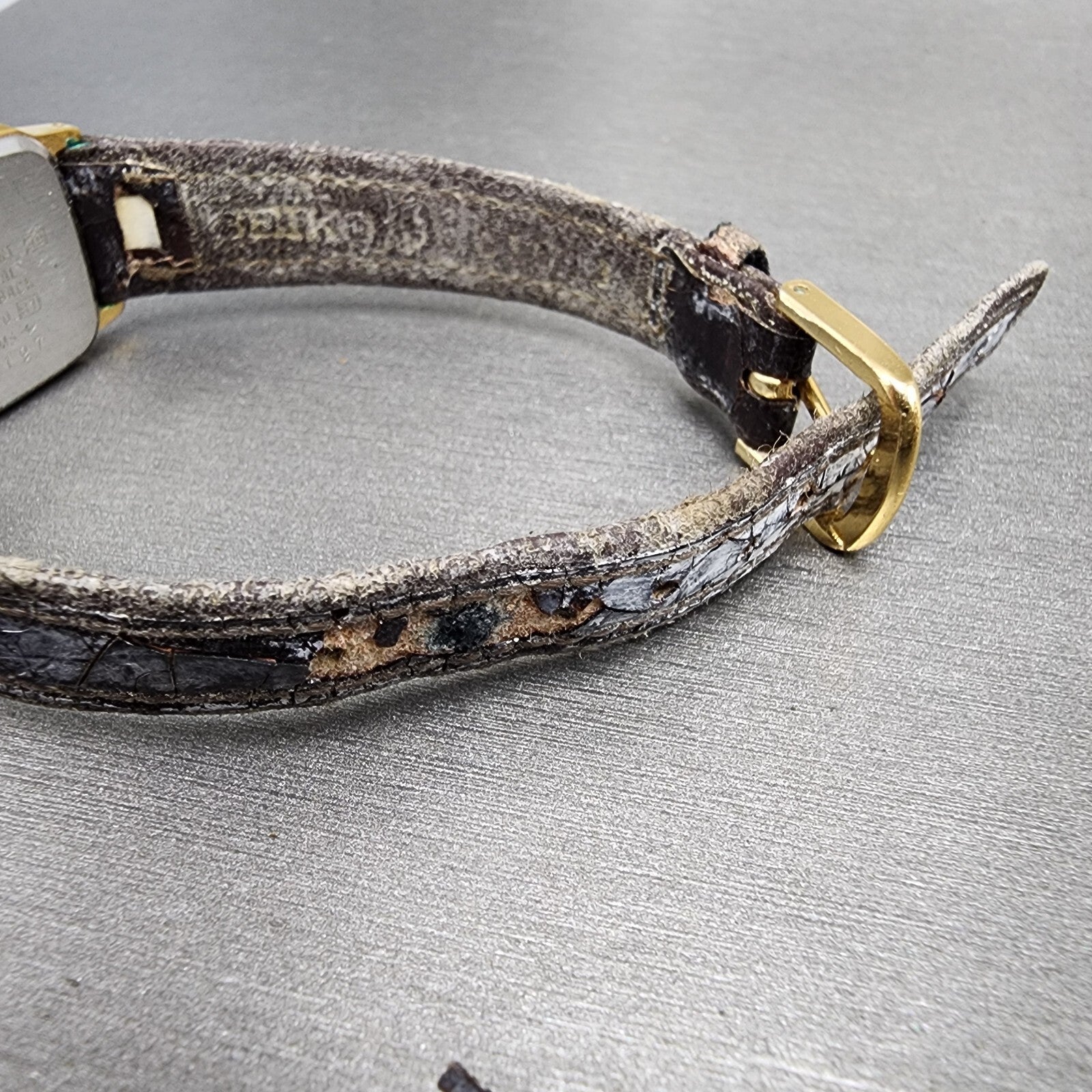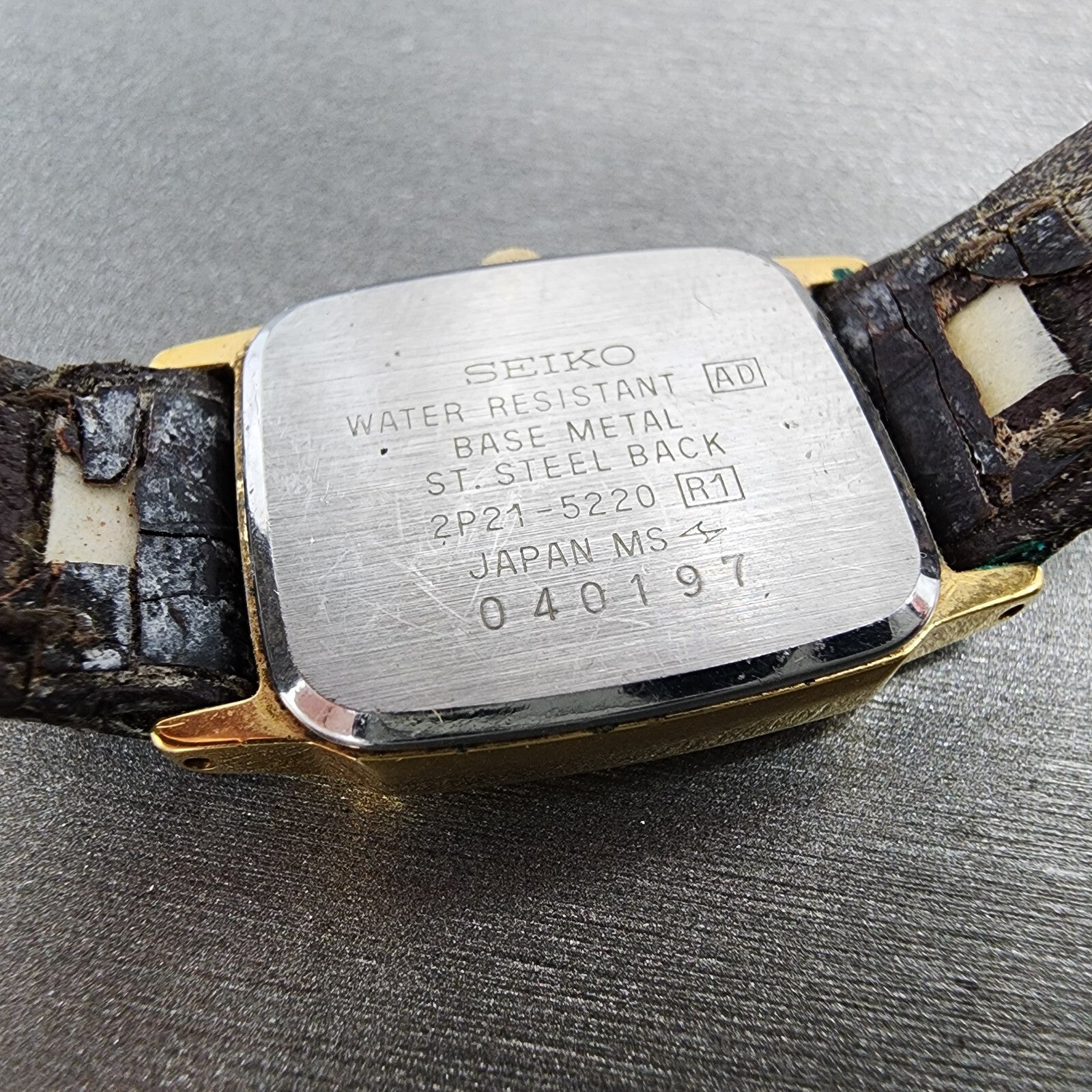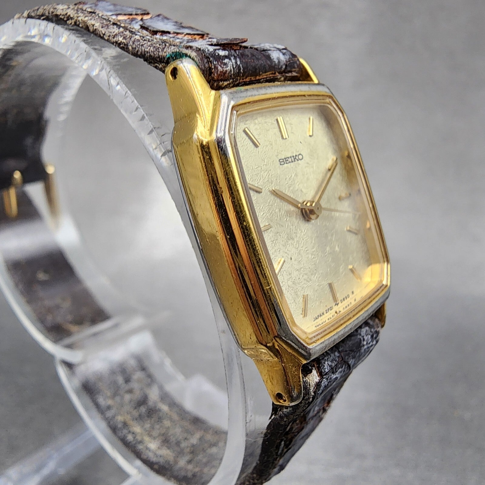 Seiko Tank Watch Women 20mm Champagne Dial Gold Tone 2p21-5220 New Battery