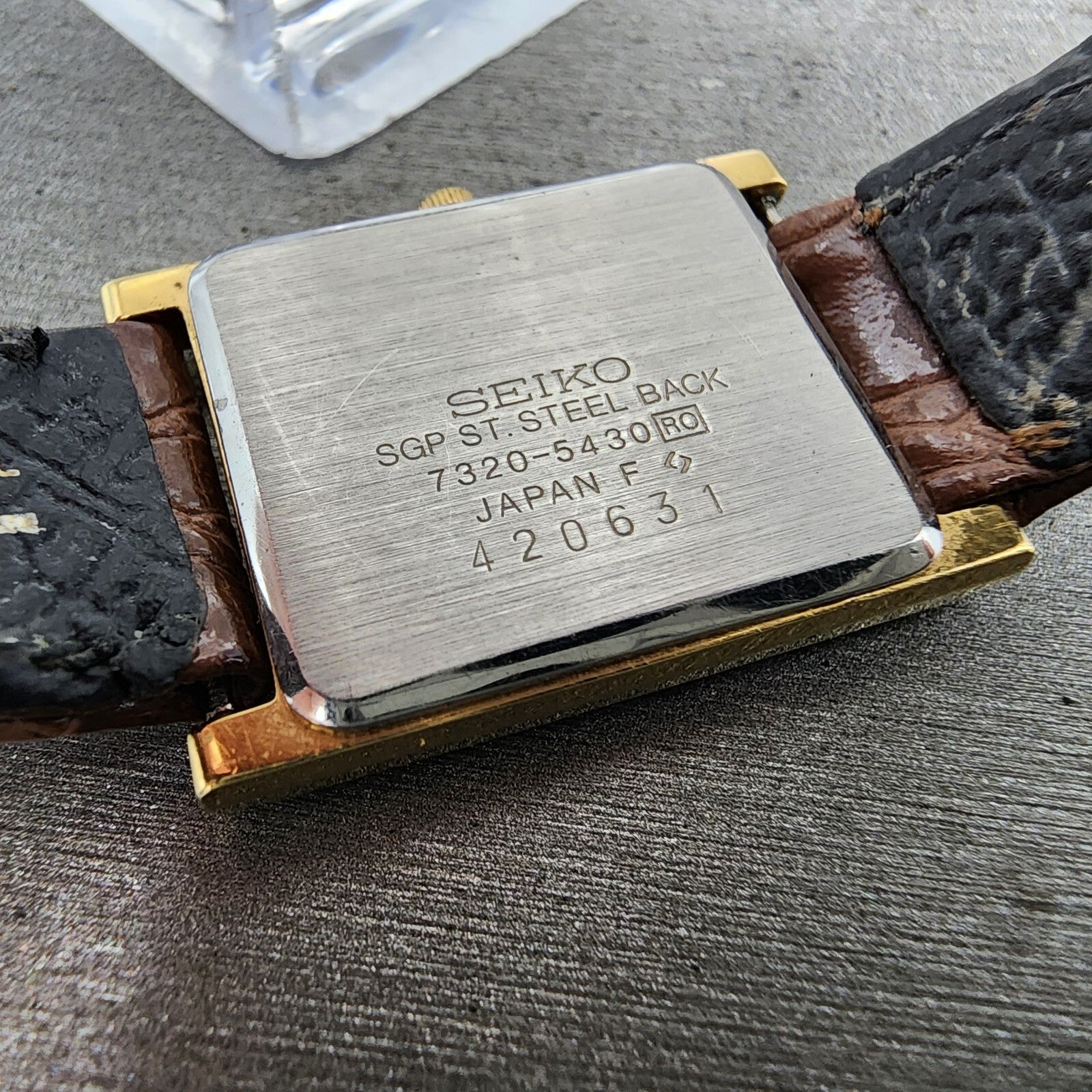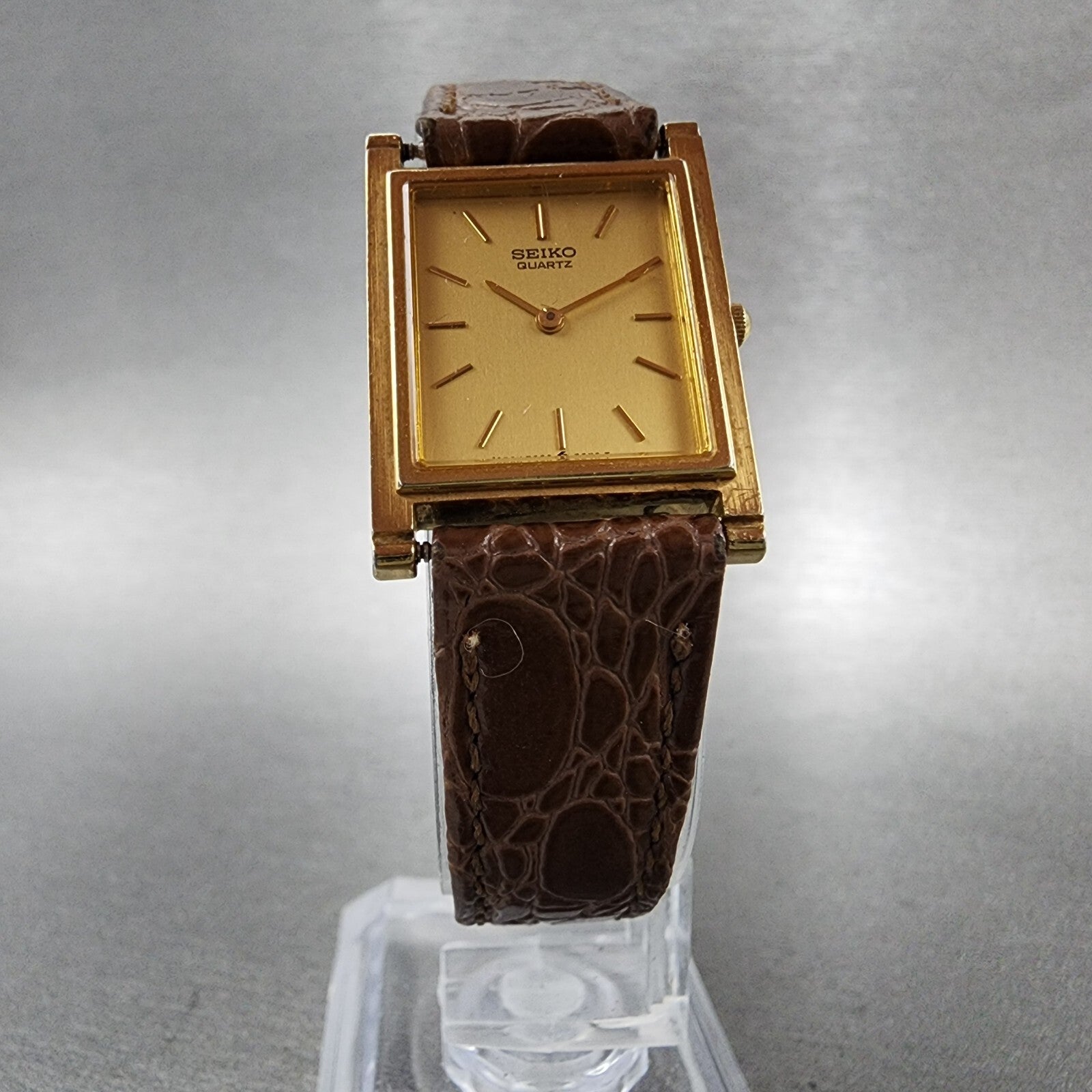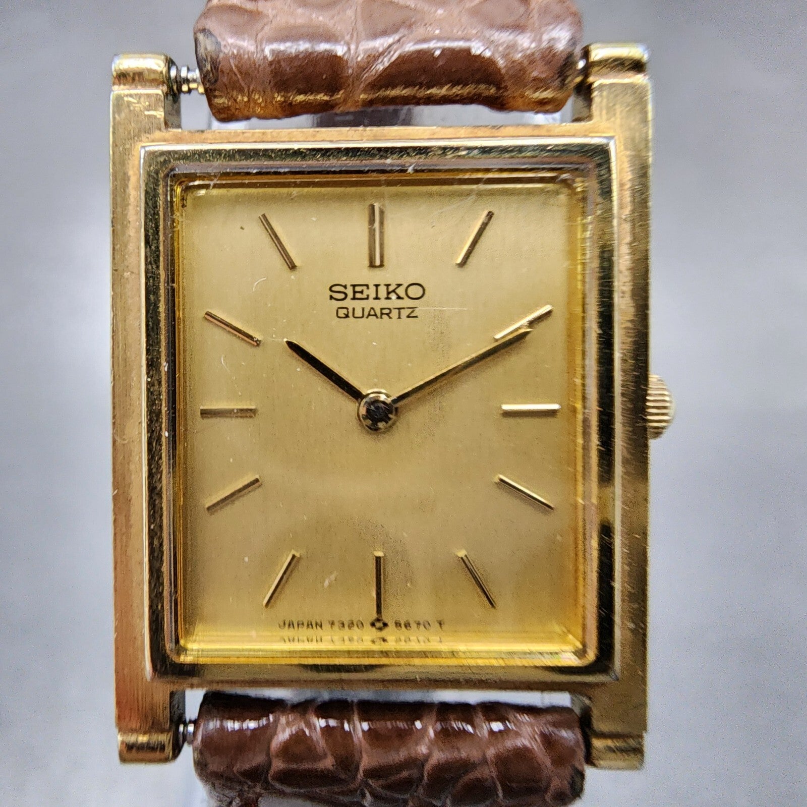Seiko Tank Watch Women 20mm Champagne Dial Gold Tone 7320-5430 New Battery