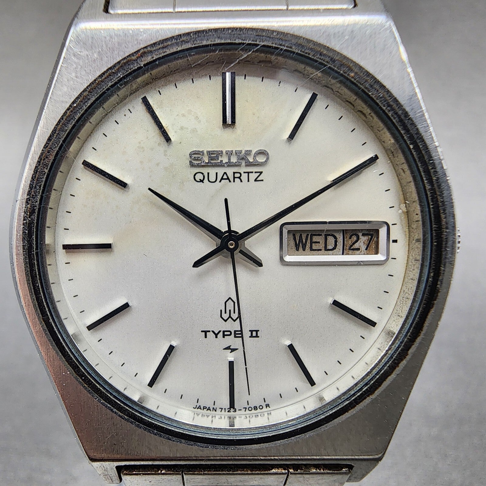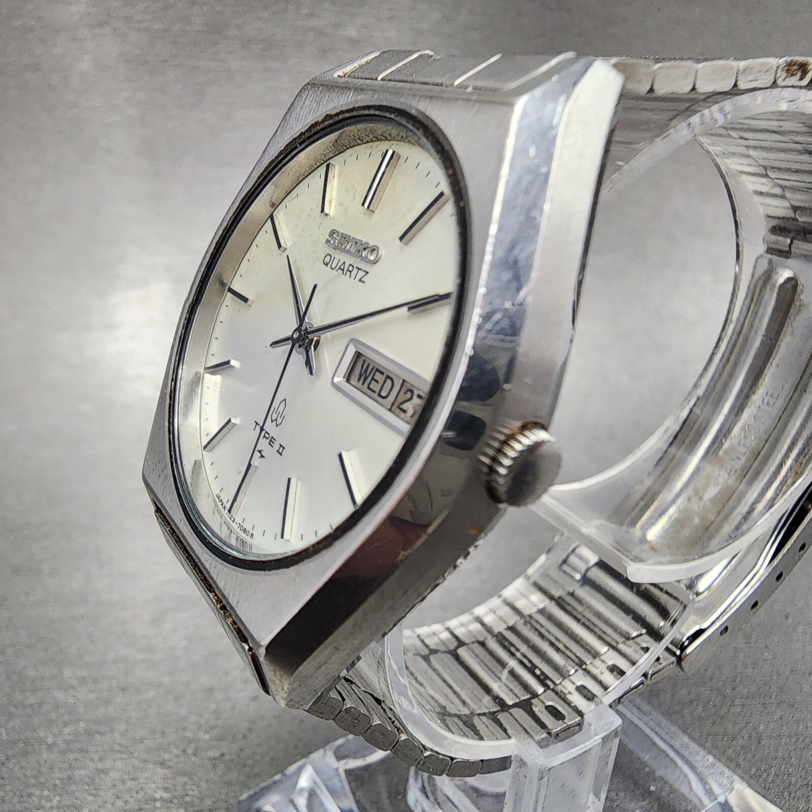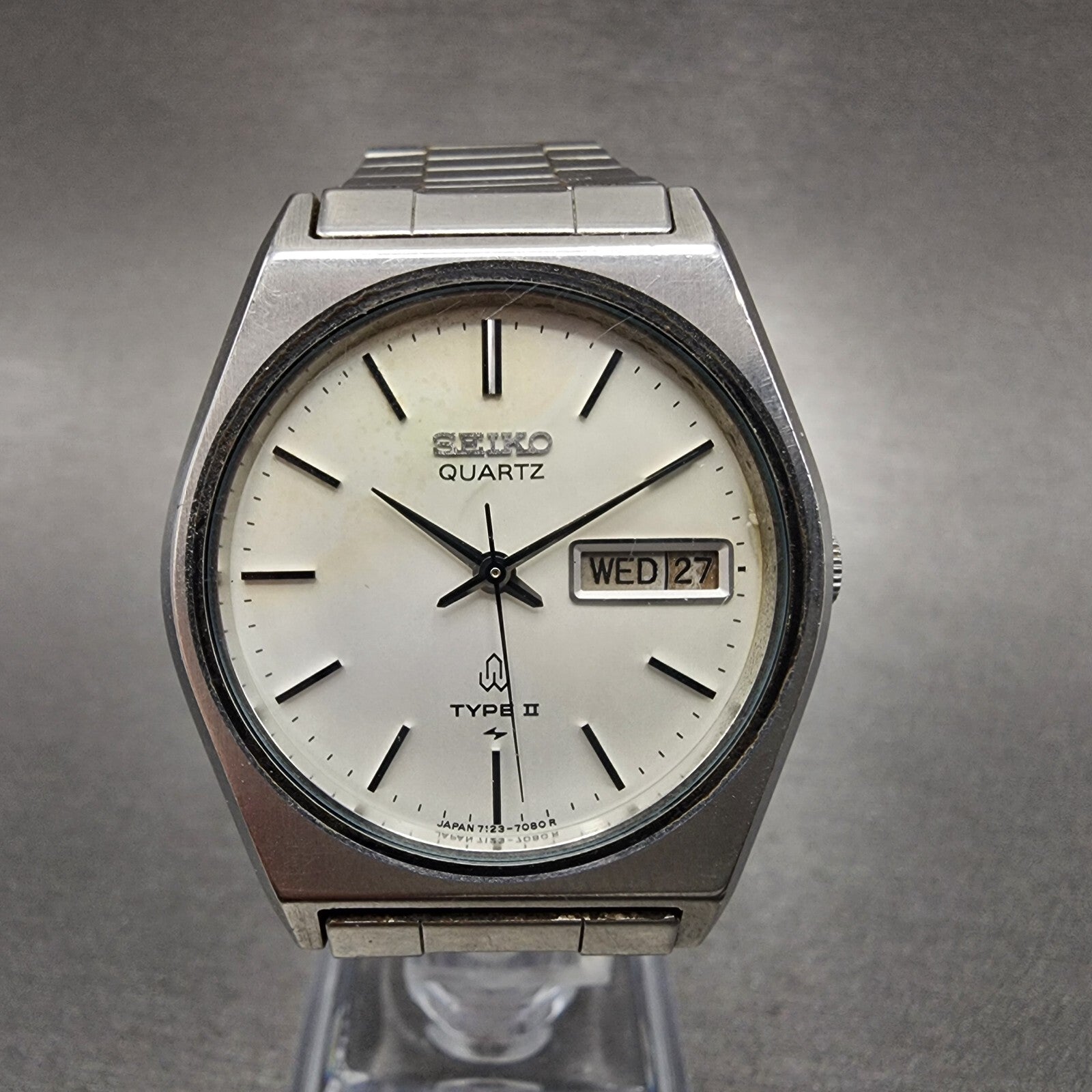 Seiko Type II Watch Men 34mm Silver Dial Silver Tone Daydate 7123-7080 PARTS