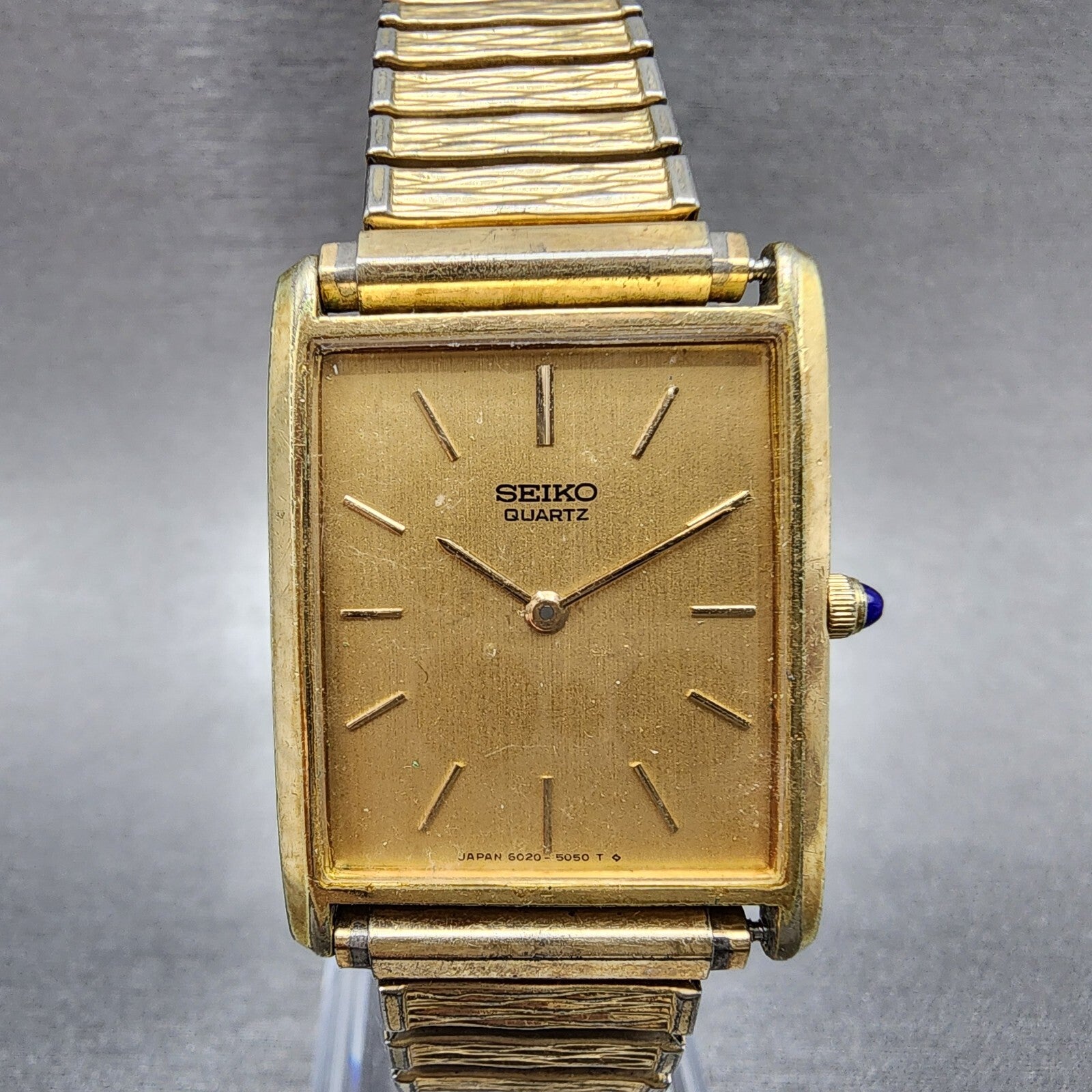Seiko Watch Men 25mm Champagne Dial Gold Tone 6020-5059 New Battery