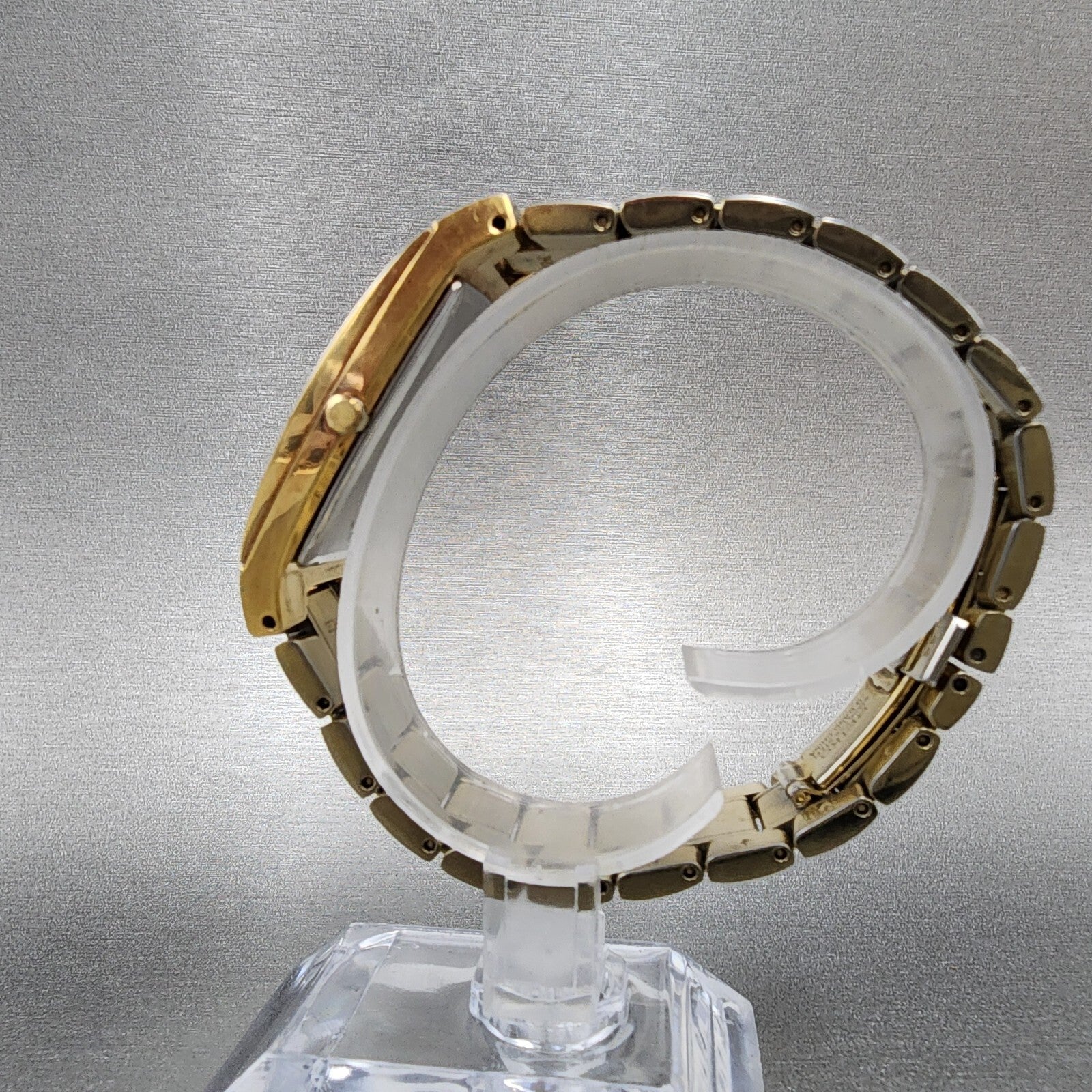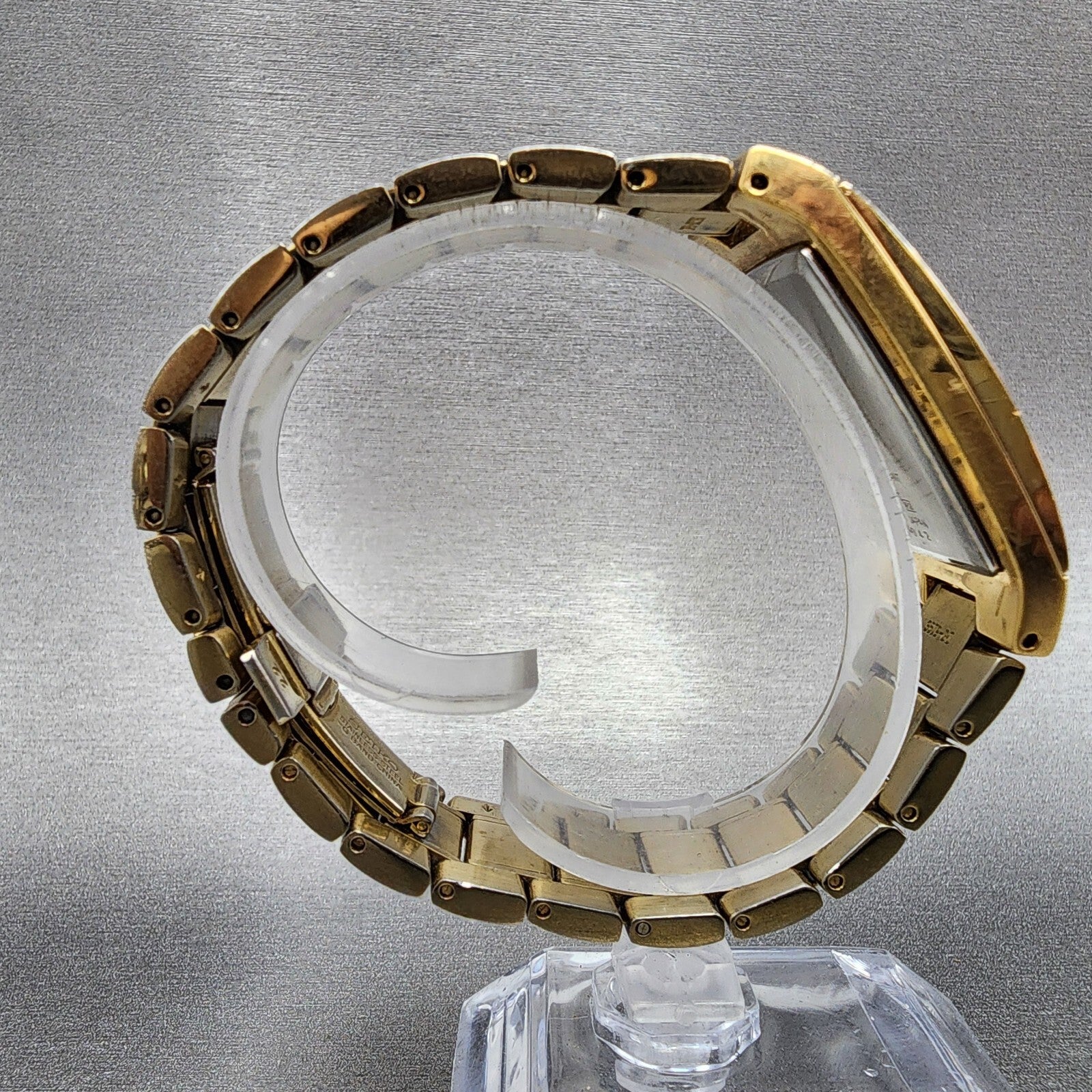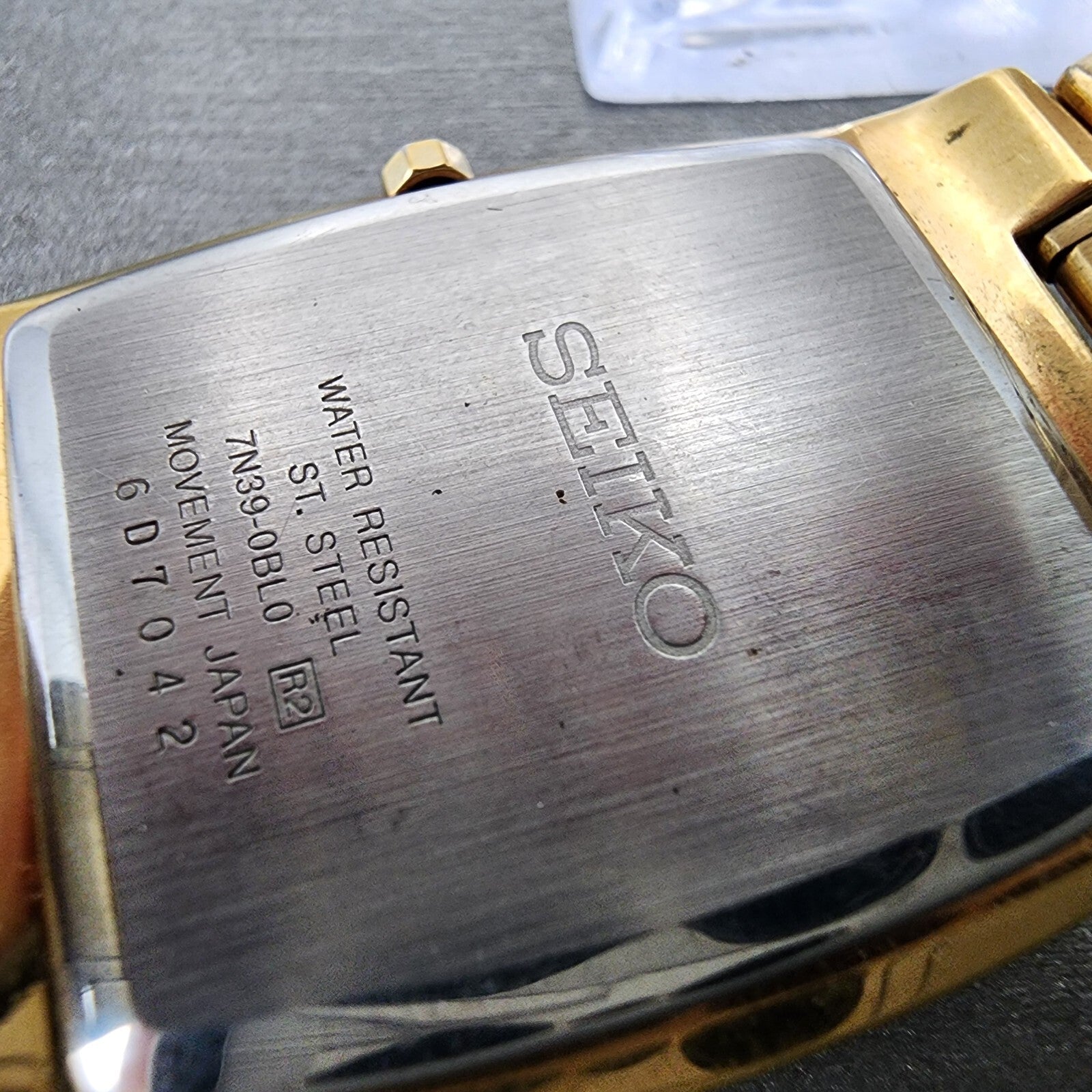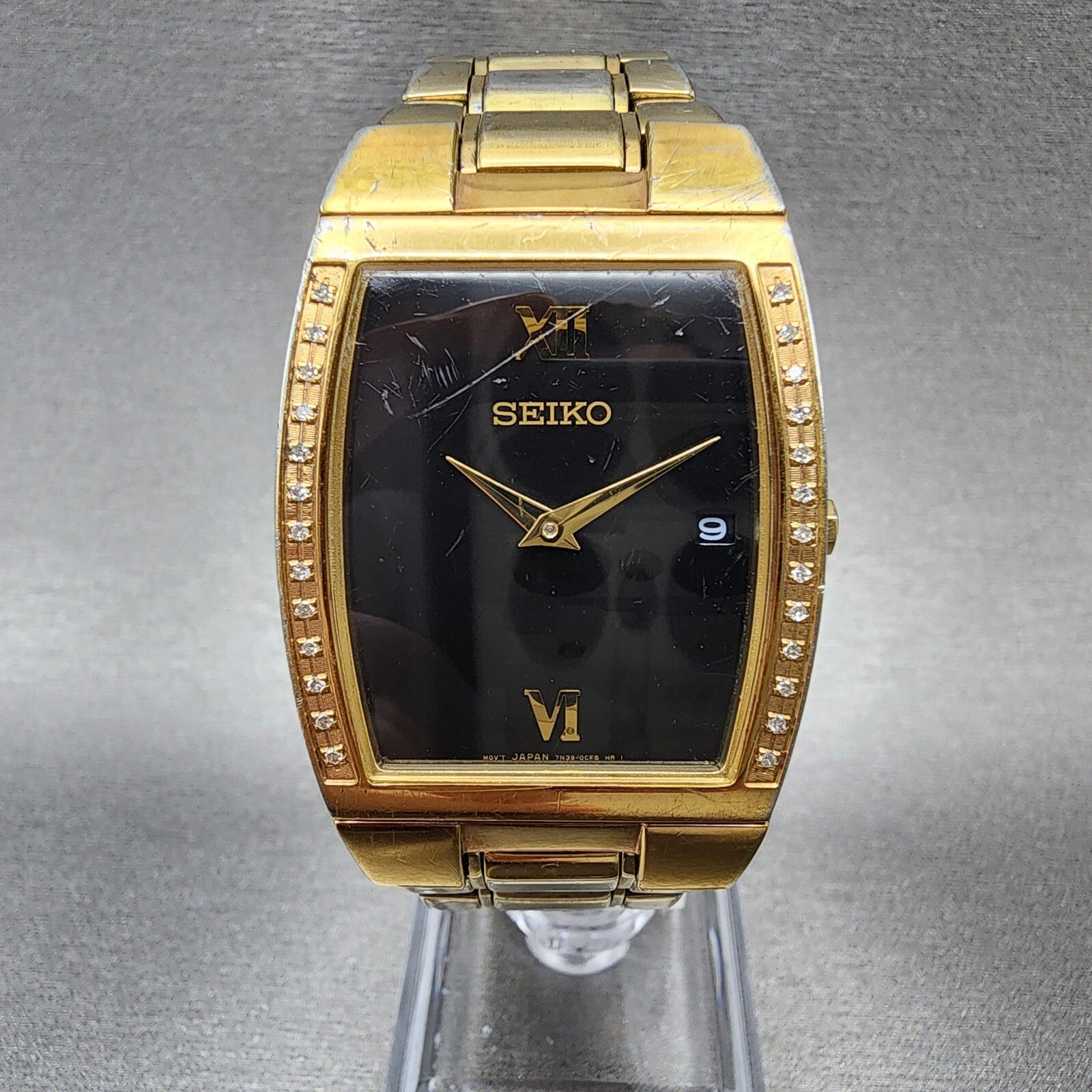 Seiko Watch Men 30mm Black Dial Gold Tone Diamond Bezel Tonneau 7N39-0BL0 NewBat