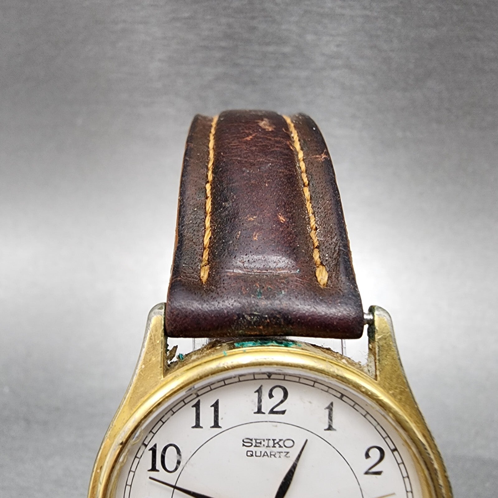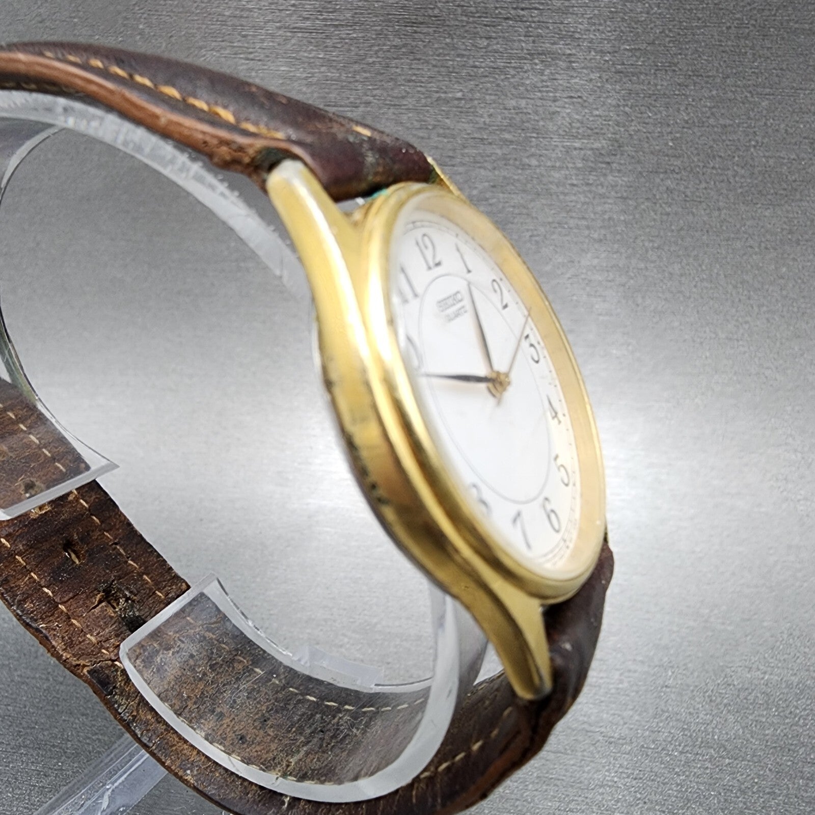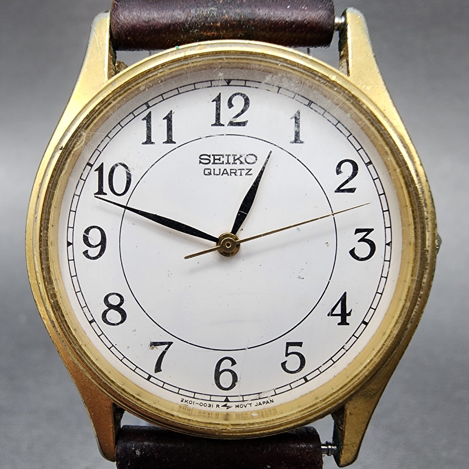 Seiko Watch Men 32mm White Dial Gold Tone Round 2K01-0011 Vintage PARTS