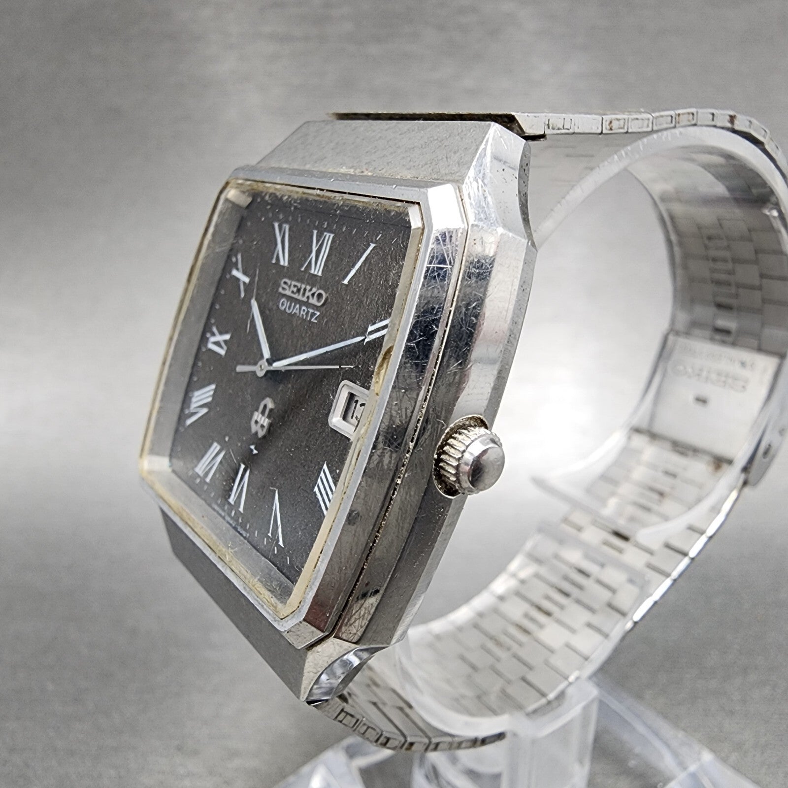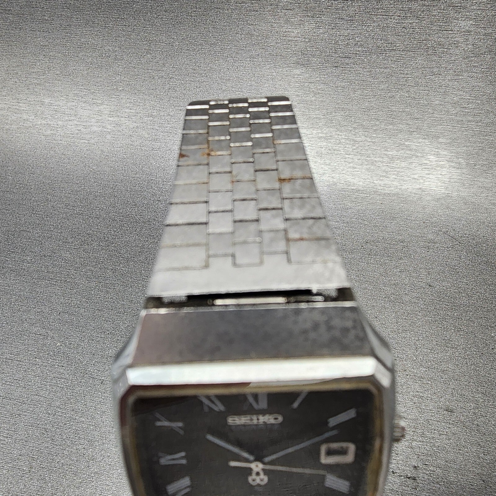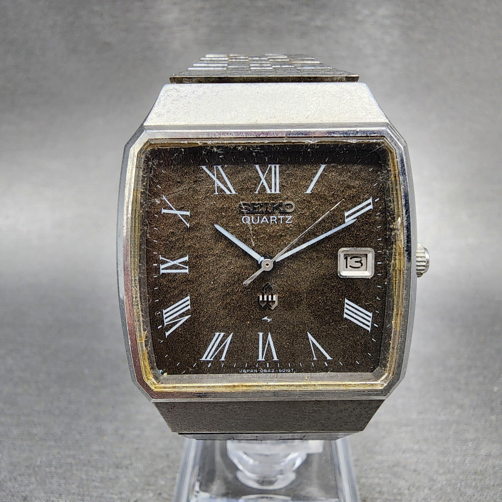 Seiko Watch Men 33mm Brown Dial Silver Tone Date Rectangle 0842-5010 New Battery