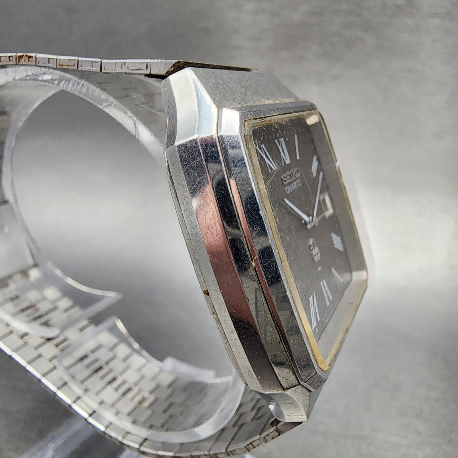 This watch has been used but is in good working condition. There is scratches on the watch. please refer to pictures.