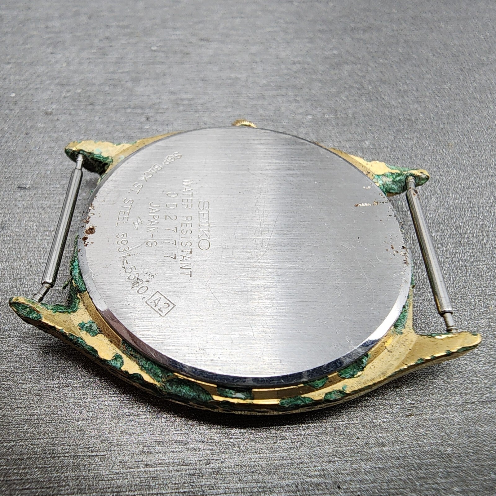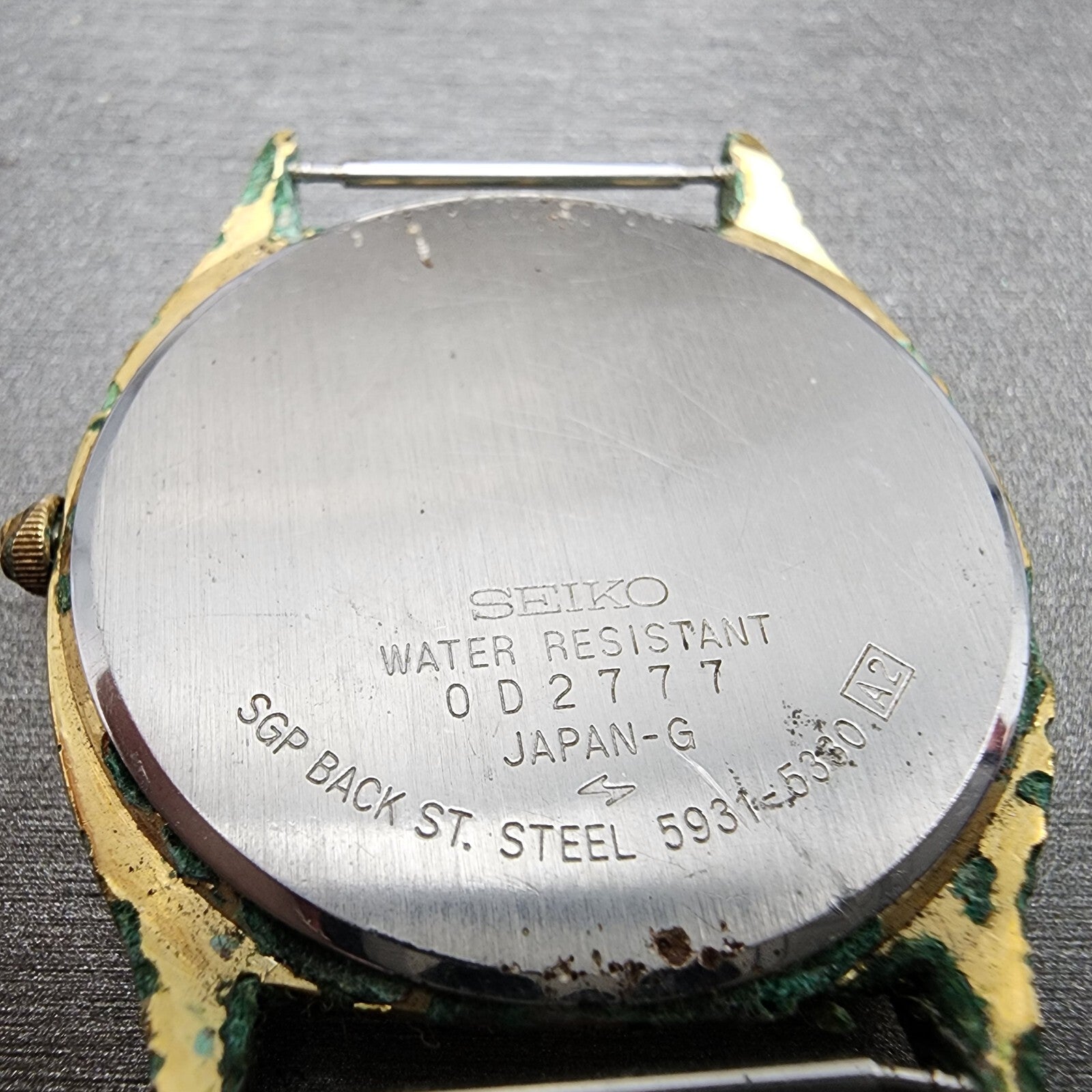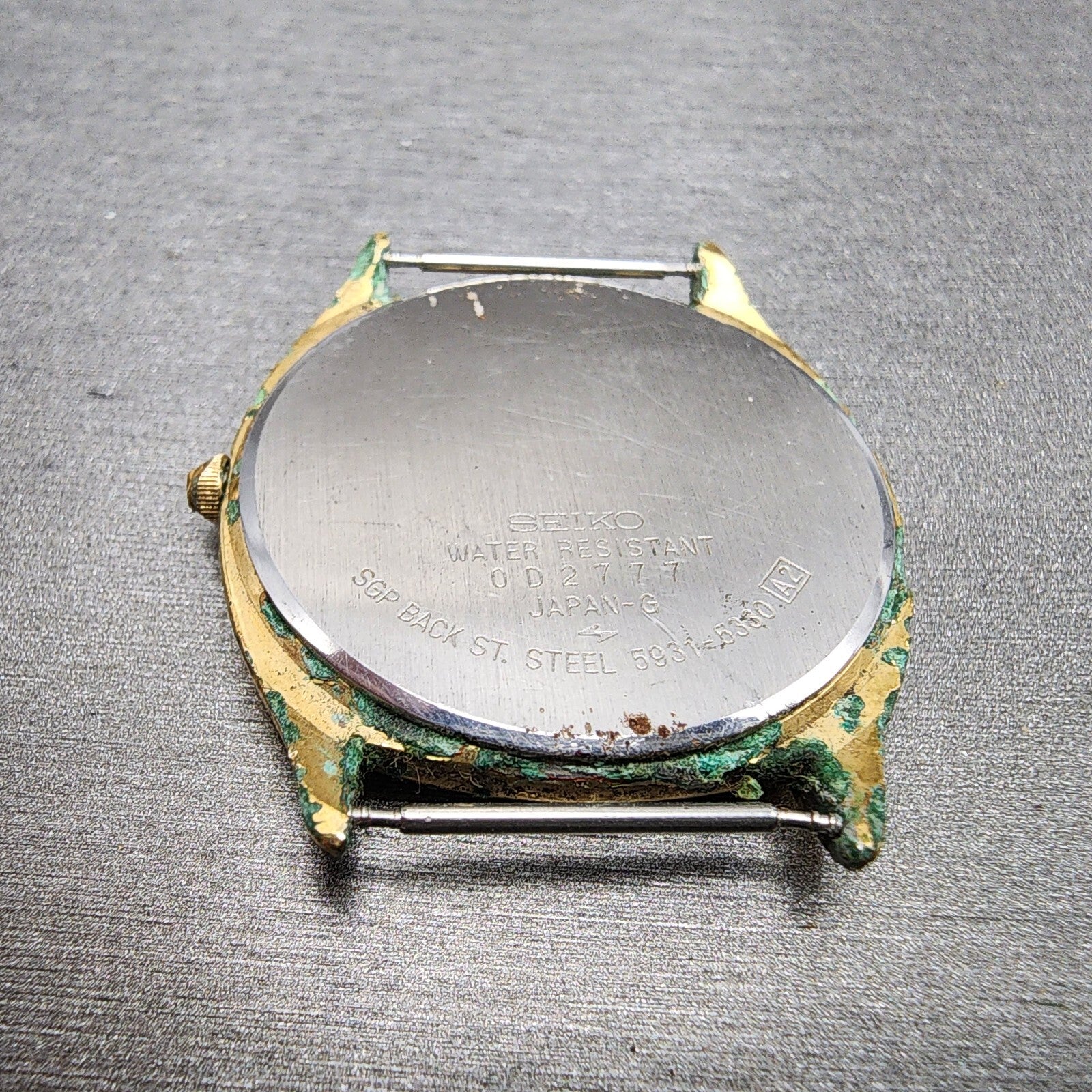 Seiko Watch Men 33mm Champagne Dial Gold Tone Rectangle 5931-5330 New Battery