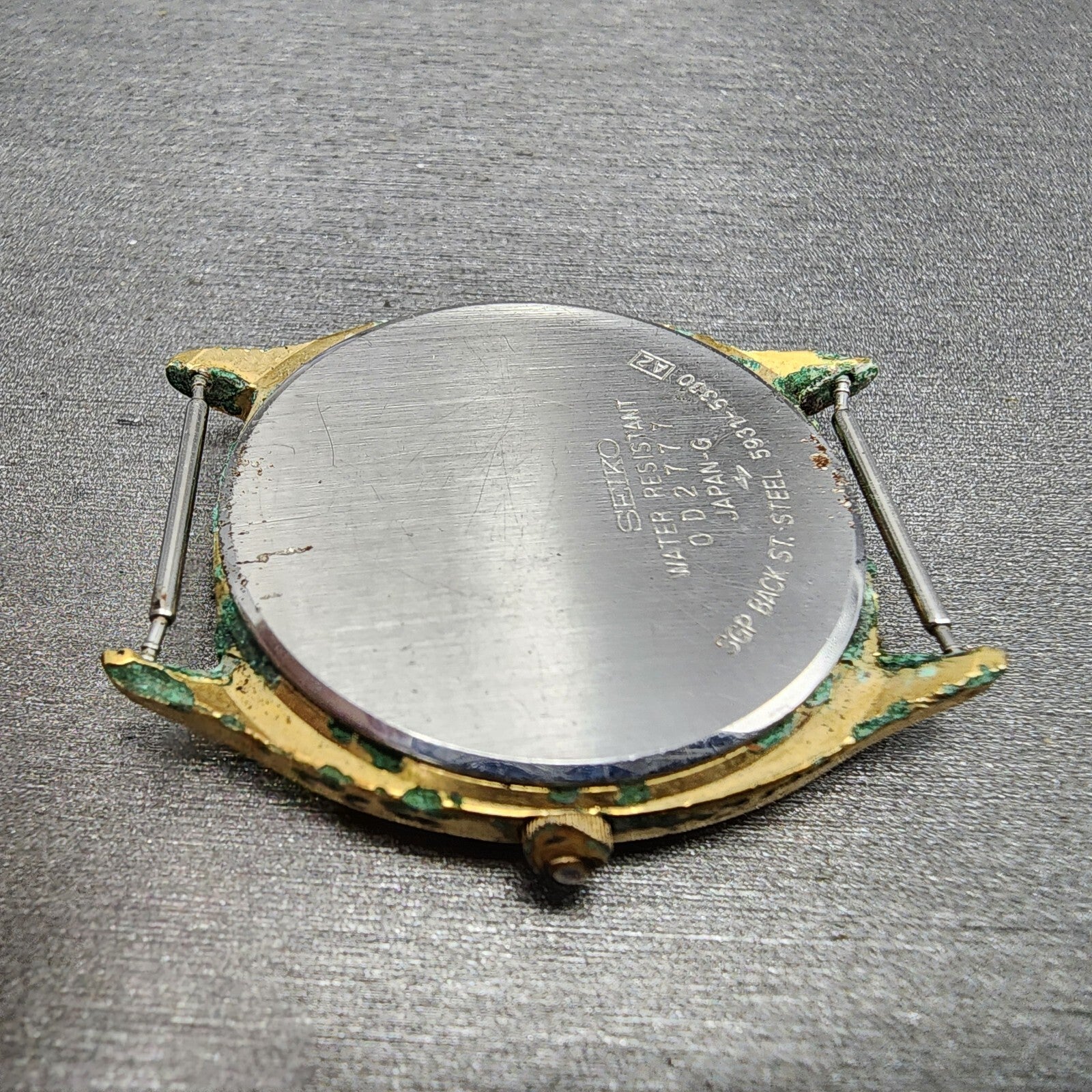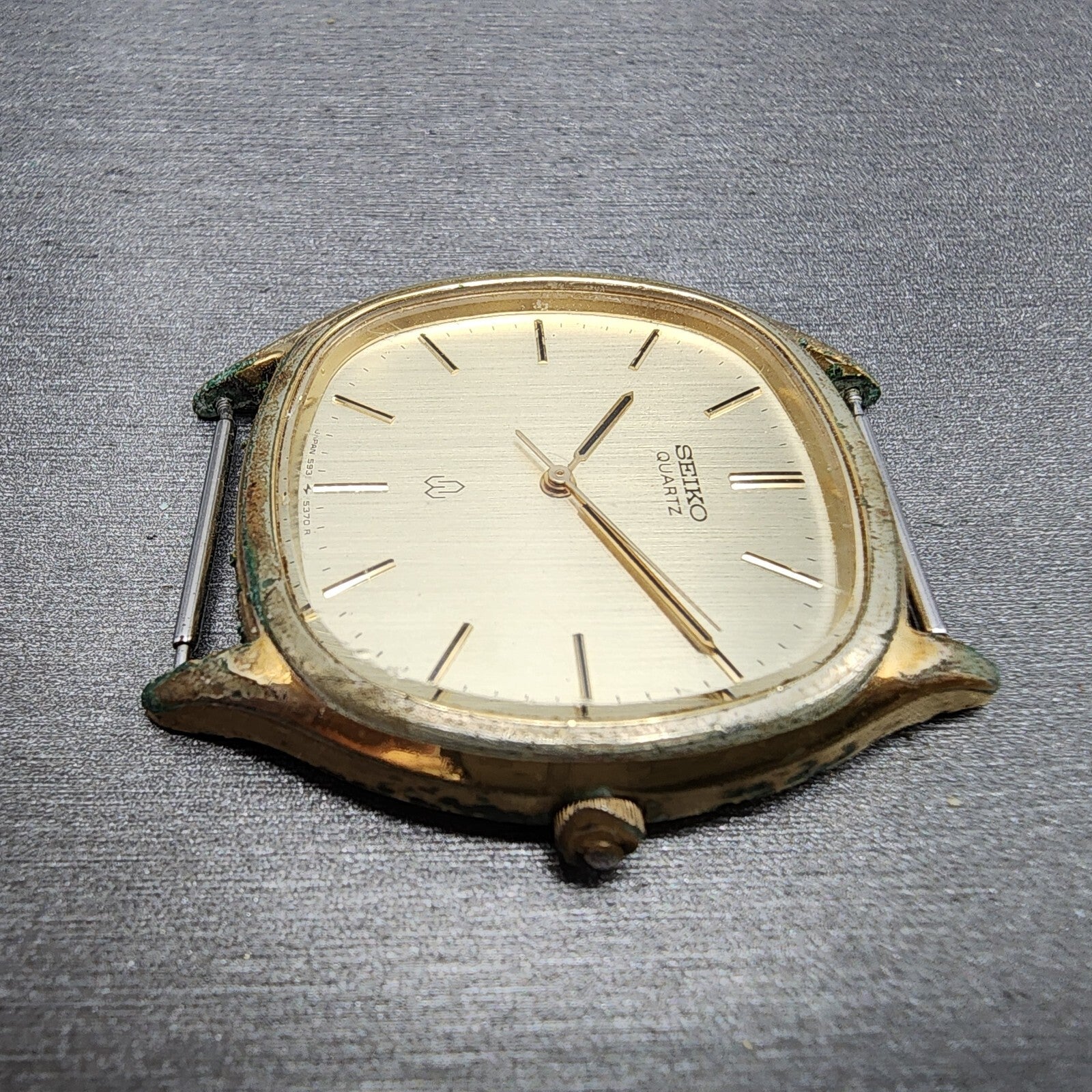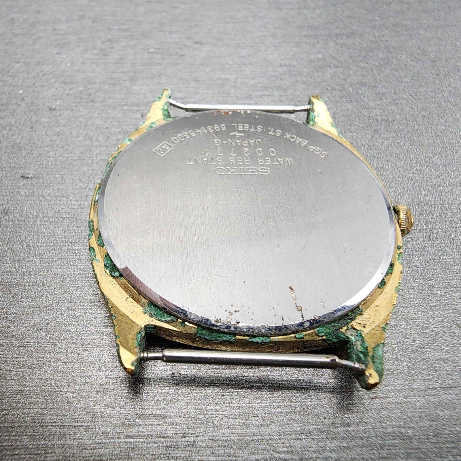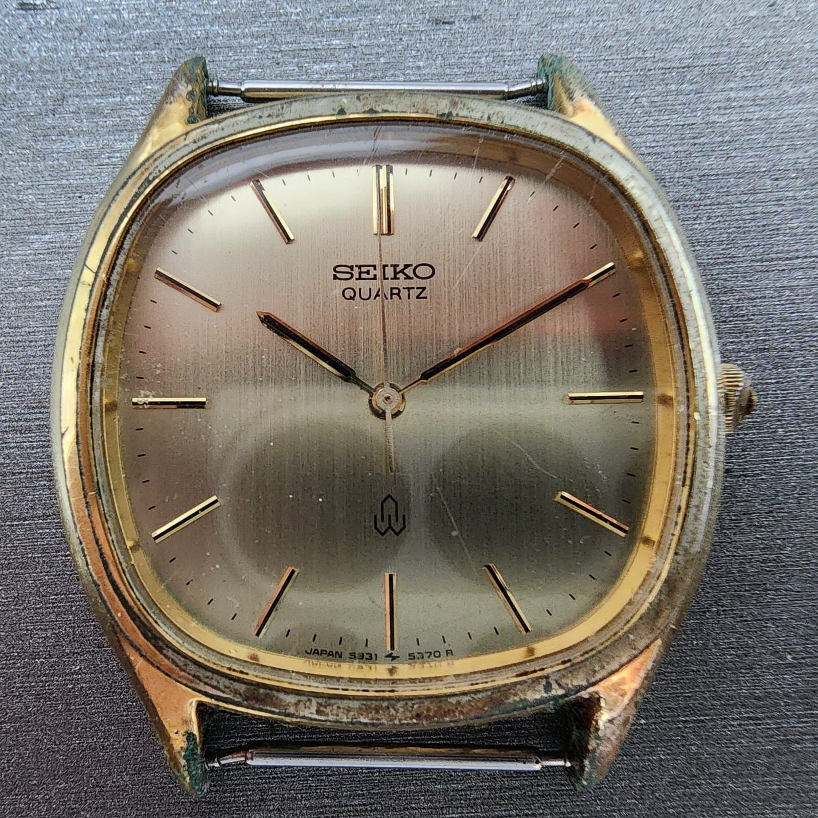 Seiko Watch Men 33mm Champagne Dial Gold Tone Rectangle 5931-5330 New Battery