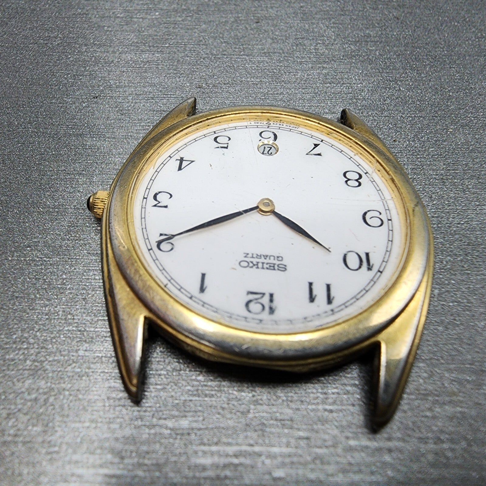 Seiko Watch Men 34mm White Dial Gold Tone Date Round 5E29-7A20 PARTS