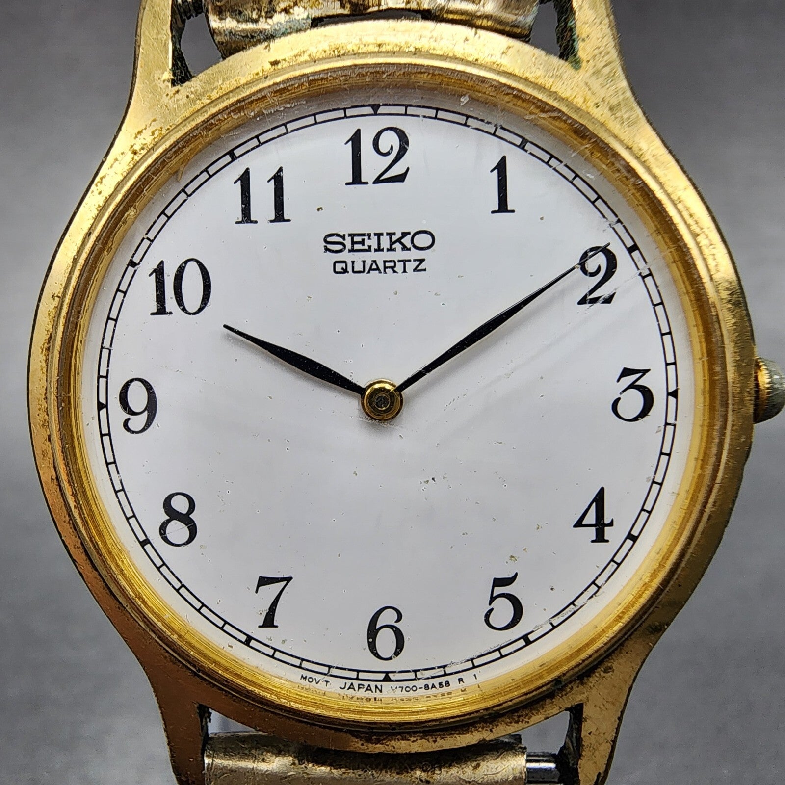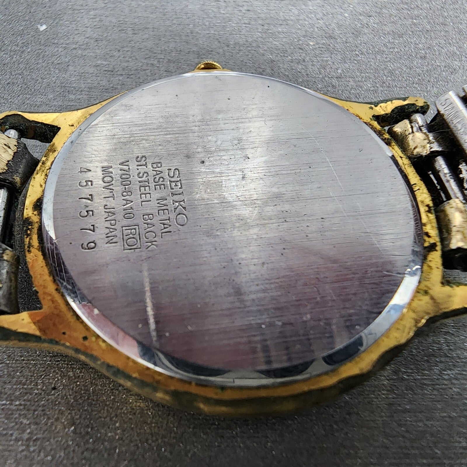 Seiko Watch Men 34mm White Dial Gold Tone Round V700-8a10 New Battery