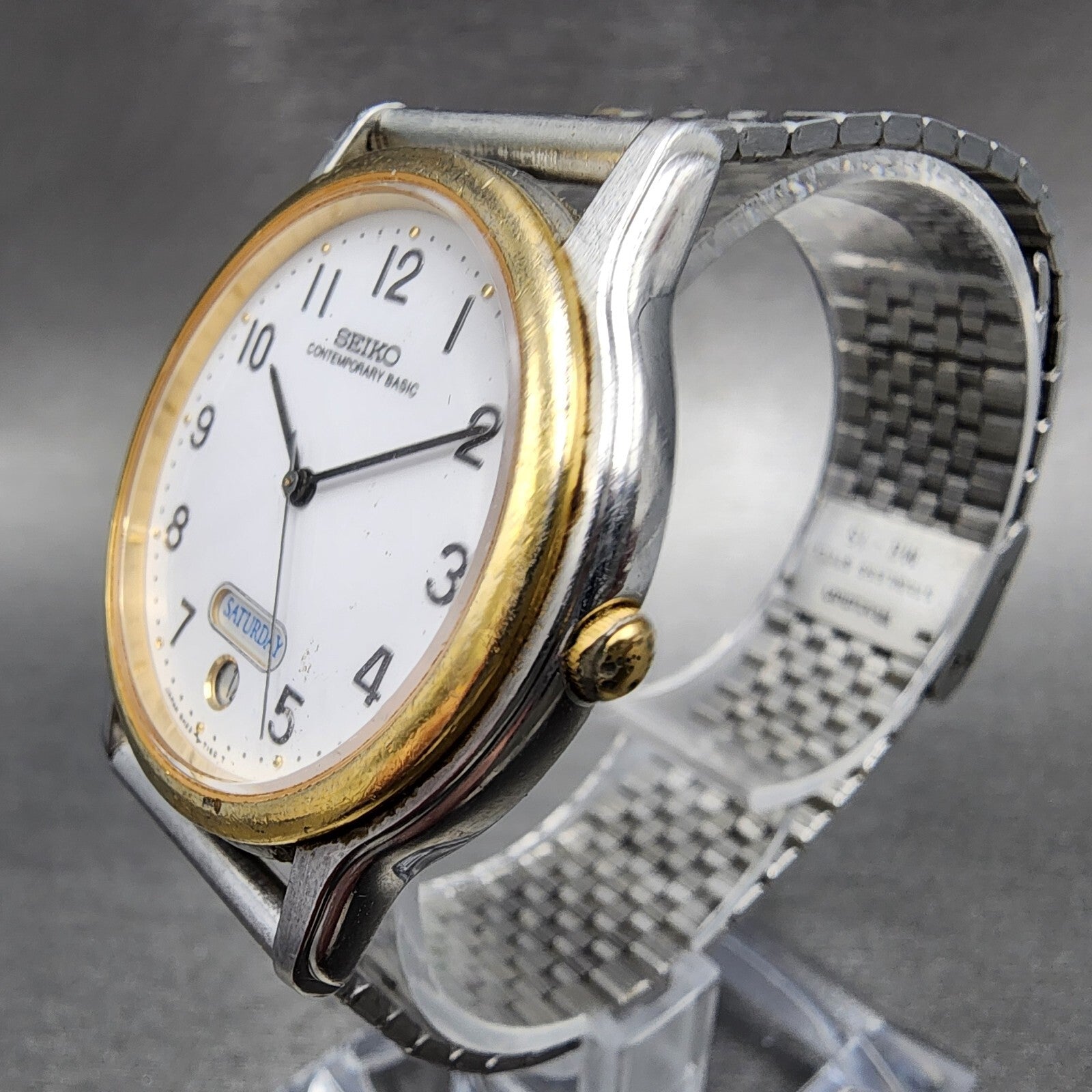 Seiko Watch Men 34mm White Dial Two Tone Daydate Round 5h23-7090 New Battery