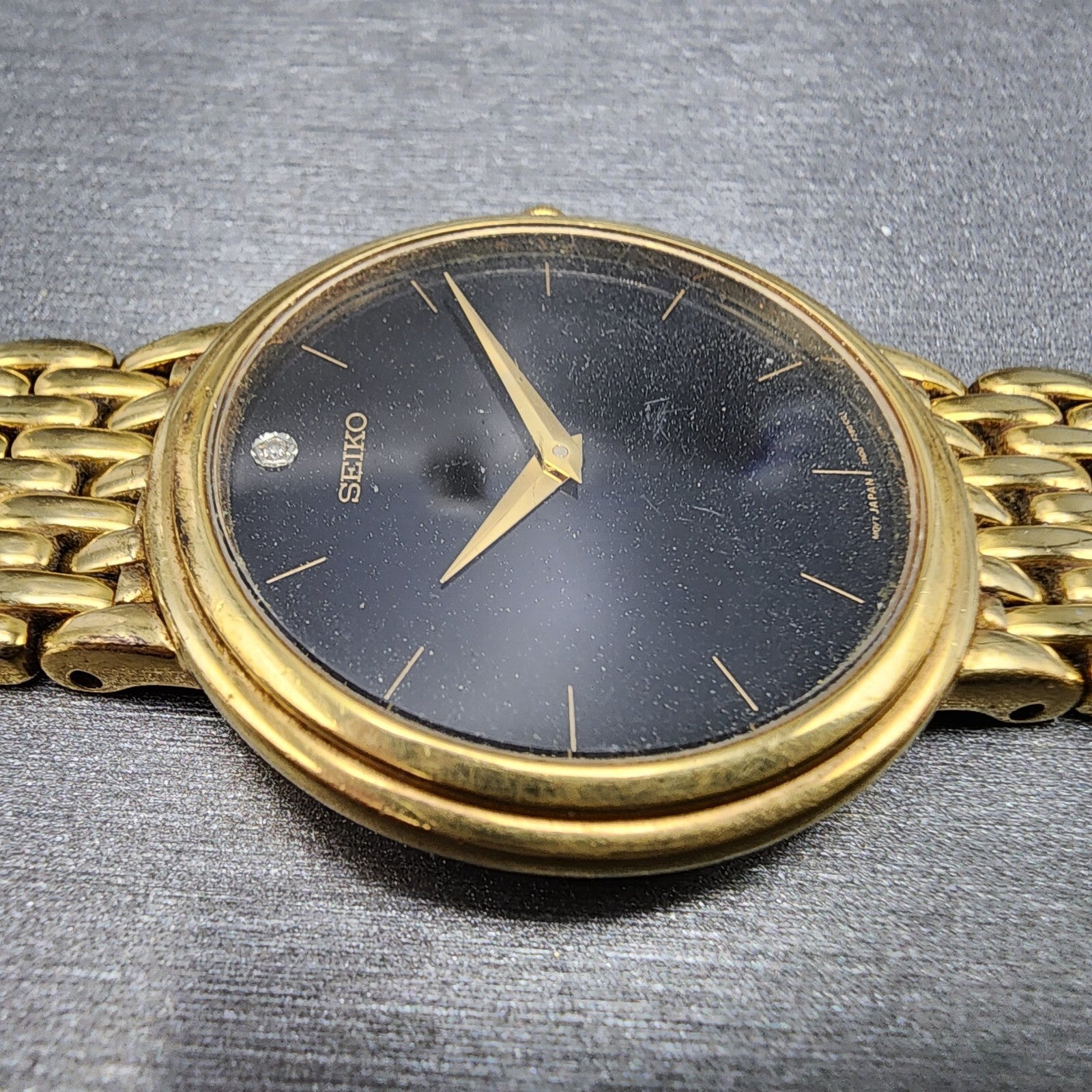 Seiko Watch Men 35mm Black Dial Gold Tone Round 7N00-F169 PARTS