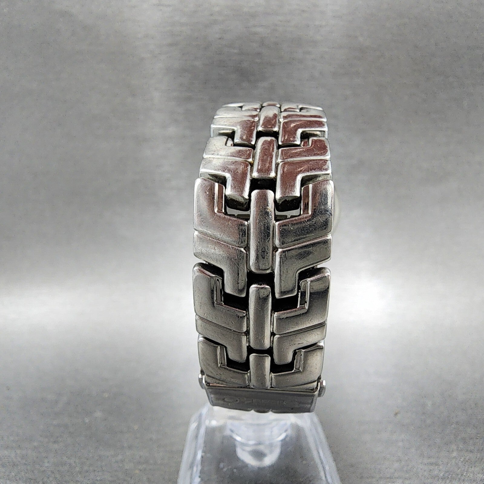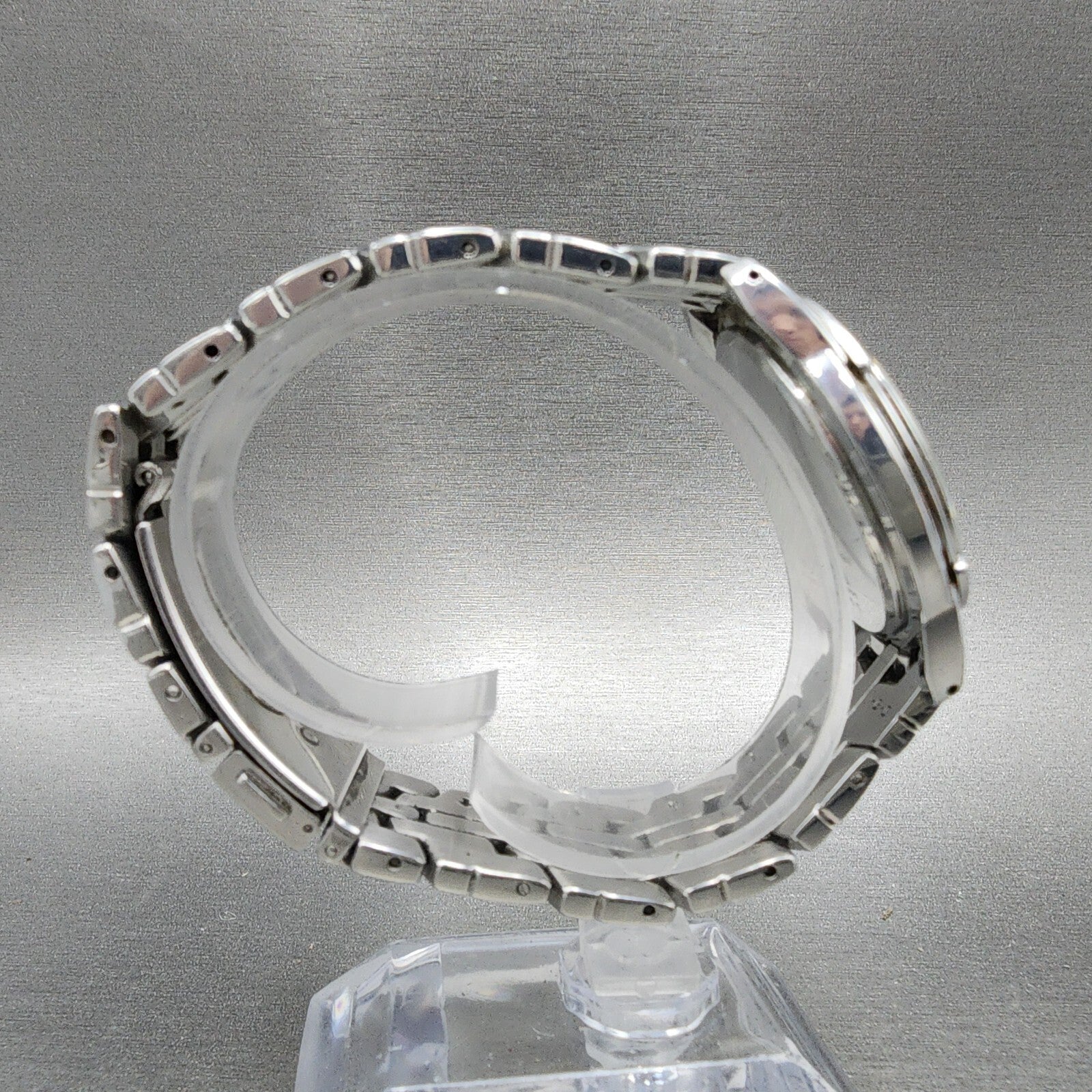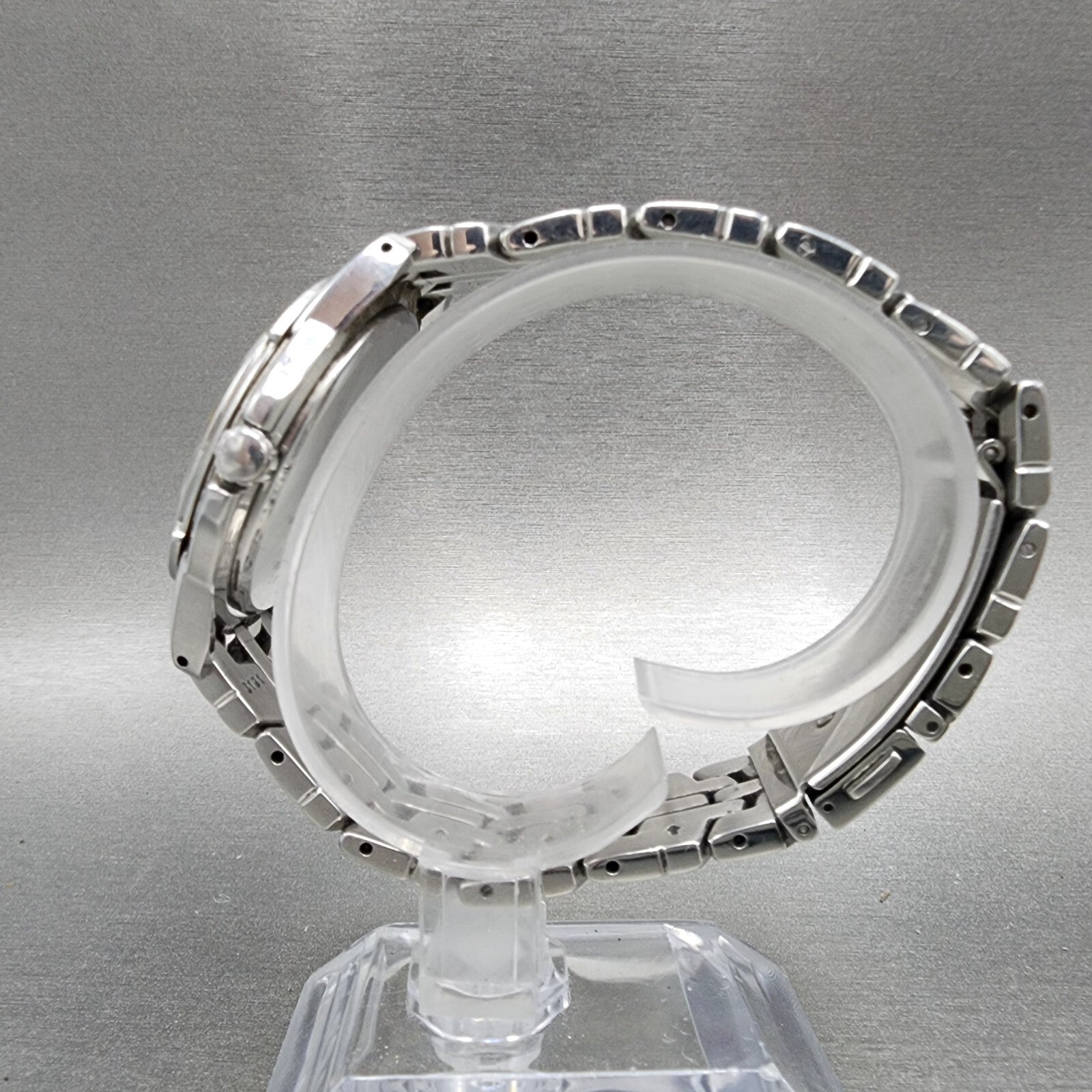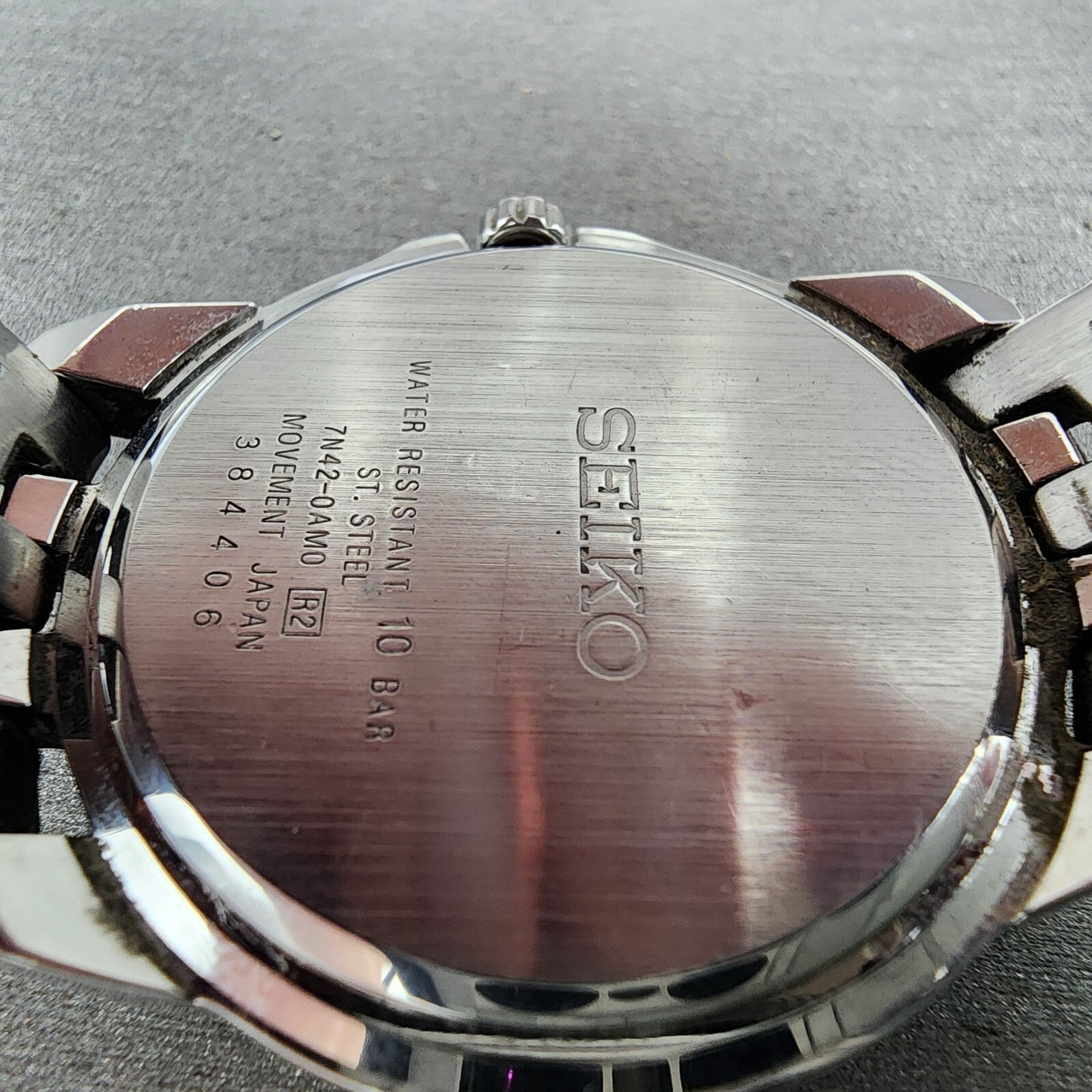 There is dial damage and is missing movement ring. This watch has been used but is in good working condition. There is scratches on the watch. please refer to pictures.