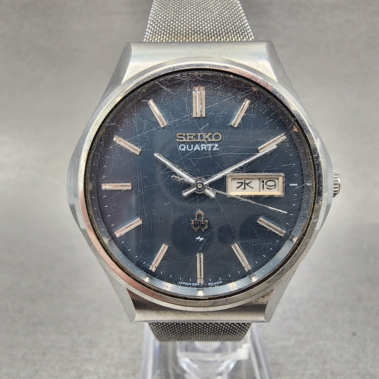 Seiko Watch Men 36mm Blue Dial Silver Tone Daydate 0843-8041 New Battery