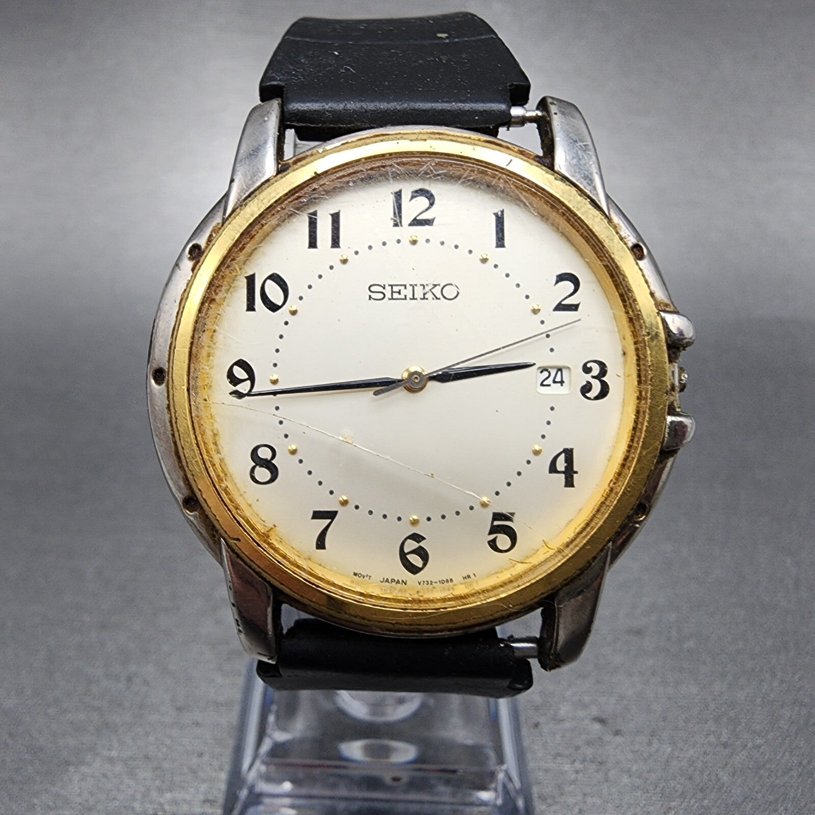 Seiko Watch Men 36mm Champagne Dial Two Tone Date Round V732-0P79 PARTS