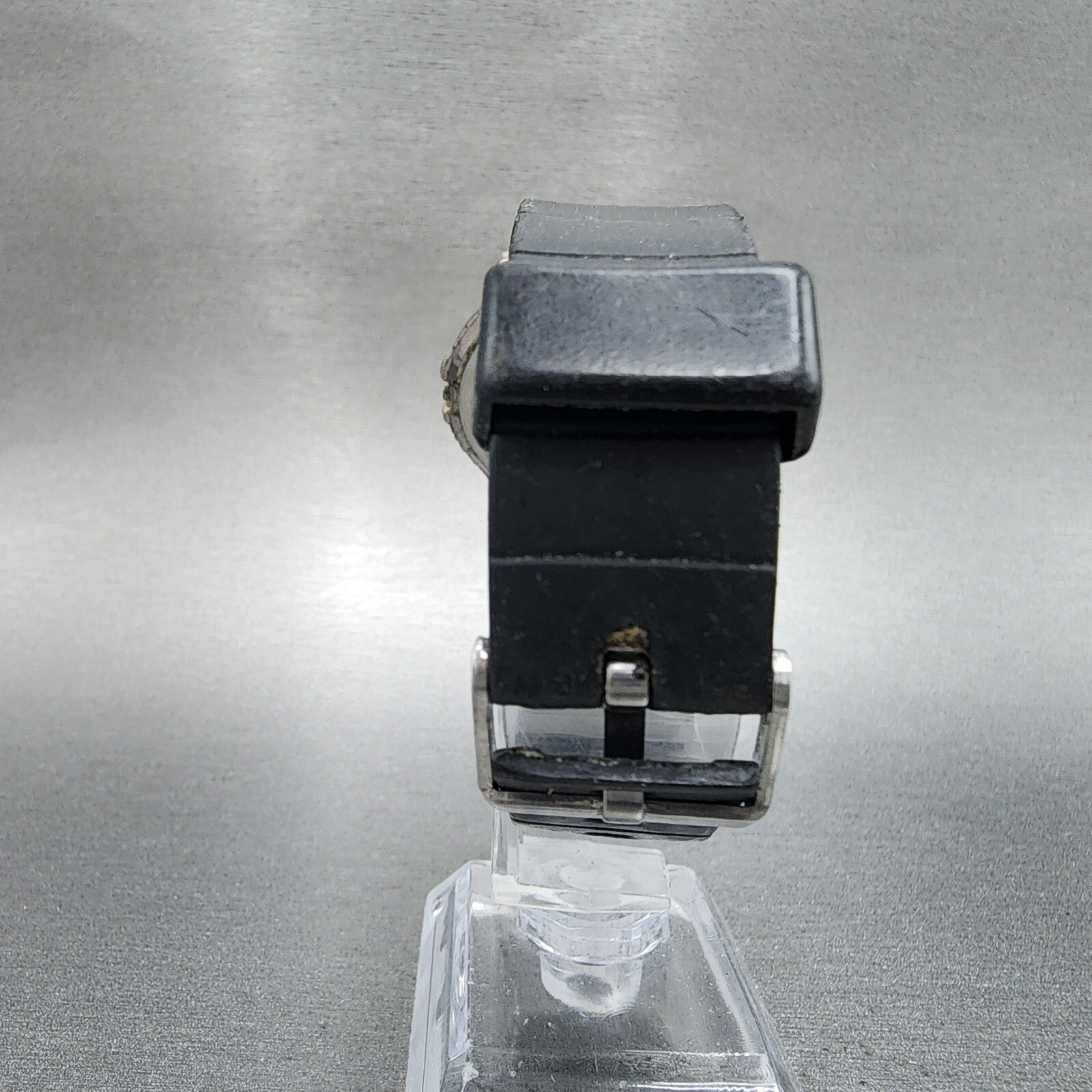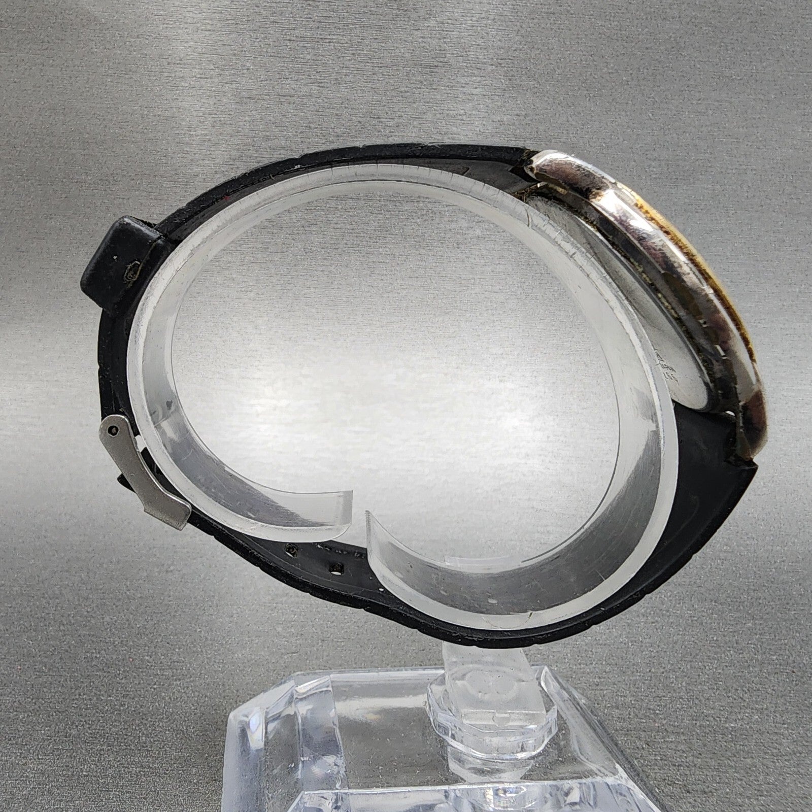 This item has been used and has scratchers on the case and crystal. The watch does not work and will need to be repaired. A NEW BATTERY WILL NOT FIX IT. DOES NOT HAVE A CROWN AND THE STEM IS BROKEN.