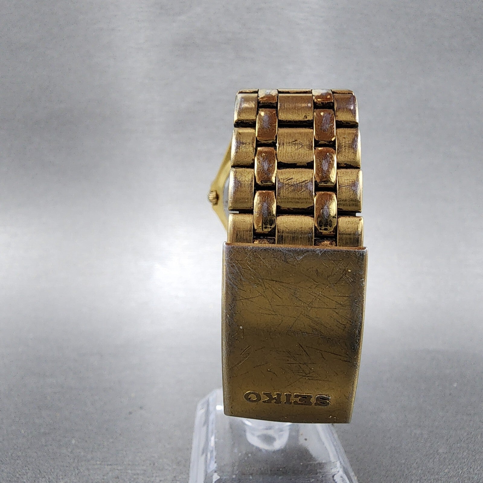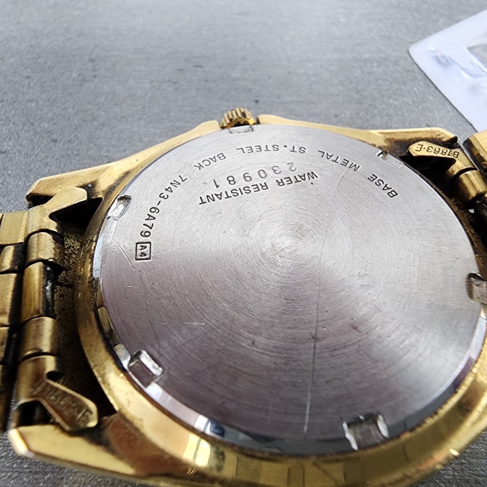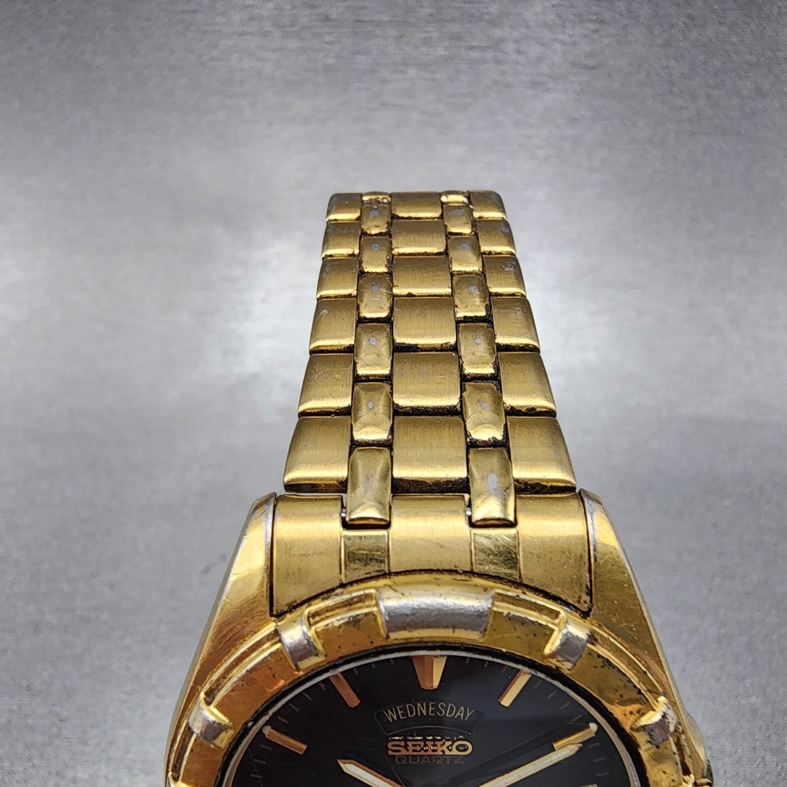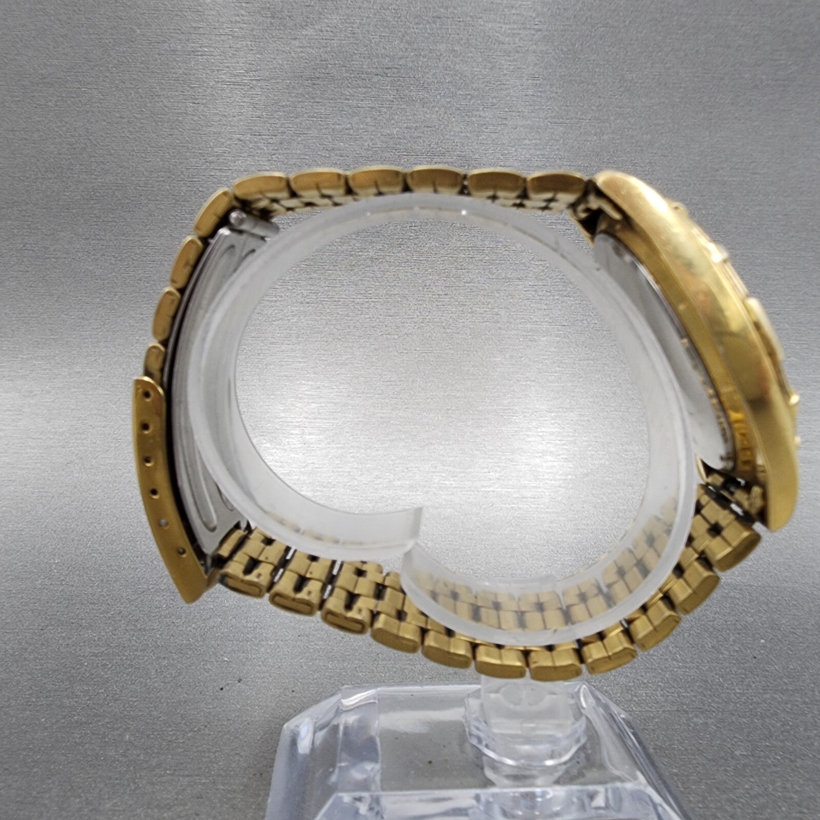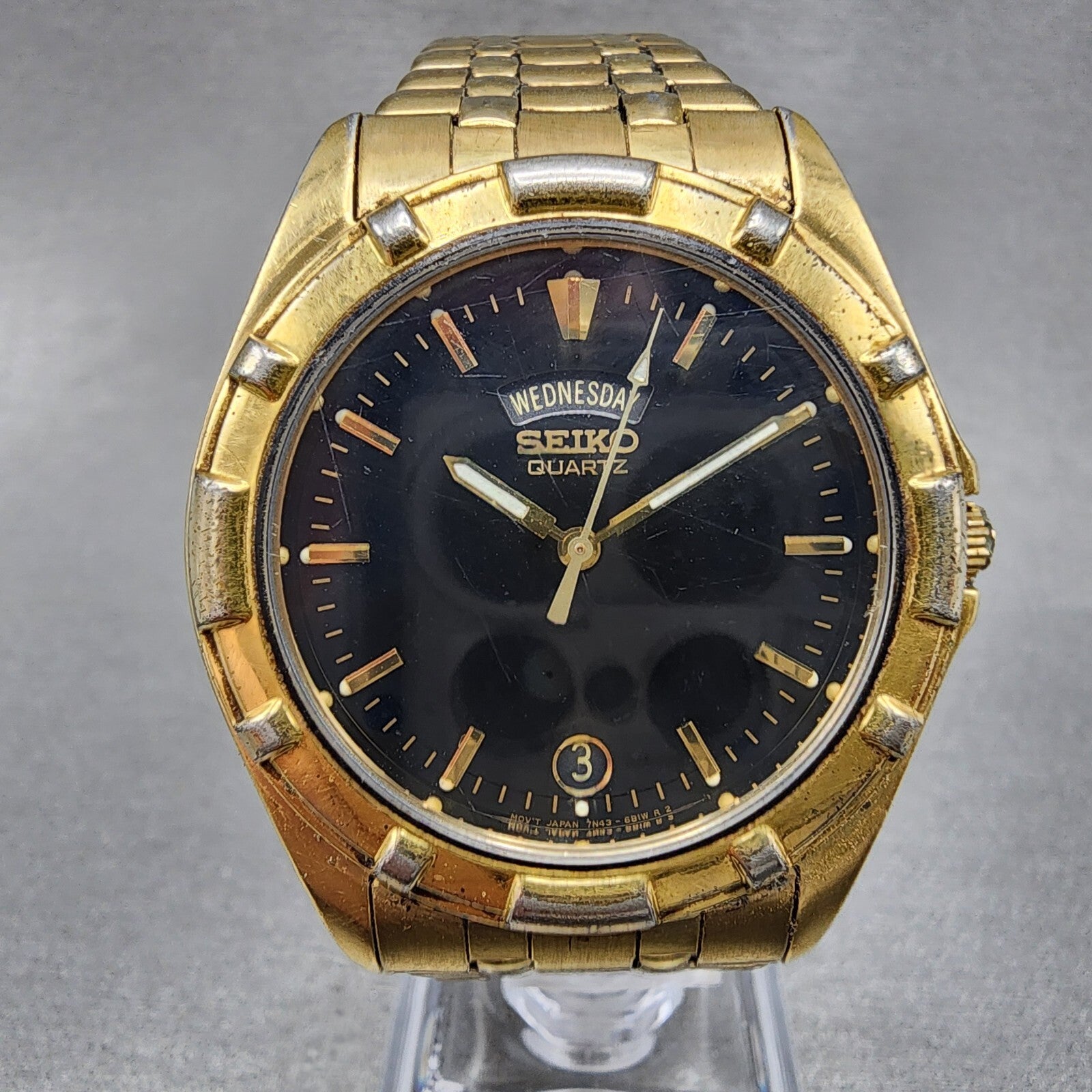 Seiko Watch Men 37mm Black Dial Gold Tone Daydate 7n43-6a79 New Battery