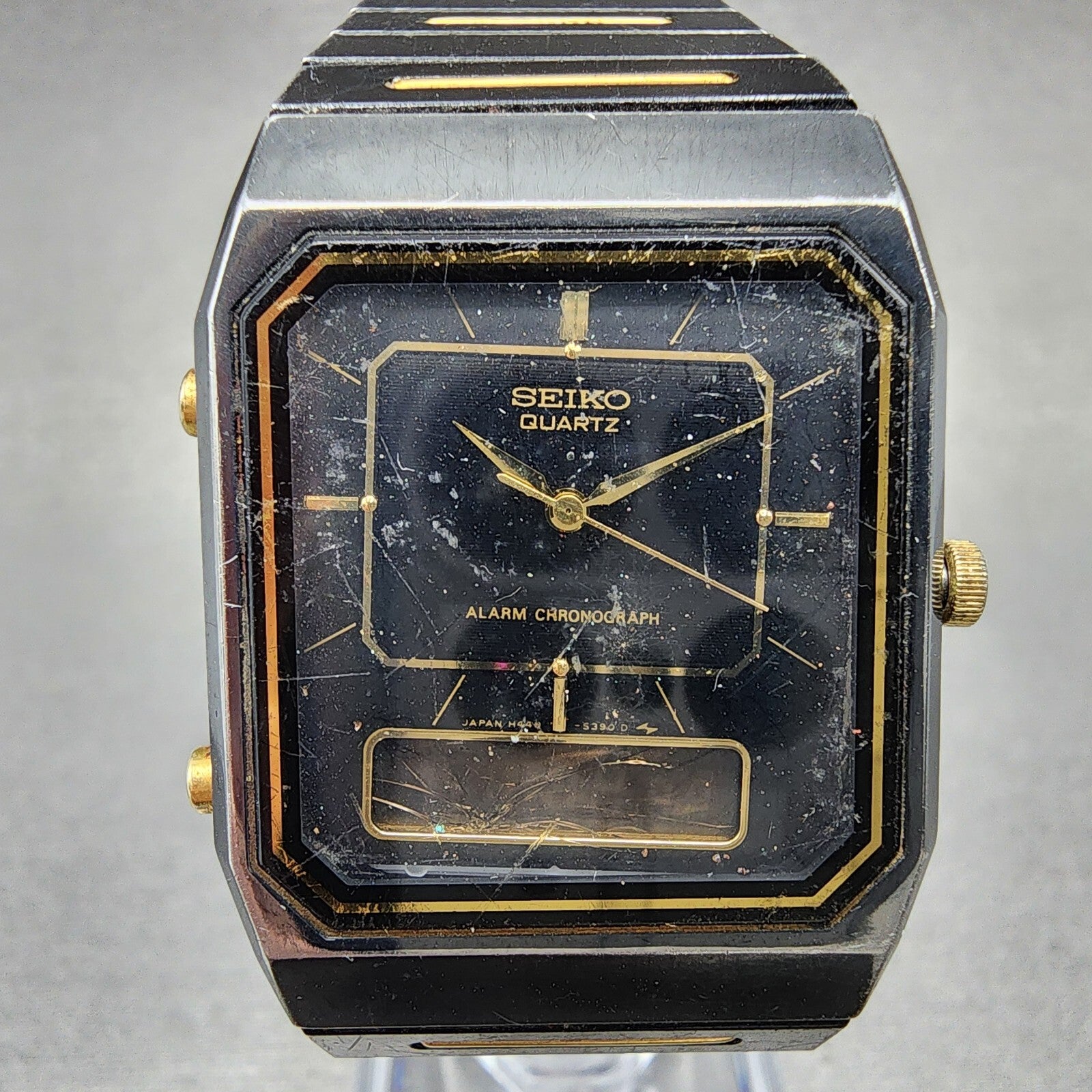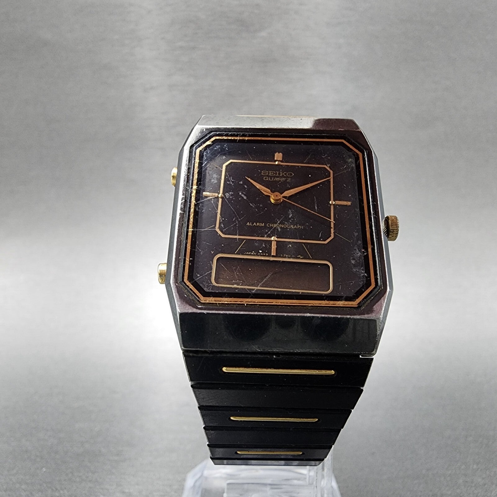 Seiko Watch Men Black Gold Tone Analog Digital Alarm Chrono 28mm H449-5310 PARTS