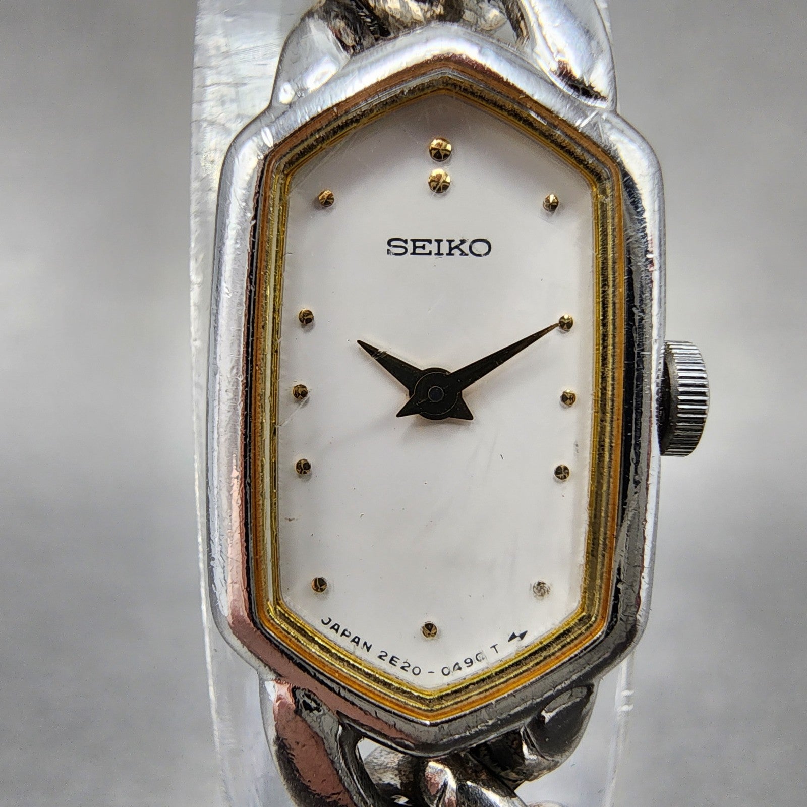 Seiko Watch Women 13mm White Dial Silver Tone 2e20-5360 New Battery