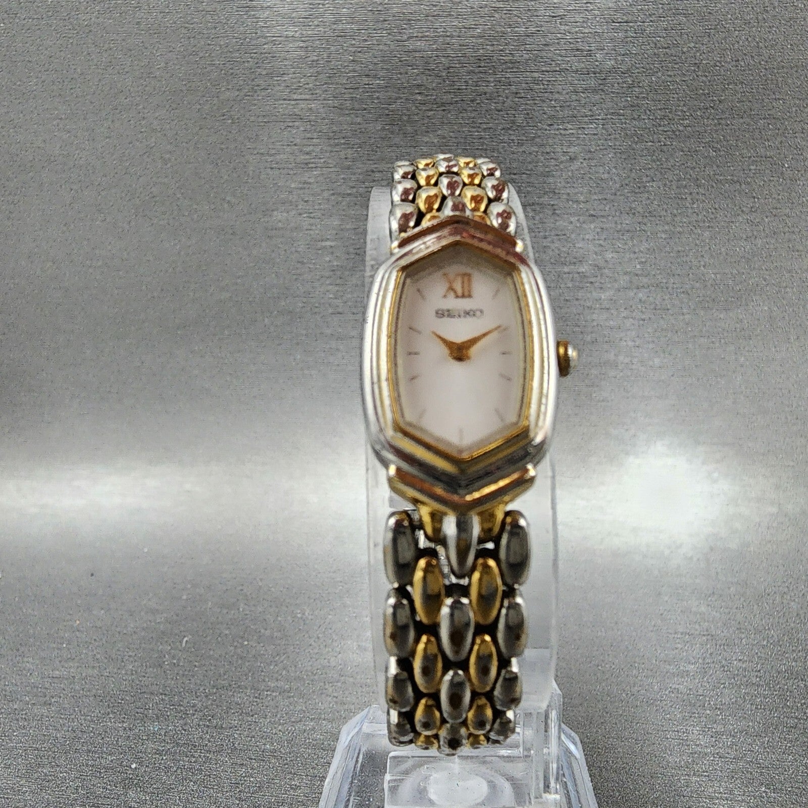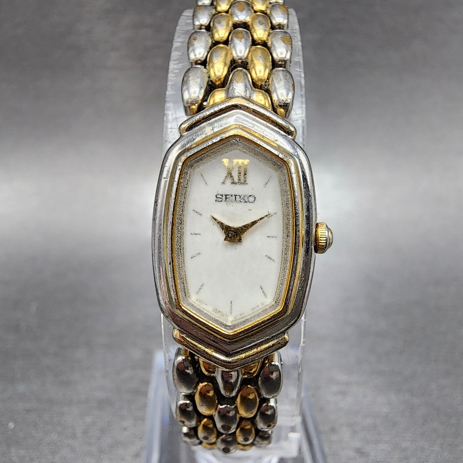 Seiko Watch Women 15mm White Dial Two Tone Y150-5m80 Hexagon New Battery