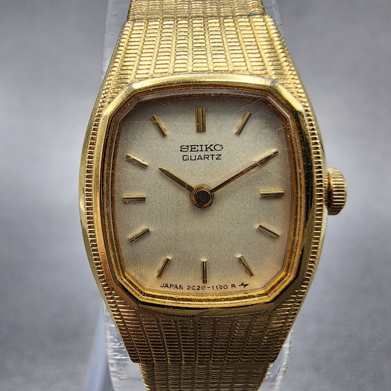 Seiko Watch Women 16mm Champagne Dial Gold Tone 2c20-5569 New Battery