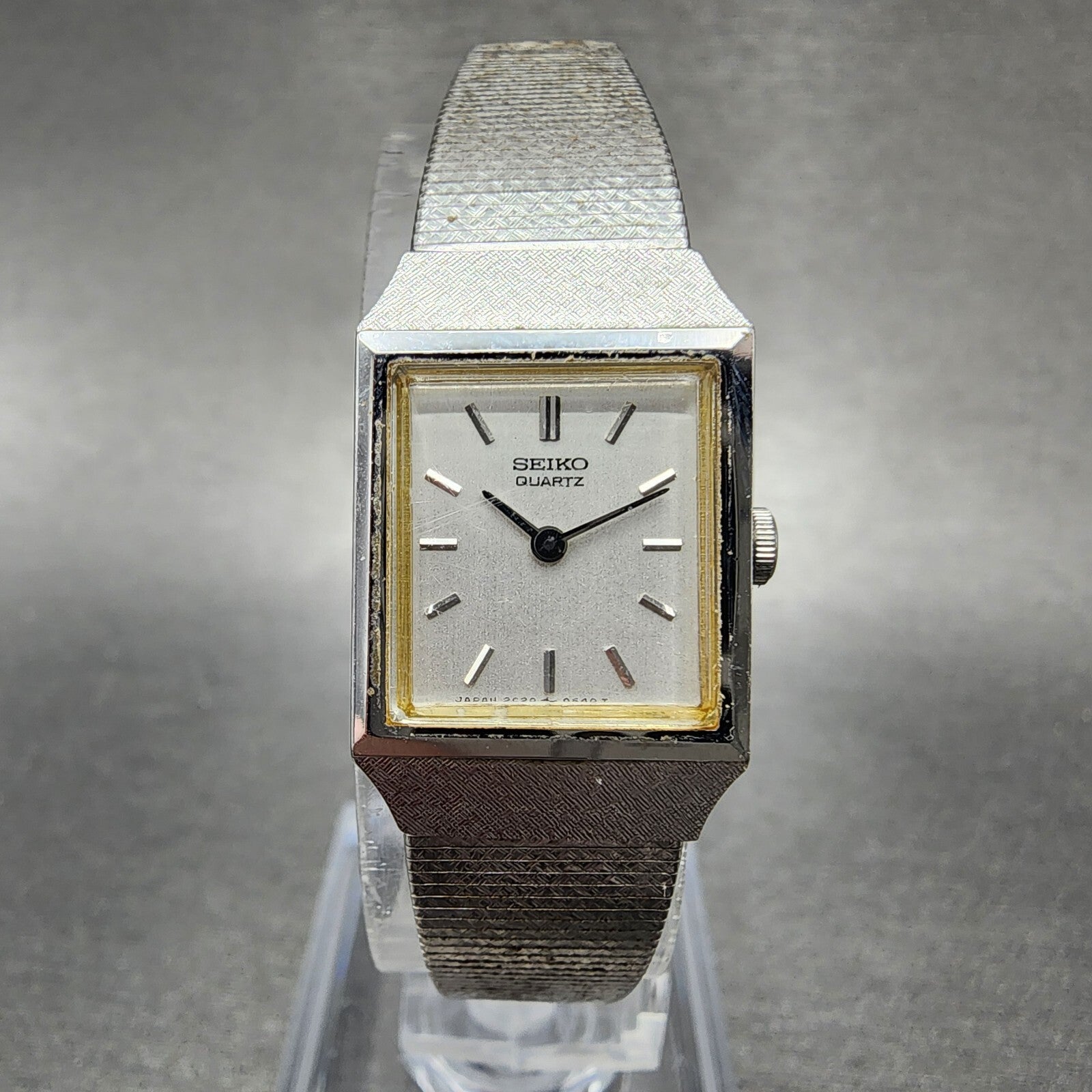 Seiko Watch Women 16mm Silver Dial Silver Tone Rectangle 2C20-5299 New Battery