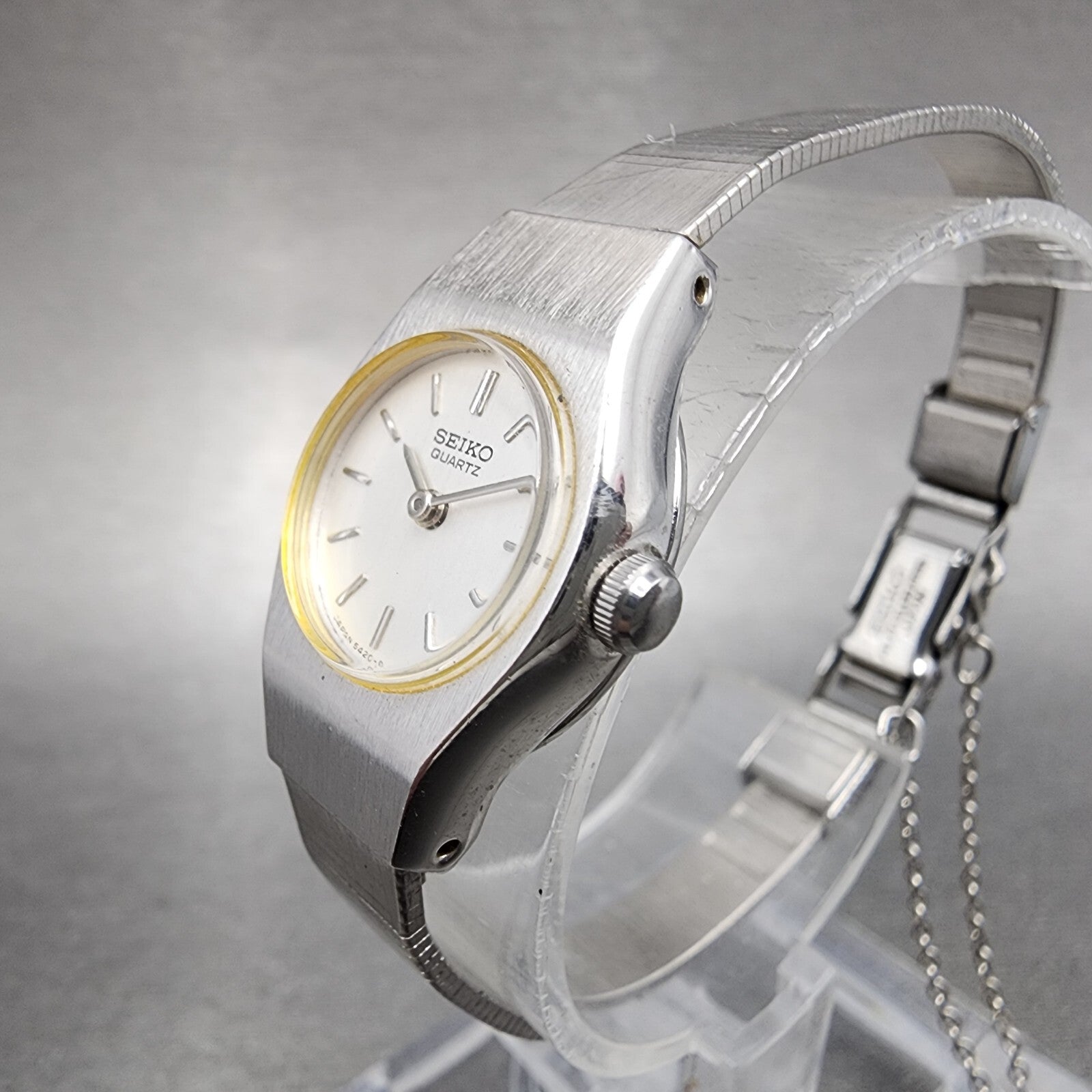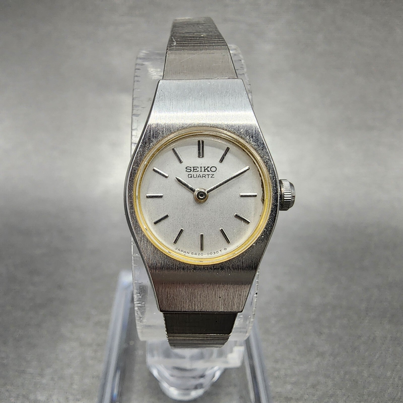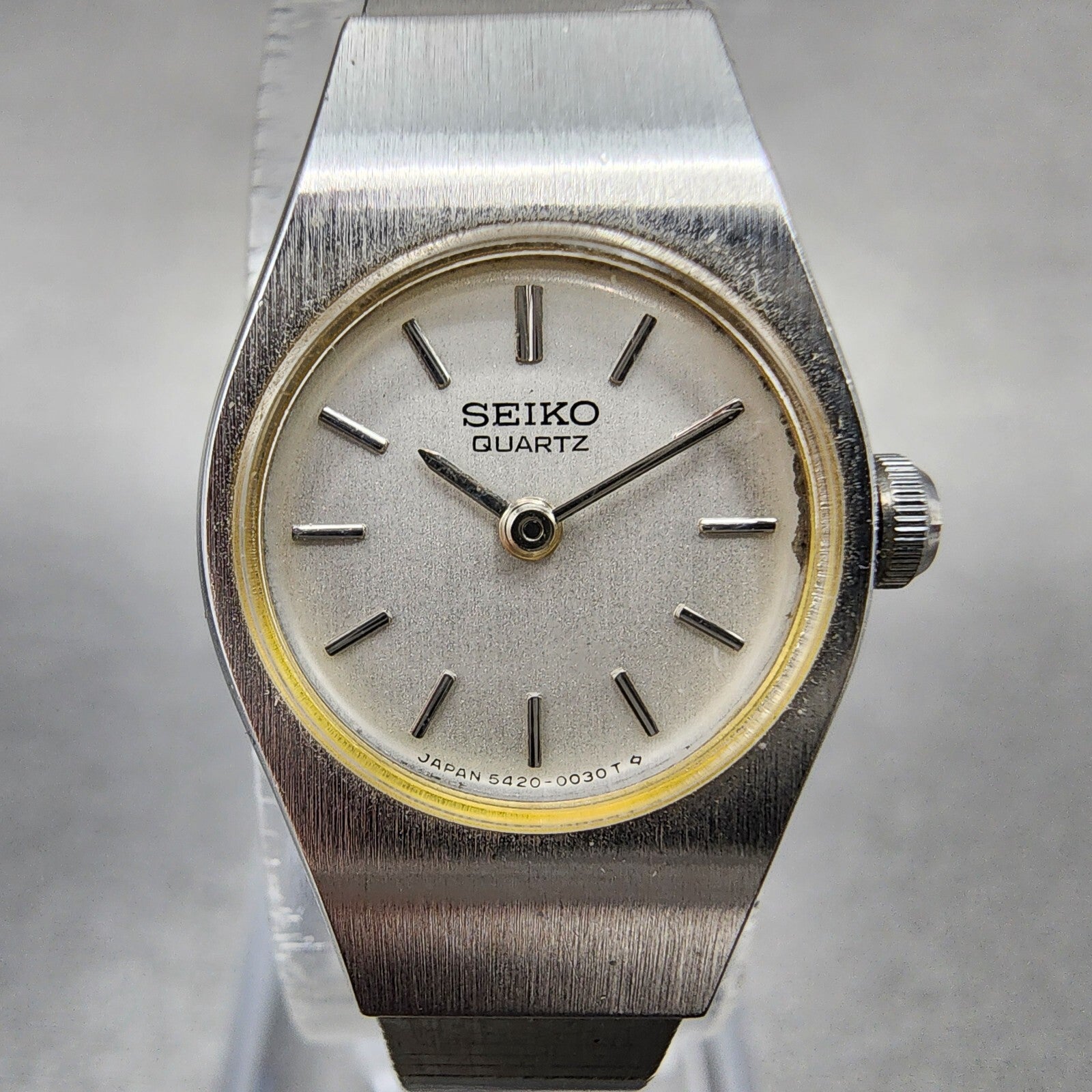 Seiko Watch Women 16mm White Dial Silver Tone Round 5420-0029 New Battery VTG