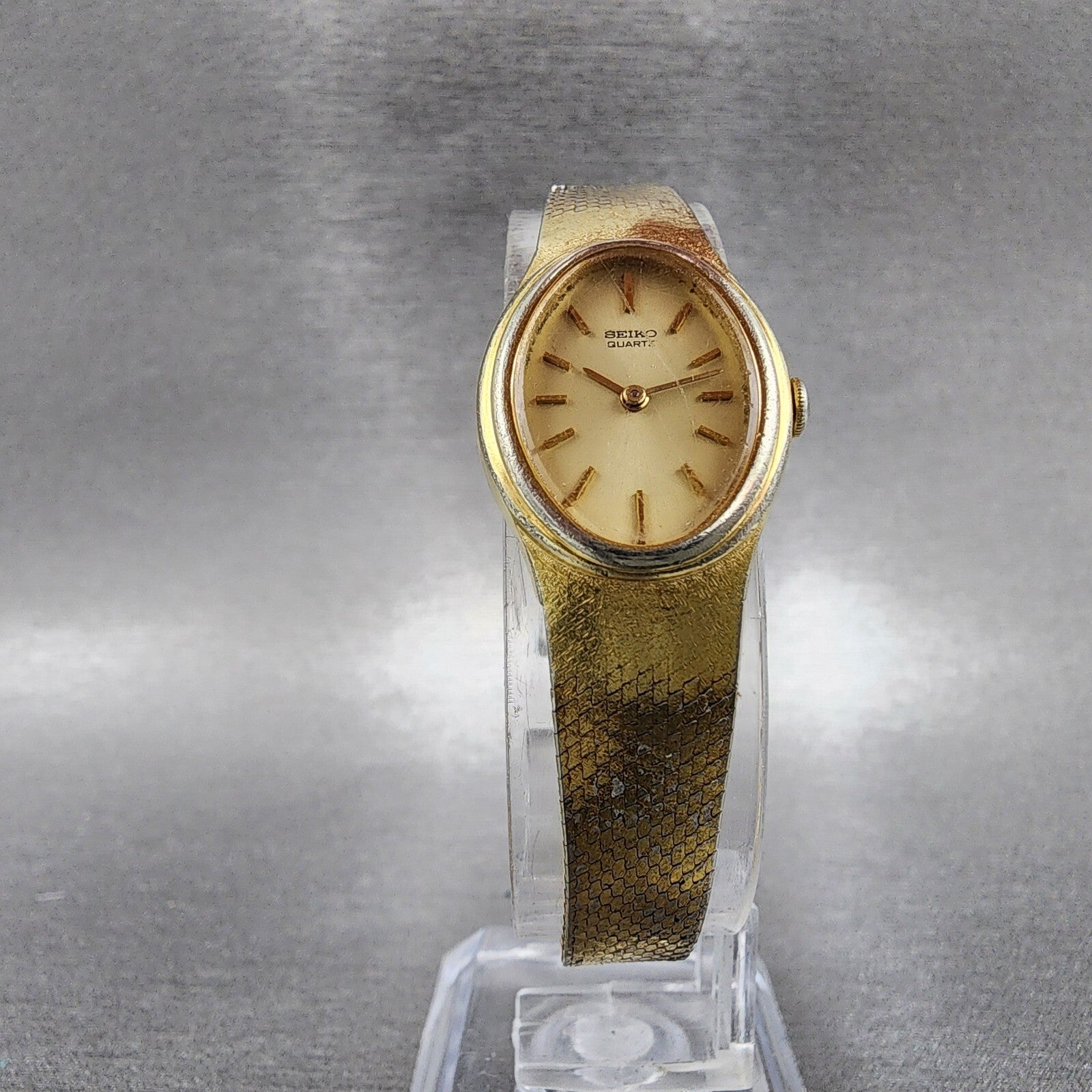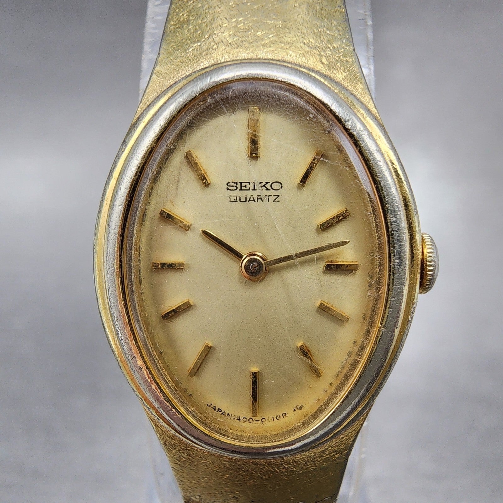 Seiko Watch Women 17mm Champagne Dial Gold Tone Oval 1400-5089 New Battery