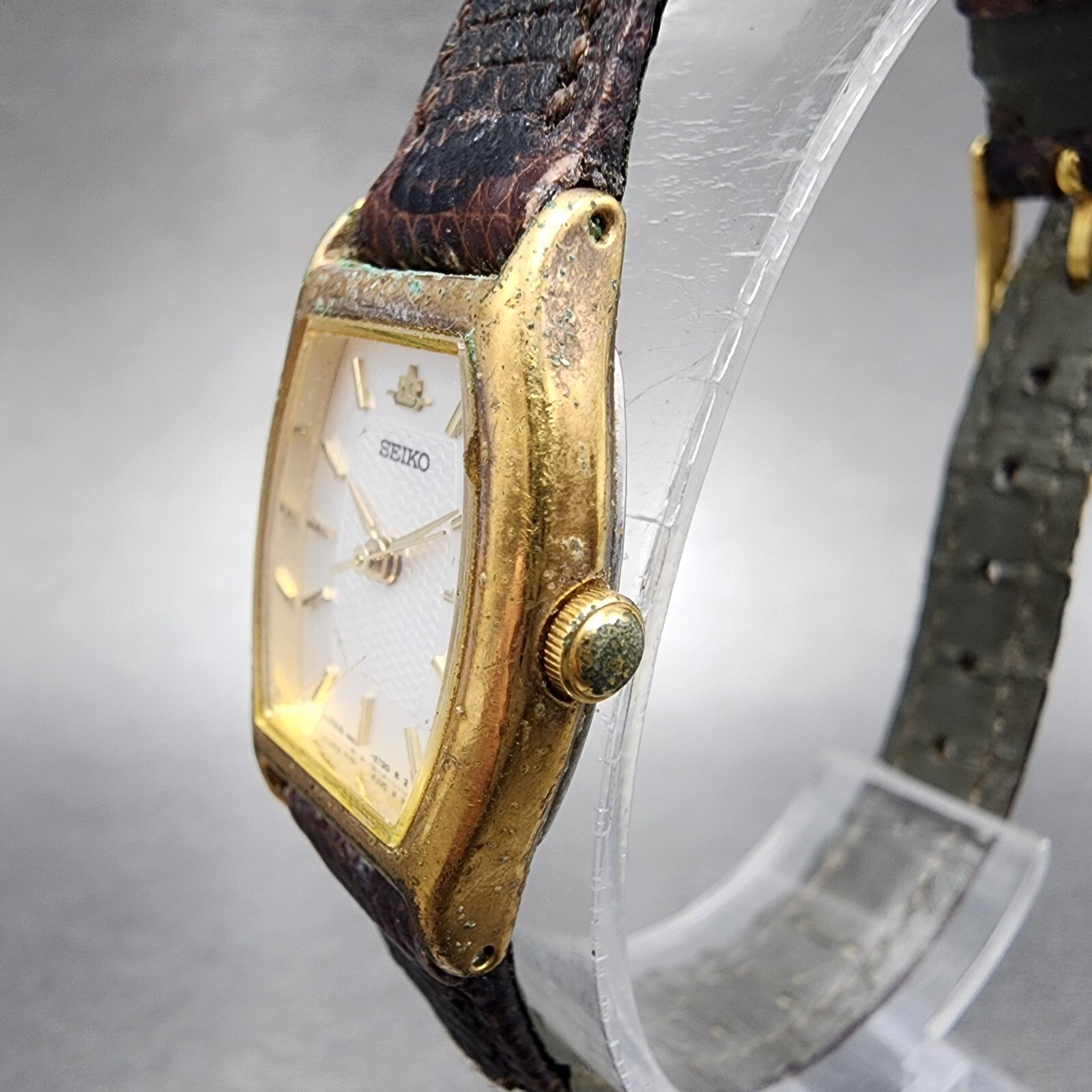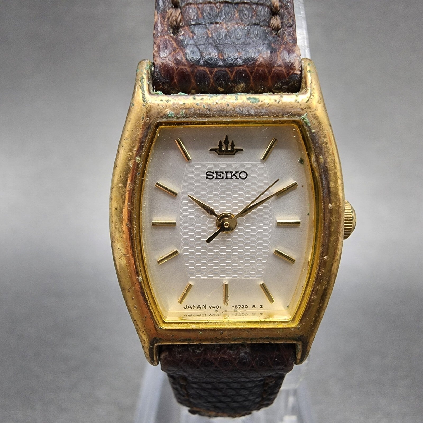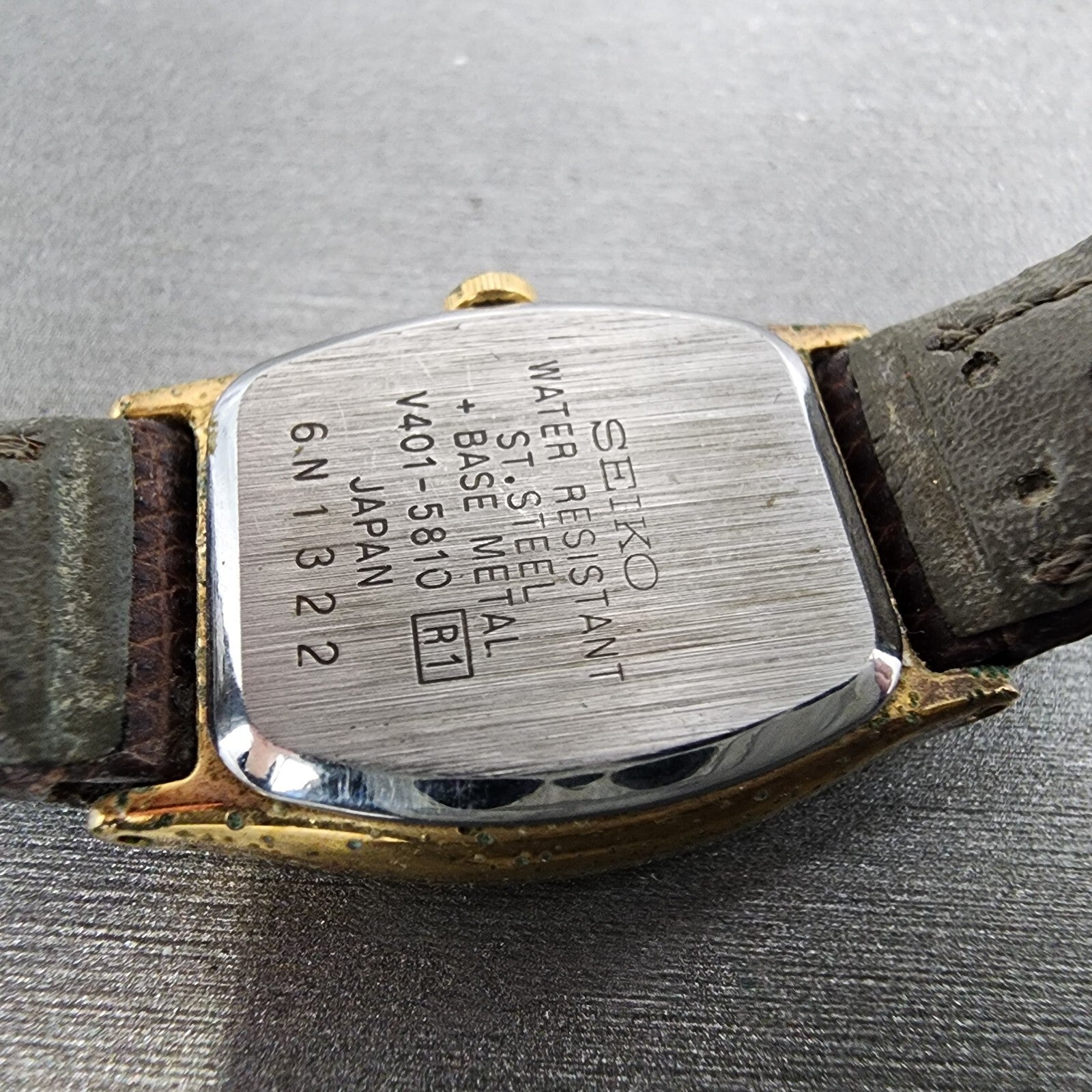 Seiko Watch Women 19mm White Dial Gold Tone Rectangle V401-5810 New Battery