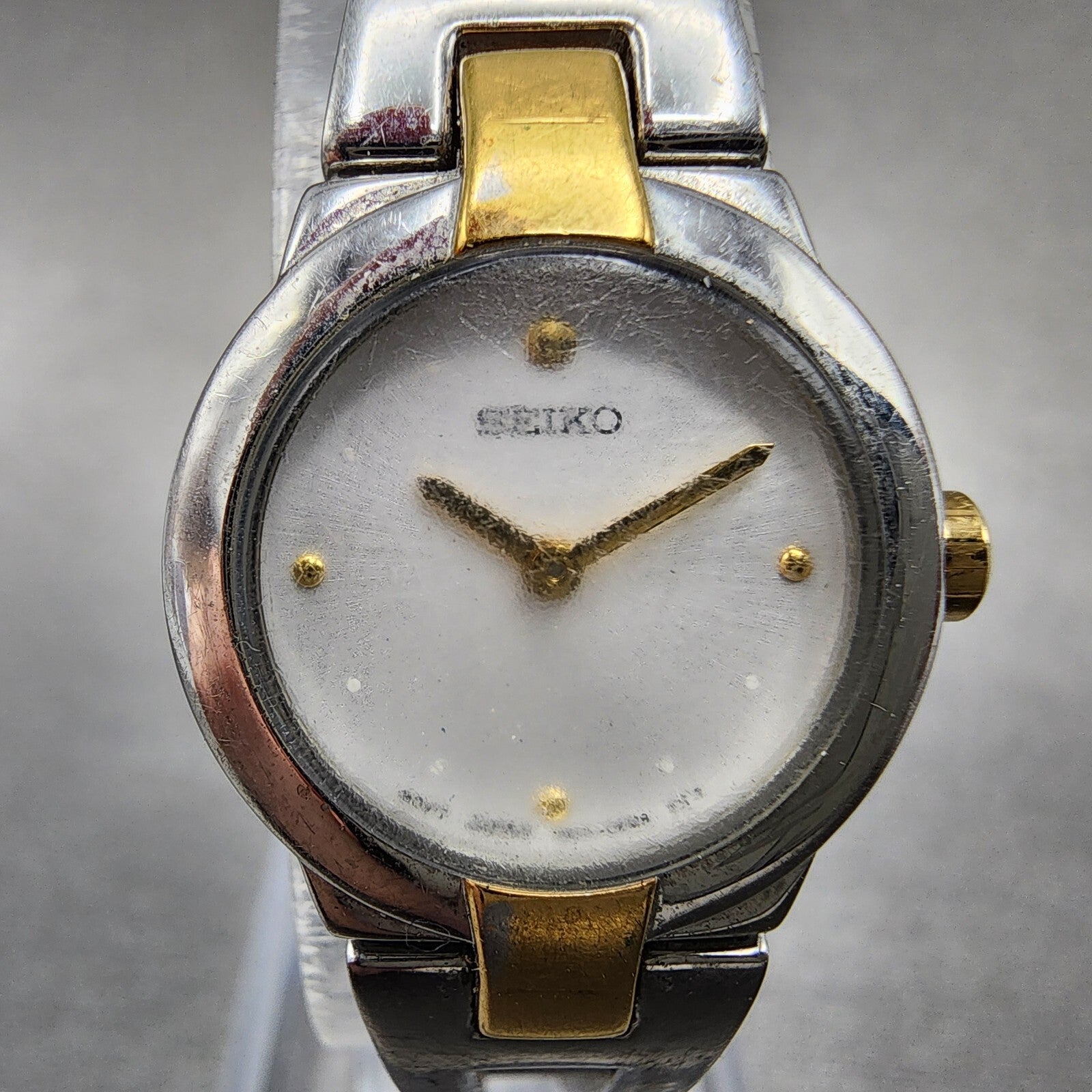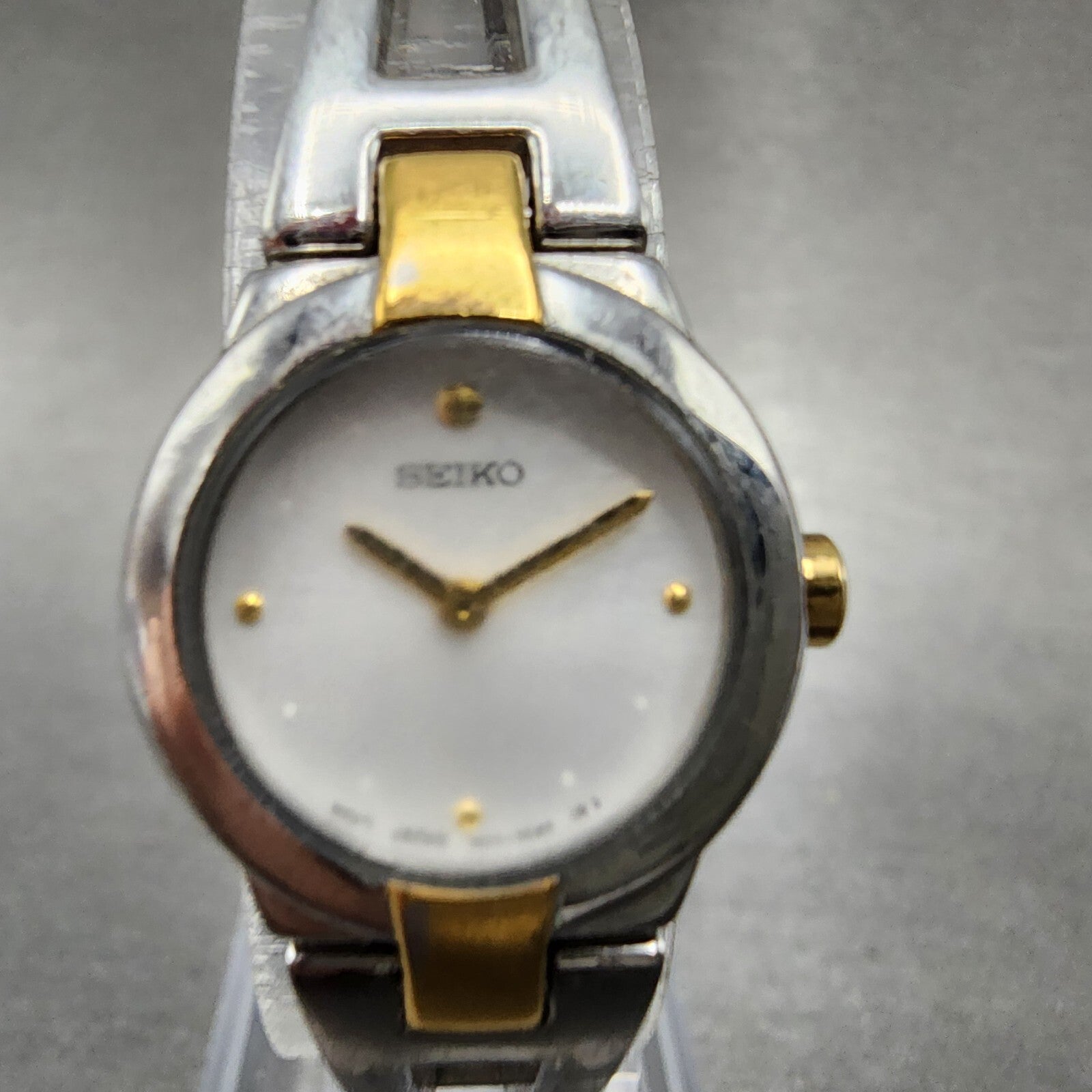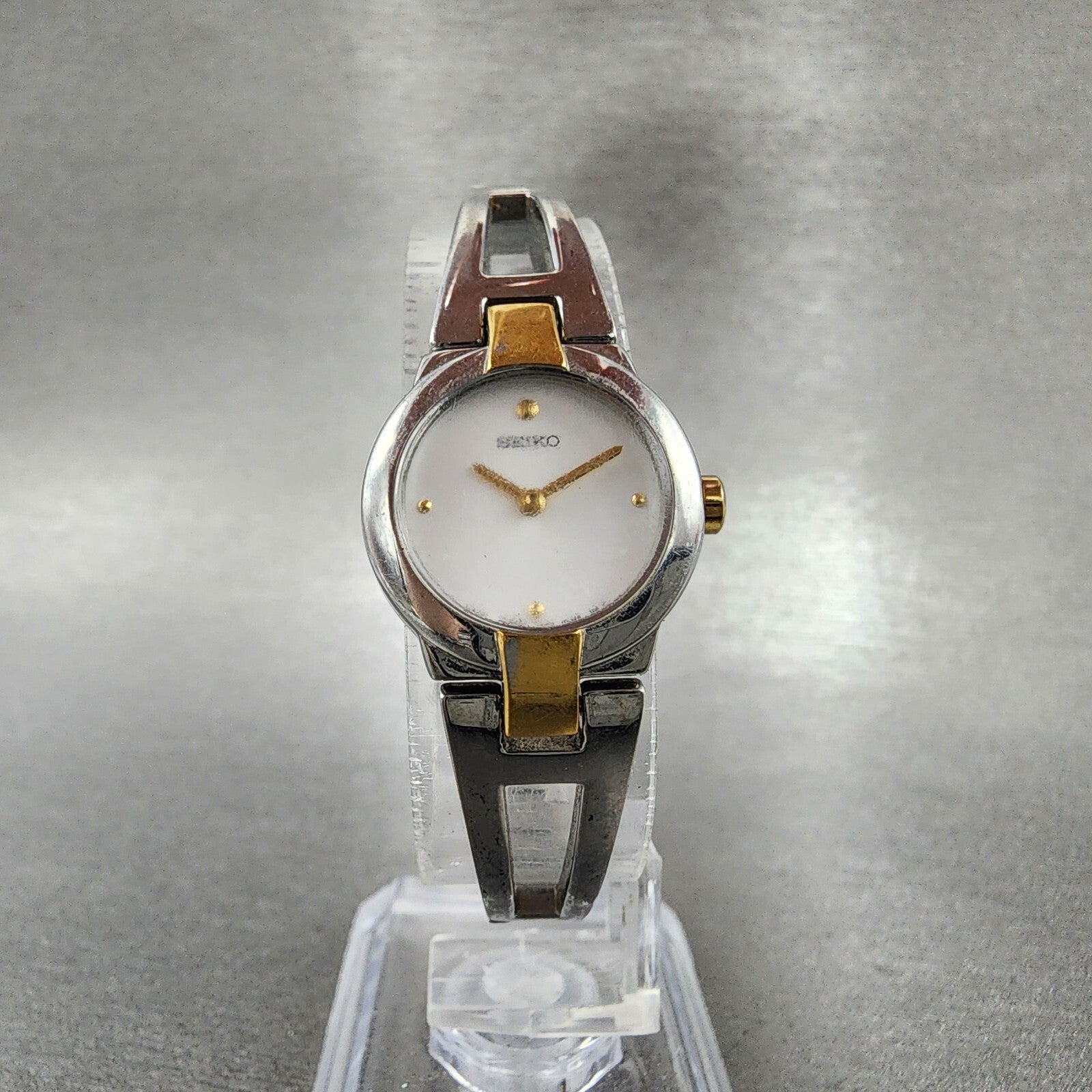 Seiko Watch Women 19mm White Dial Two Tone Round 1n00-0gm0 New Battery