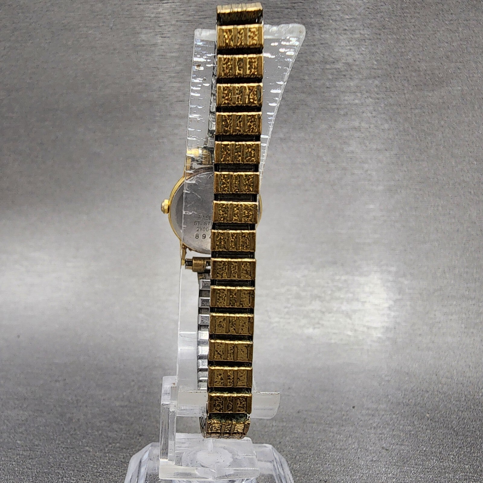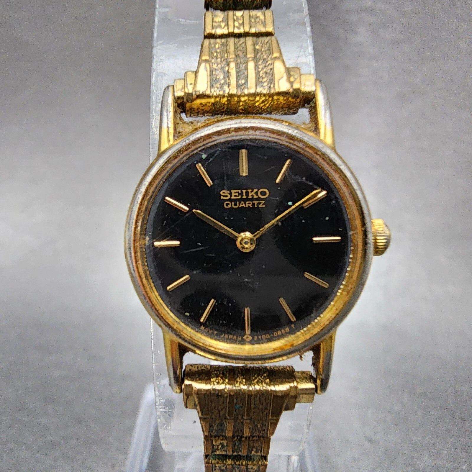 Seiko Watch Women 20mm Black Dial Gold Tone Round 2y00-0A19 New Battery Vintage