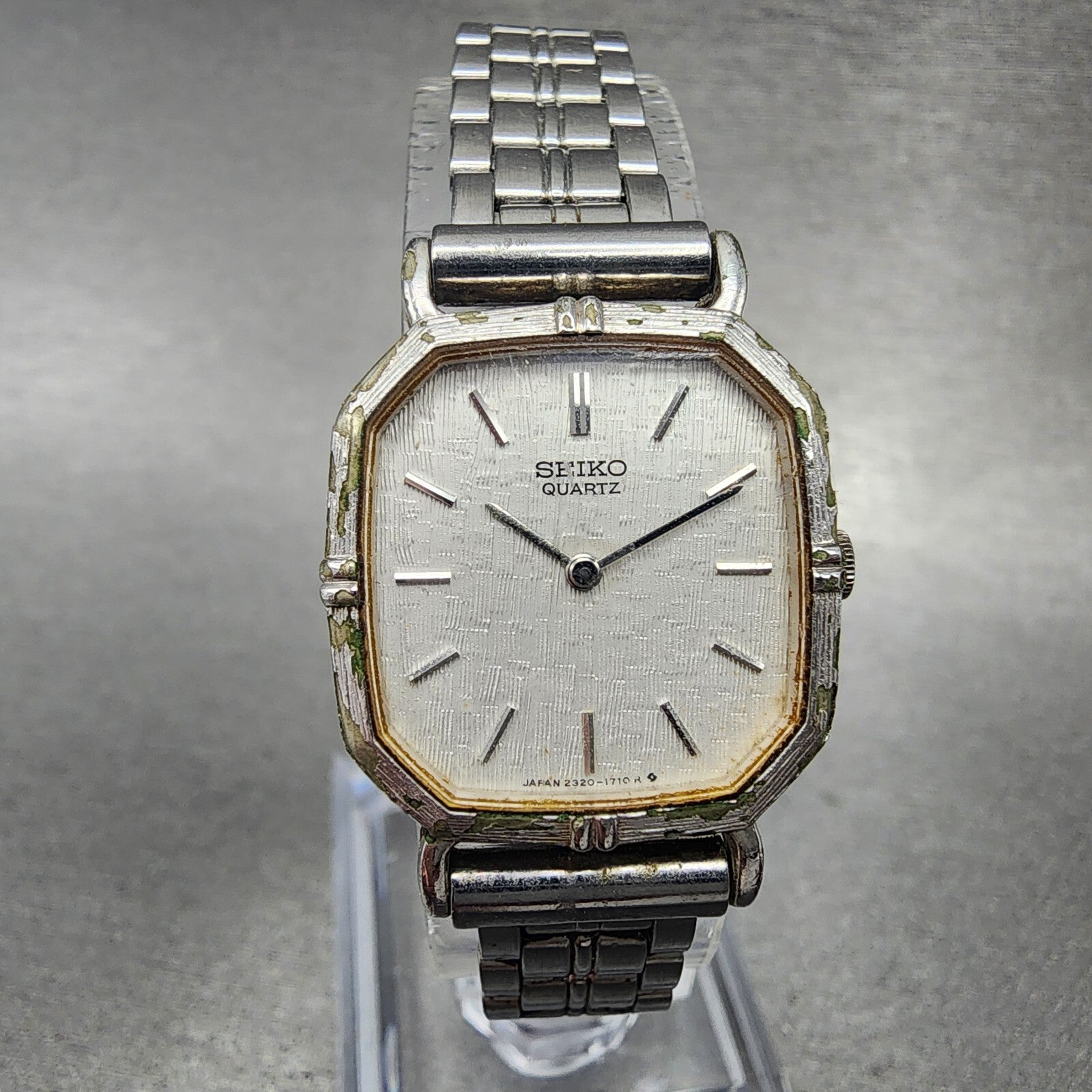 Seiko Watch Women 21mm Silver Dial Silver Tone Rectangle 2320-5920 New Battery