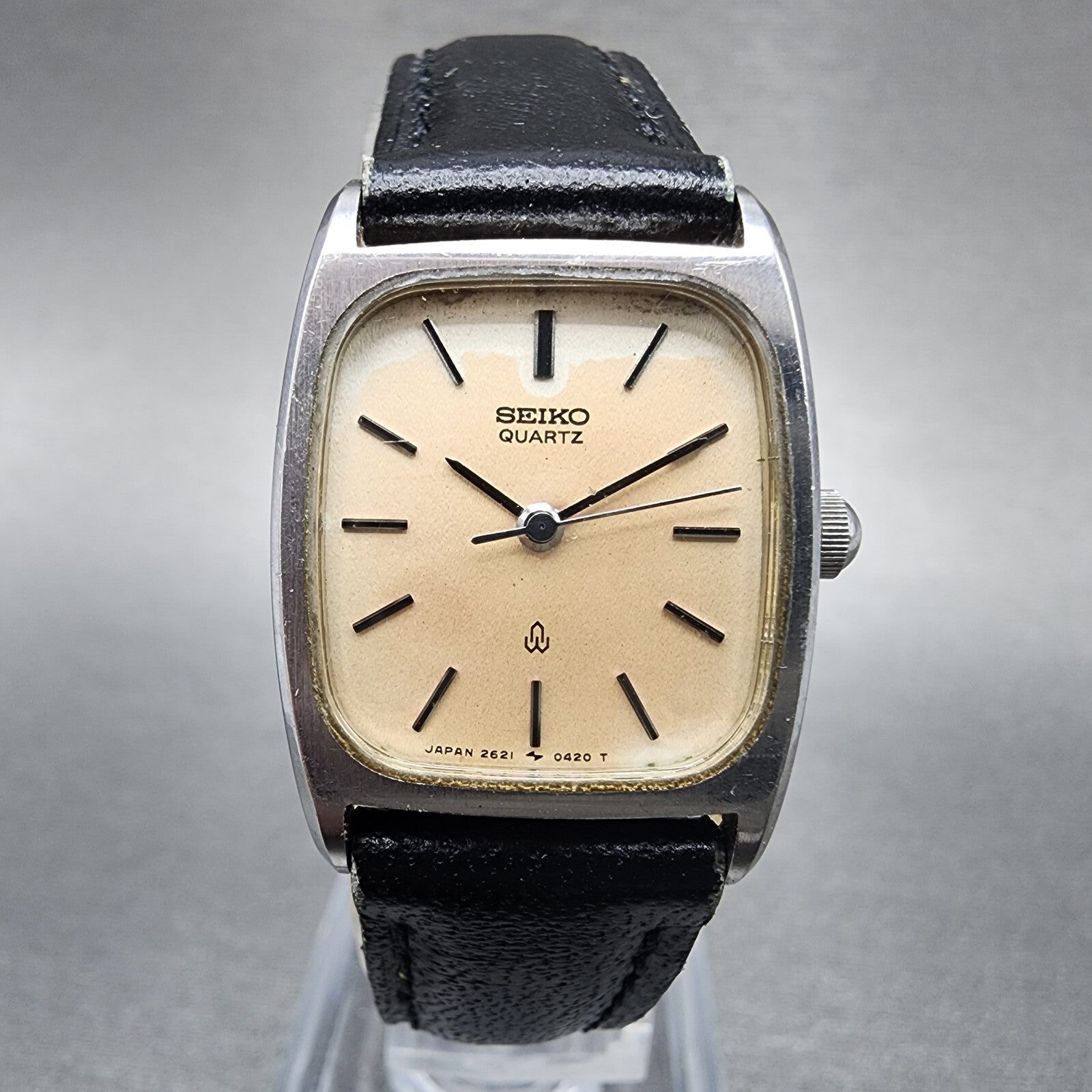 Seiko Watch Women 21mm White Dial Silver Tone Rectangle 2621-5220 New Battery