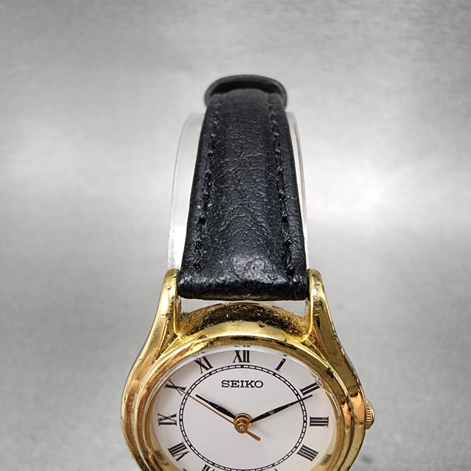 Seiko Watch Women 24mm White Dial Gold Tone Round 1N01-0K00 New Battery