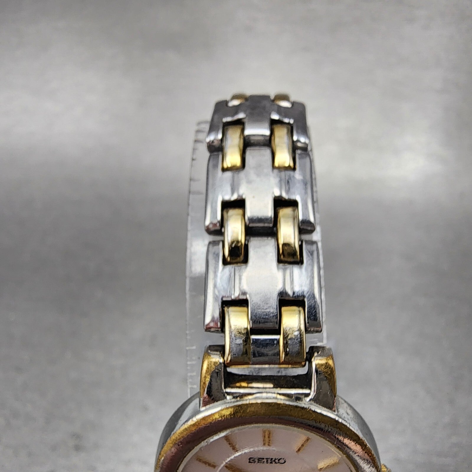 Seiko Watch Women 24mm White Dial Two Tone Round 1N00-1E19 New Battery A123