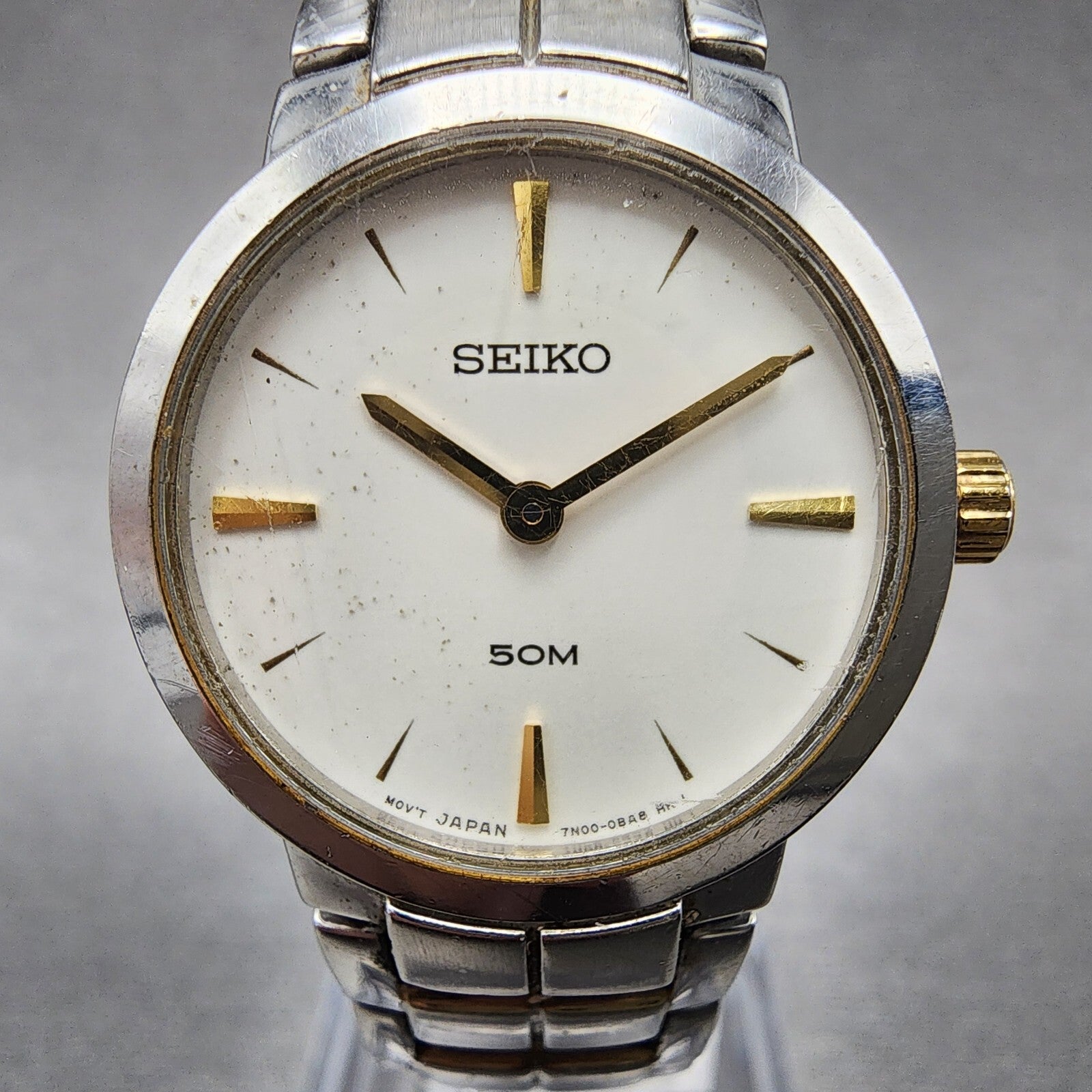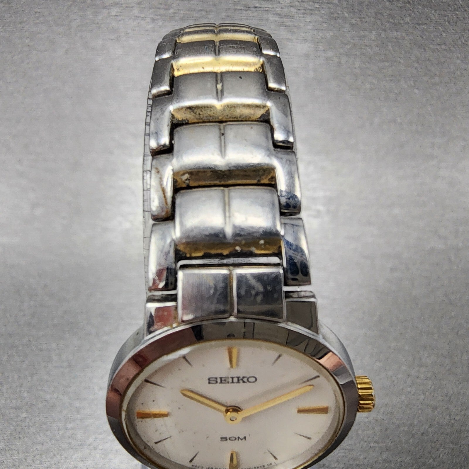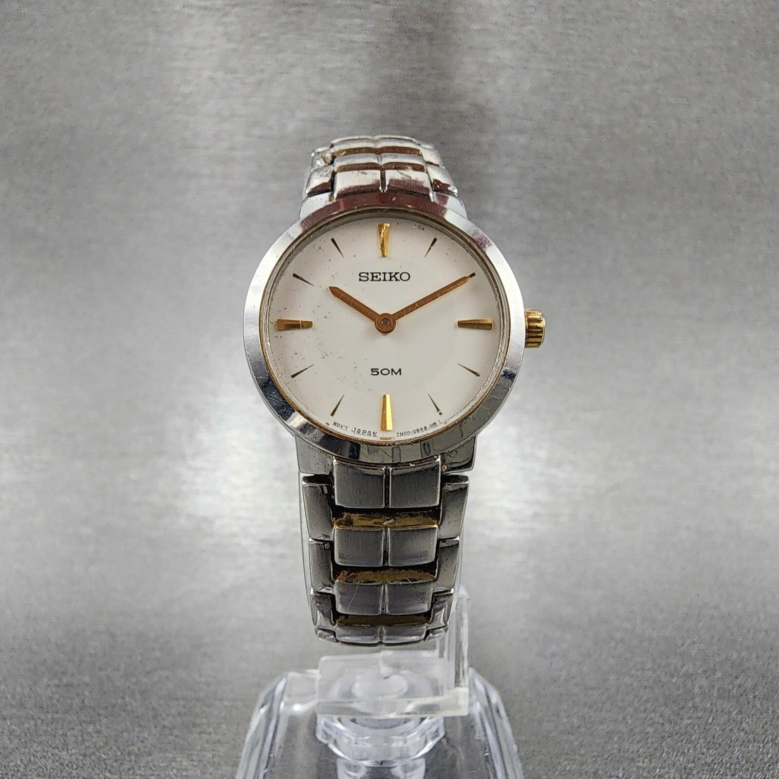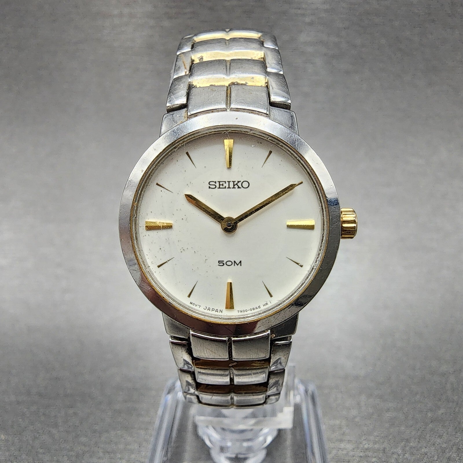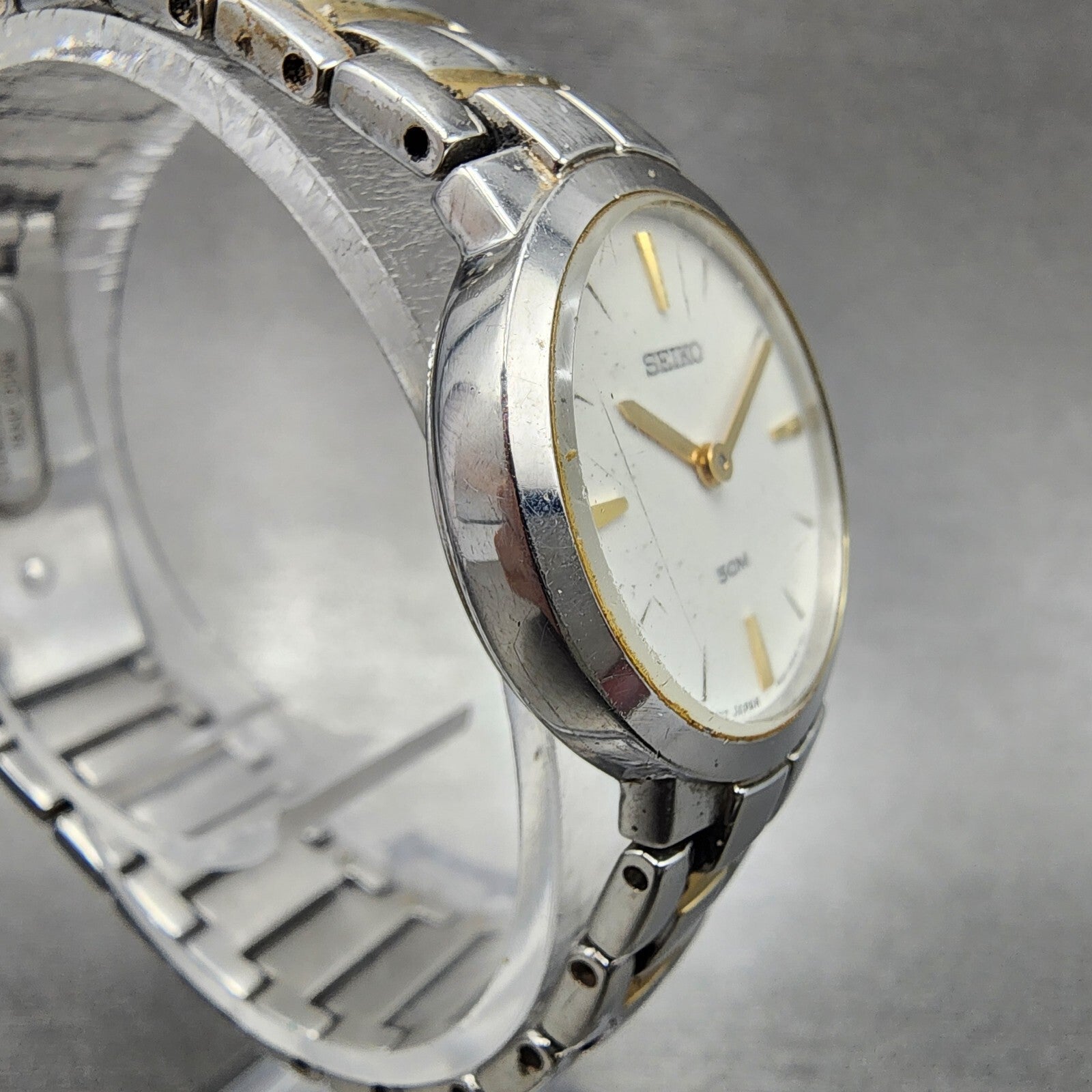 Seiko Watch Women 24mm White Dial Two Tone Round 7N00-0AR0 New Battery