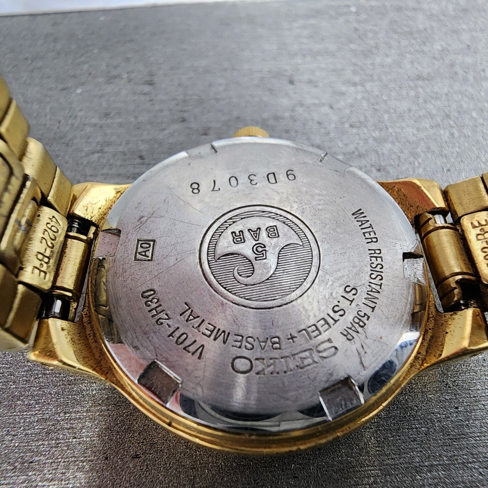 Seiko Watch Women 25mm Cream Dial Gold Tone Round V701-2H30 New Battery