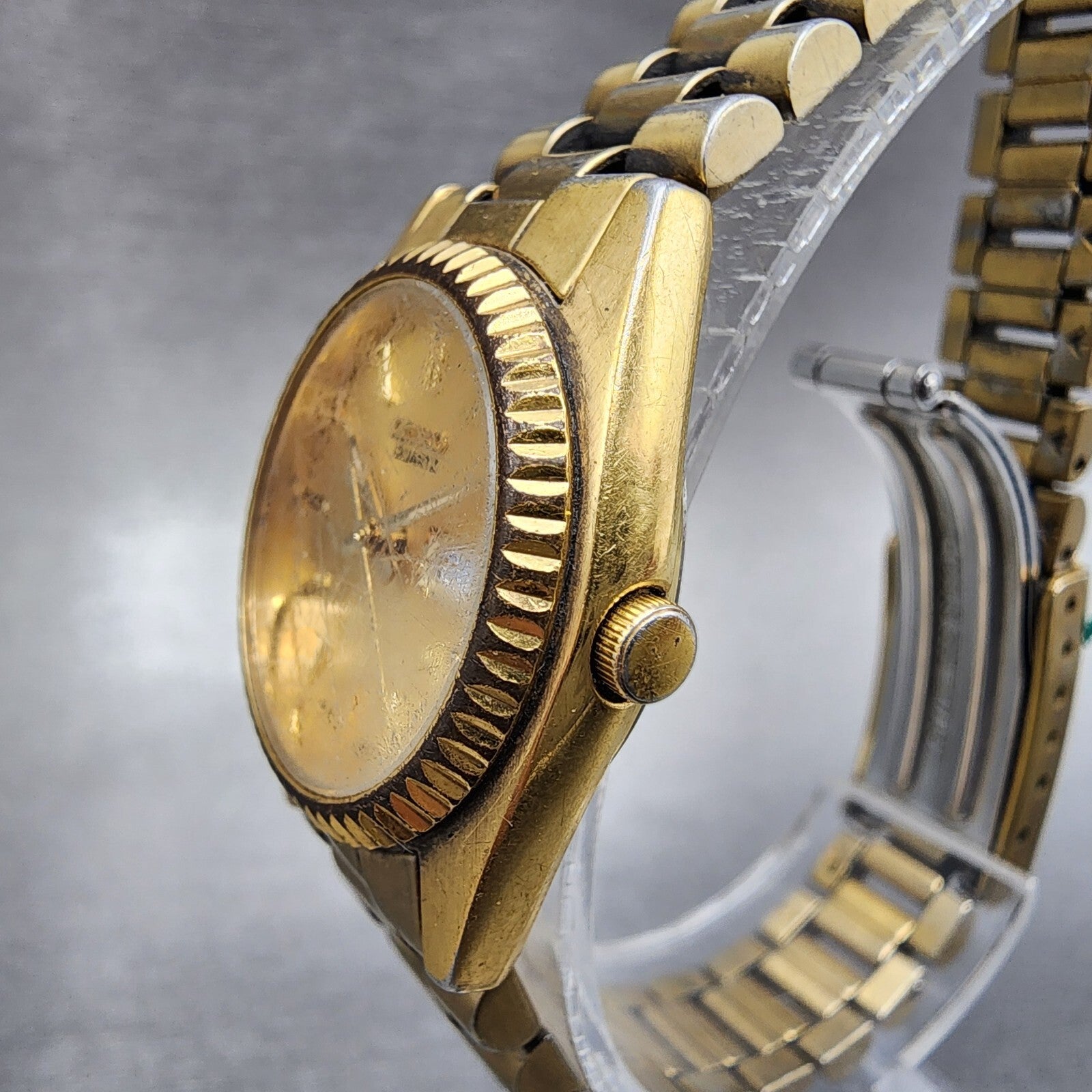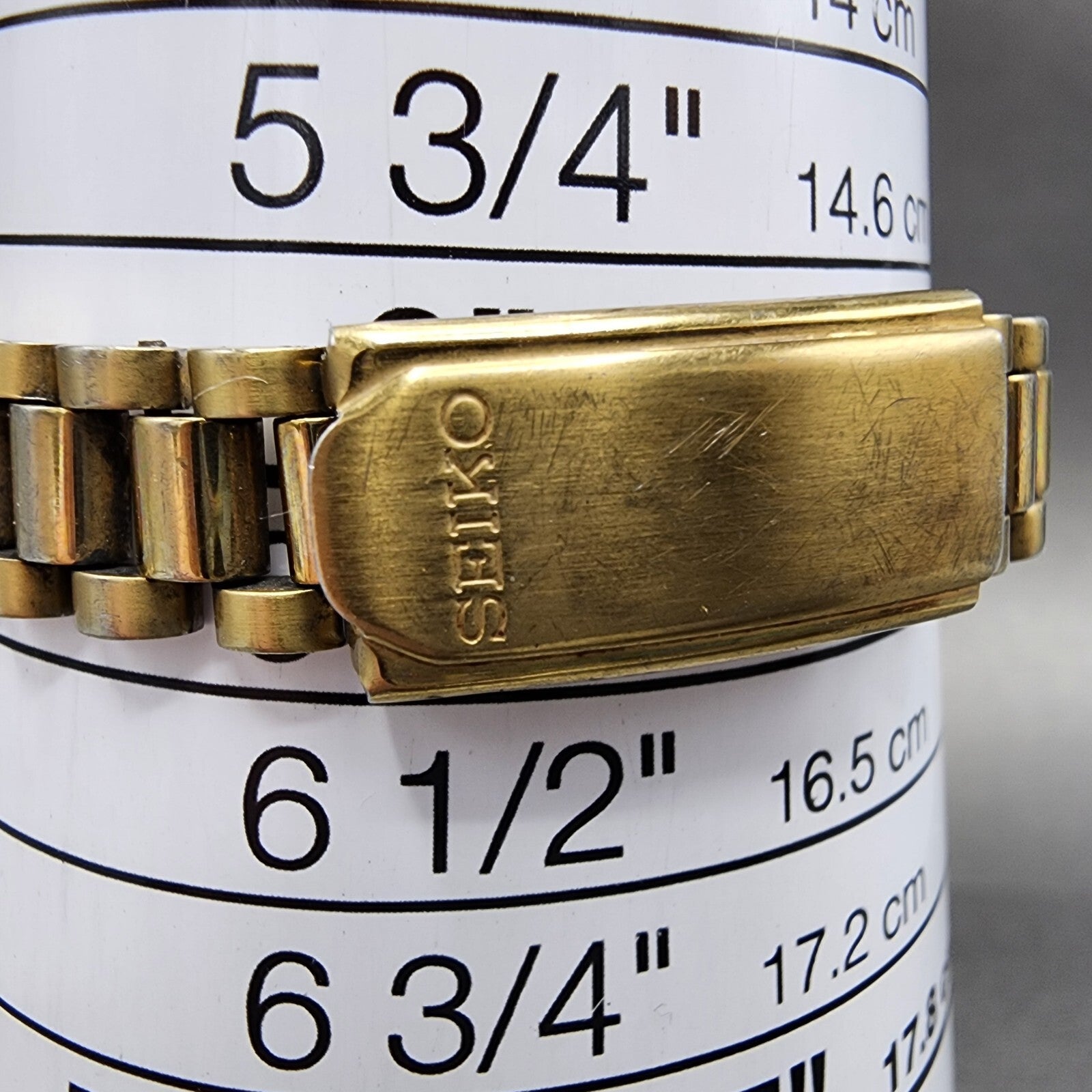 Seiko Watch Women 25mm Gold Dial Gold Tone Daydate Round 7N83-0041 New Battery