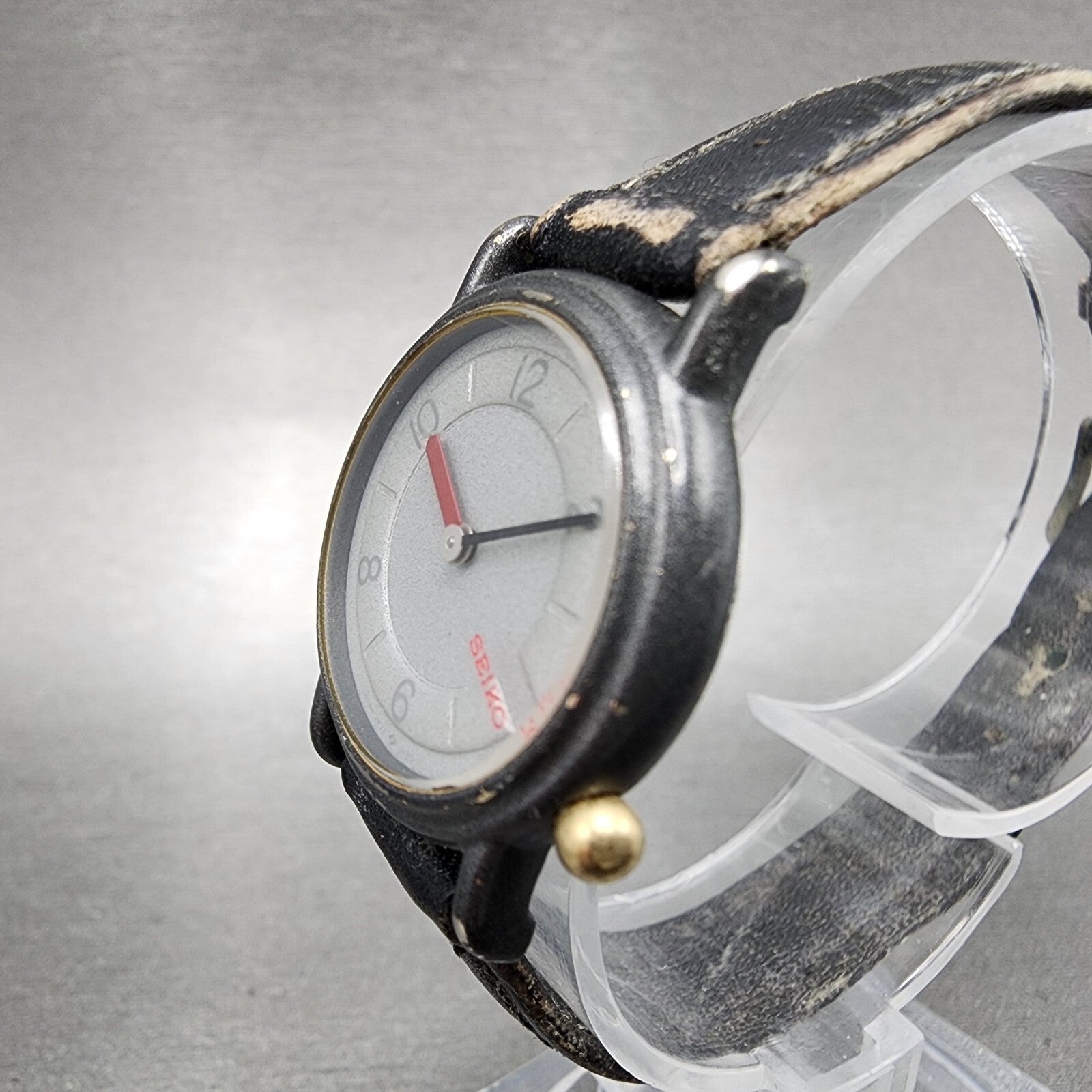 Seiko Watch Women 25mm Gray Dial Black Tone Round 2P20-0B39 New Battery VTG