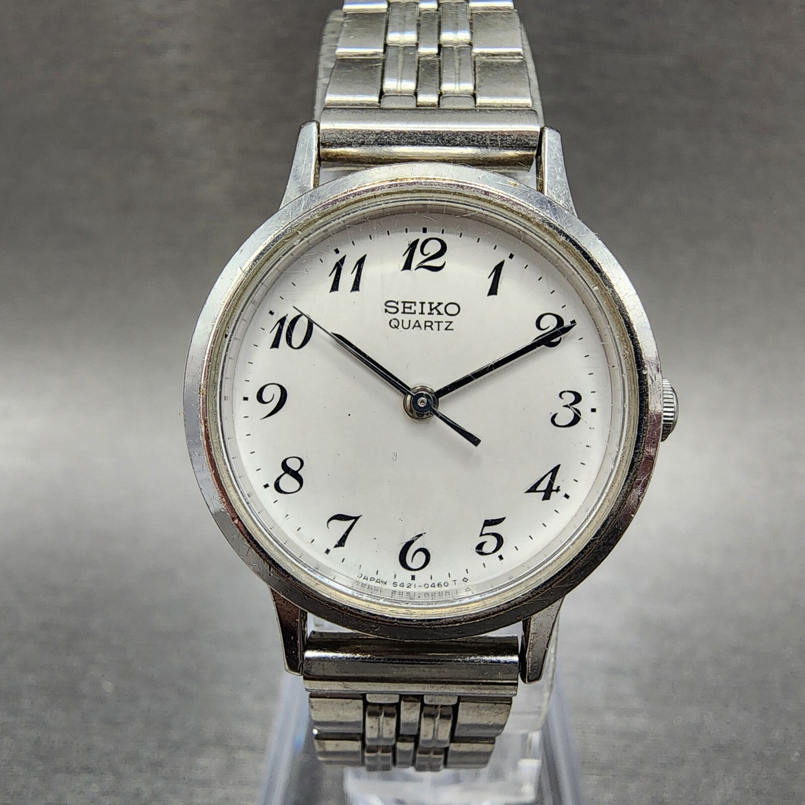 Seiko Watch Women 25mm White Dial Silver Tone Round 5421-0090 New Battery VTG